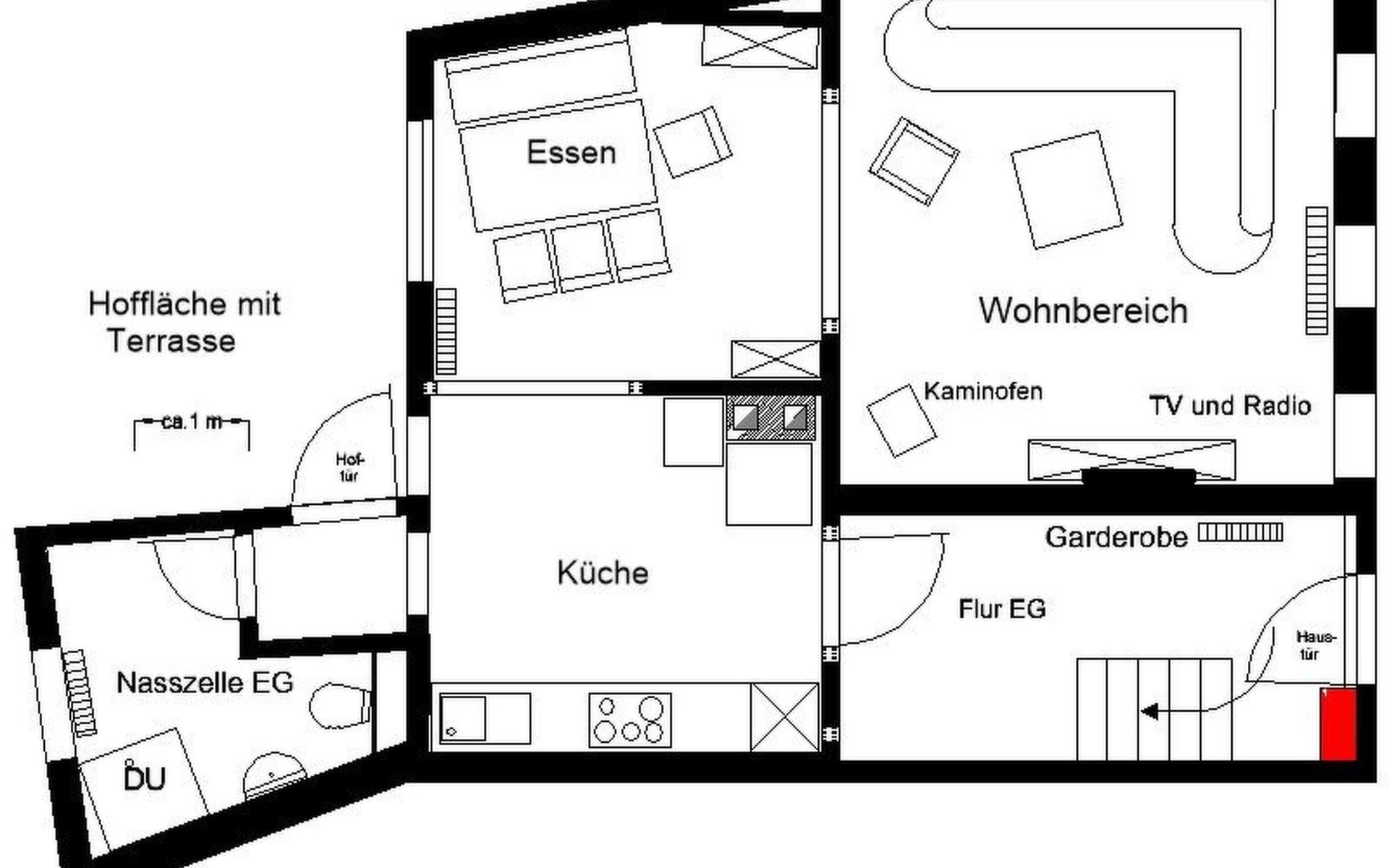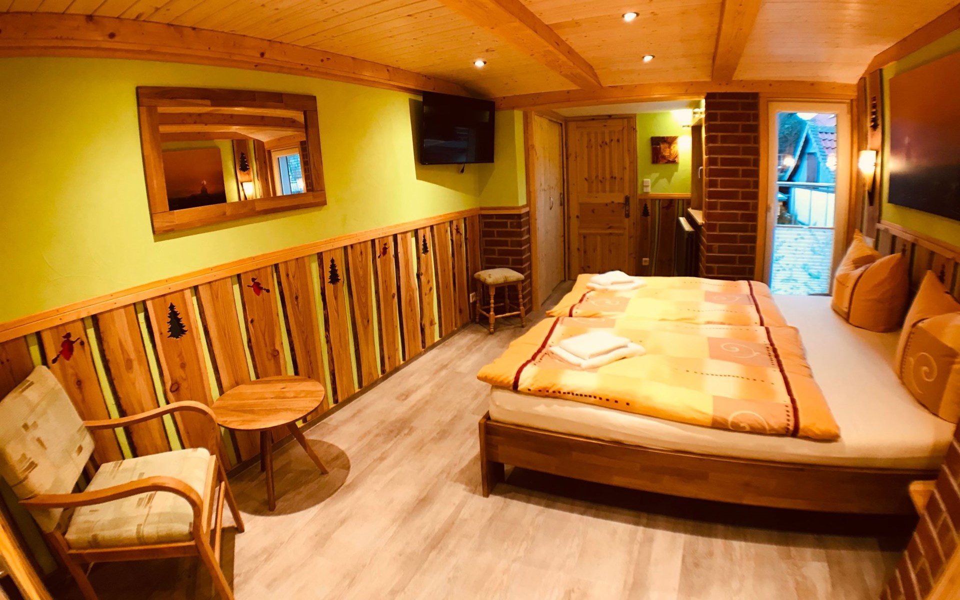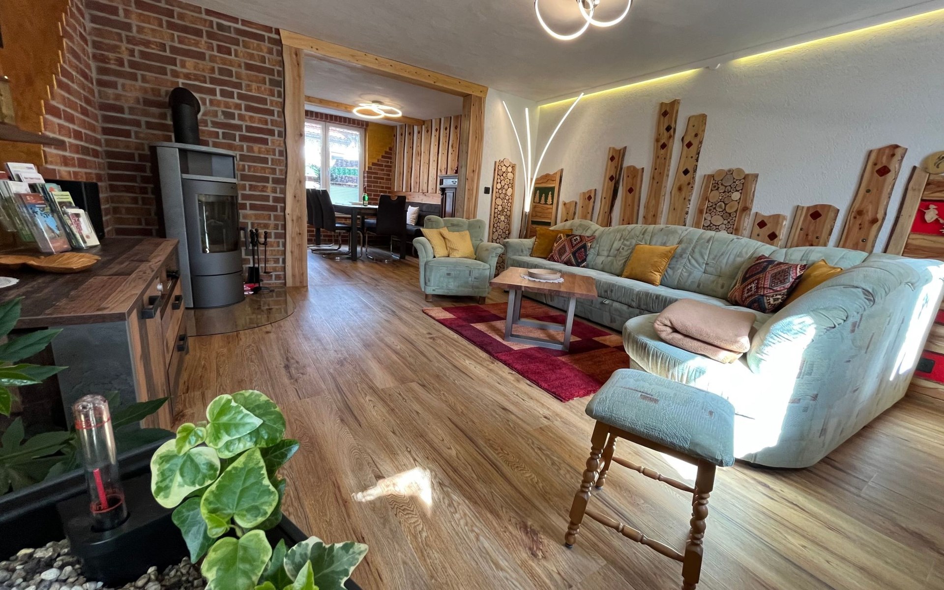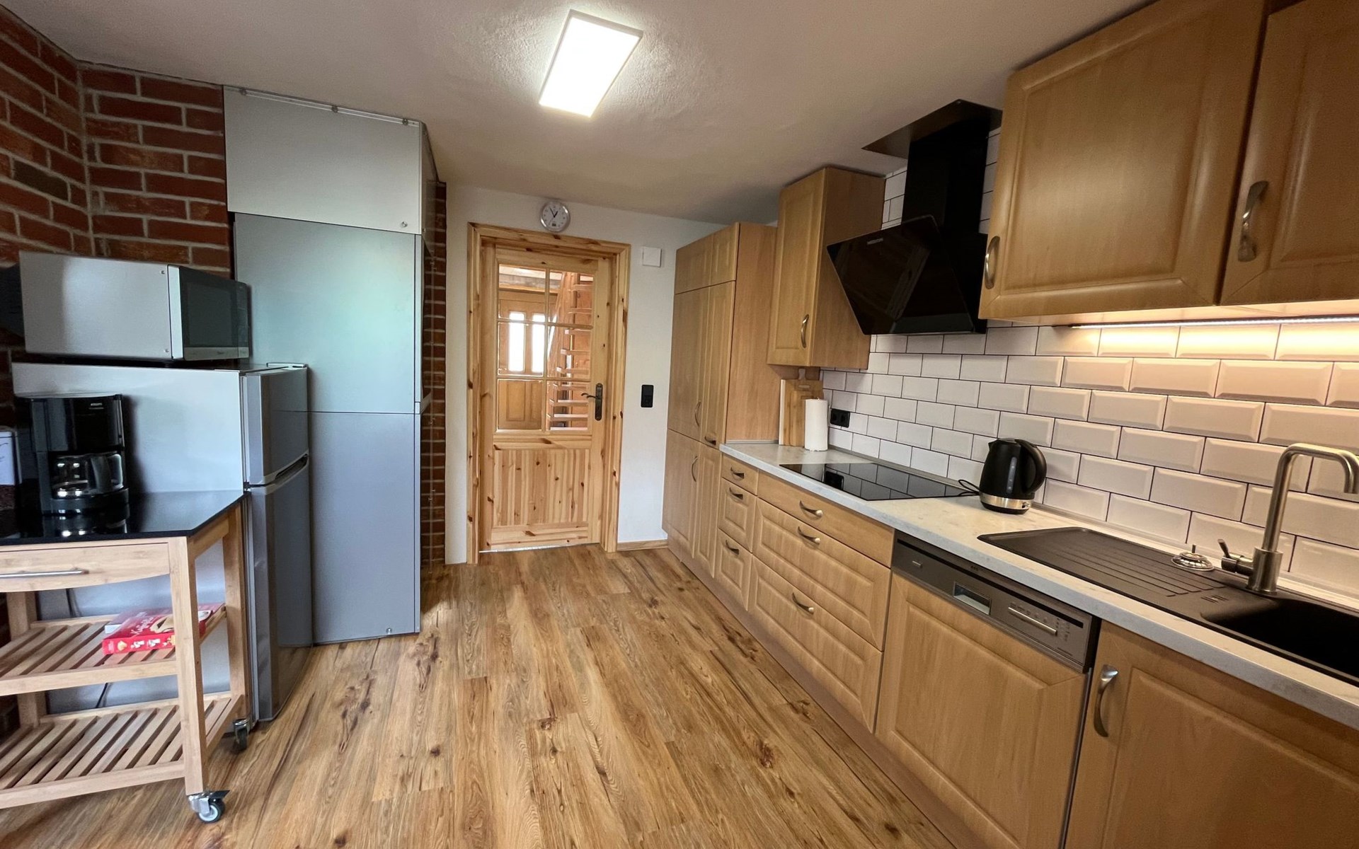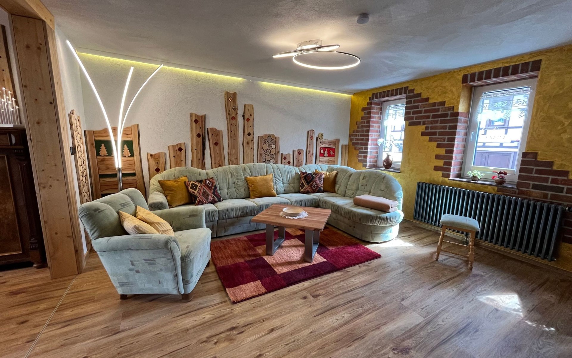The house was extensively, thoroughly and lovingly renovated down to the last detail between 2019 and 2022, equipped with new condensing boiler technology and transformed into a little "holiday home treasure". It is located on the little-used exit road towards Hohegeiß, so it is quiet and yet close to the centre, almost opposite the bakery with its own café, where you can also get fresh bread rolls and cakes on Sundays, and less than a hundred metres from the village centre, where you will find a shopping centre, florist, pizzeria (with restaurant and delivery service), bistro, doctor, pharmacy, bank, hairdresser, beauty salon, physiotherapy and a public transport stop. Only a few houses inwards is a restaurant with lunch and dinner menu and within walking distance is the station of the Harz narrow-gauge railway ( HSB ), with which you can travel to the Brocken ( 1142 m above sea level ), to Wernigerode and Nordhausen.In the house there is only this one holiday flat, so you will not be disturbed by any other guests and can use the house and property for yourself.the holiday flat comprises two floors.on the ground floor there is a living room, dining room, kitchen, shower/WC and hallway.living and dining area are open to the kitchen. The living room facing south or the street is dominated by a cosy sitting area with couch, armchair and small table, the area is completed with satellite TV, radio and playback facilities for CD's and DVD's and a wood-burning stove, which is appreciated by guests in the winter months for cosy evenings. CD's, DVD's, books, board games and information material on the sights of the Harz are a welcome change on relaxing evenings, a rainy day or to get you in the mood for the next day of your holiday. A large dining table with comfortable chairs and a dining bench for 6 people and a restored vertico are located in the dining room, which is situated between the living room and kitchen. The open-plan kitchen includes a spacious kitchenette with a 4-burner ceramic hob and sink, as well as a fridge with freezer compartments, a microwave with baking function, dishwasher, coffee machine, toaster and kettle. Of course, you will also find plenty of crockery, glasses, cutlery, pots and pans, as well as tea towels and additional storage space for your food. 3 bathrooms are also located on this level. This is equipped with a shower, washbasin, toilet and washing machine. Through the hallway you reach the upper floor (1st floor) via an equally new staircase. There are 3 bedrooms here. Since it is a very old house, it was unfortunately not possible to raise all ceilings as part of the renovation, so that the ceiling heights vary between 2.00 m and 2.30 m. One bedroom is located to the south or street side. Another bedroom with double bed (180 x 200) and 2-door wardrobe with built-in wardrobe safe, armchair and small table is located to the north / or courtyard side. In the third bedroom there are two single beds and a small cupboard.on this floor there is another bathroom with shower, toilet and washbasin, so that there are 2 showers and 3 toilets in the whole house.in the corridor there is another chest of drawers for your personal belongings and a small cupboard safe.in all three bedrooms there is satellite TV and WLAN.From the kitchen you can access the outdoor area with a seating area for 6 people and barbecue facilities on a charcoal grill. You can also dry your laundry here if you need to wash it on site.The wood-burning stove in the living room, for which we are happy to provide wood (for a fee), is popular with guests in the cold season. 3 separate bedrooms with high-quality beds, satellite TV and plenty of storage space make the house ideal not only for holidays with the family but also for spending time with friends, parents and grandparents.The small holiday resort of Benneckenstein lies in a very quiet location in the Rappbode valley in the border triangle with Thuringia and Lower Saxony. Due to its central location, almost in the middle of the Harz Mountains, it is ideal for exploring the Harz Mountains to the north, south, east and west, not only by car, but also on foot, by mountain bike or ski, on the hiking trails or cross-country ski runs. Public transport is also a good option, as you can travel to all places in the district free of charge (HATIX) with your spa card. Not forgetting the Harz narrow-gauge railway, which runs through almost the entire Harz Mountains and takes you up to the Brocken (1142 m above sea level), to Wernigerode, Nordhausen and through the Selke valley to Quedlinburg, with many treasures along the way.You will soon realise that one holiday is not enough to get to know all the enchanted half-timbered towns with their special charm, the world below ground in stalactite caves, show mines and mining museums and the Harz Mountains from lofty heights on the treetop path, the climbing parks, from the cable cars and from the suspension bridge at the Rappbode Dam.If you would like to travel back in time, visit the numerous castles and castle ruins, palaces and cathedrals with their world-famous Danube treasures, churches / stave churches, imperial palaces and monasteries. This small selection of possible sights should show you that the Harz Mountains, small on the map, are large and rich in sights worth seeing, in natural beauty and natural wonders, in history and the present.