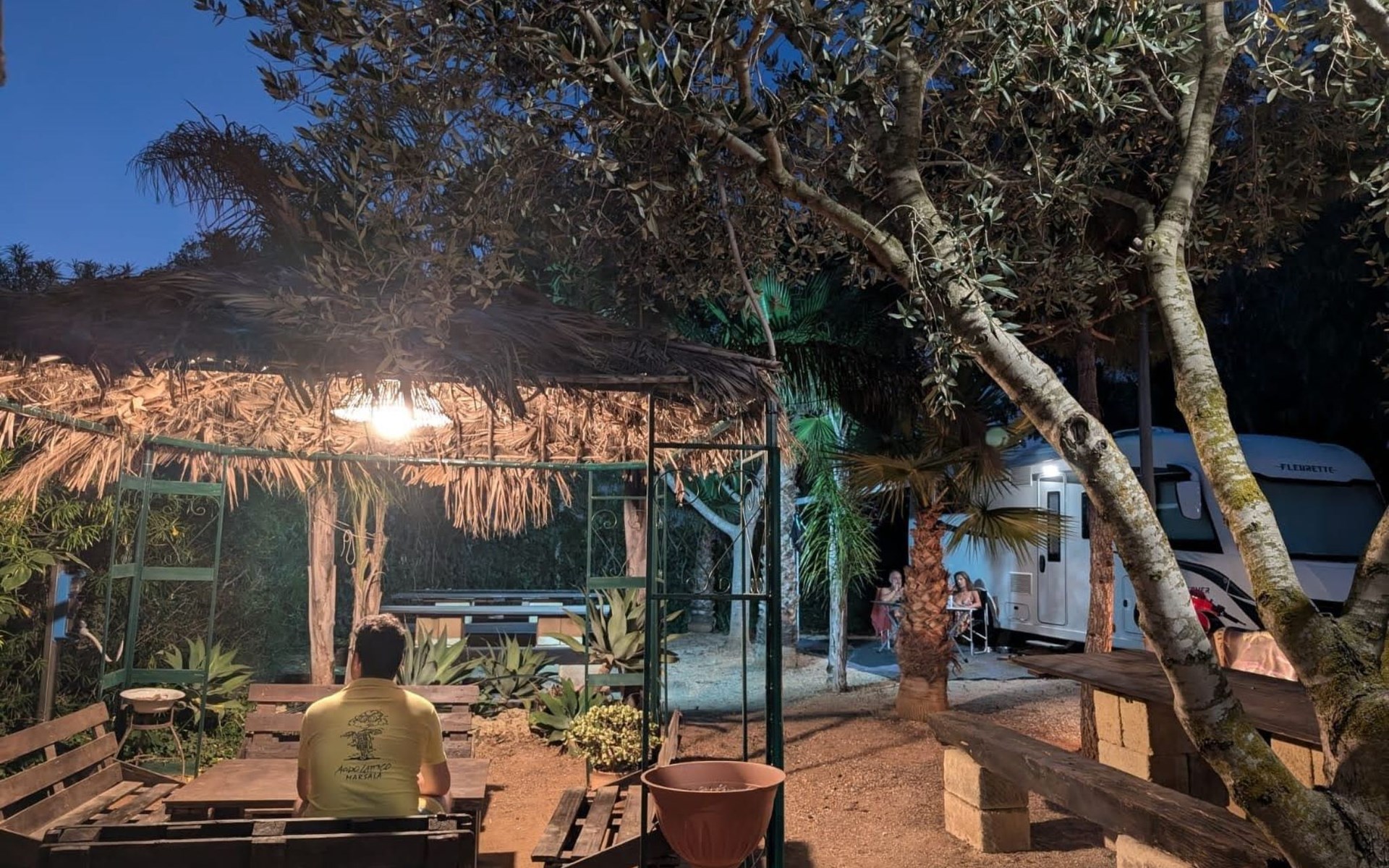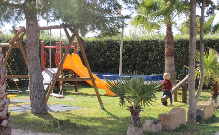 zwembad, solarium, barbecueplaats, ontbijtkiosk, drank- en ijsautomaten, speelruimte voor kinderen en jongeren, woonkamer met bibliotheek.