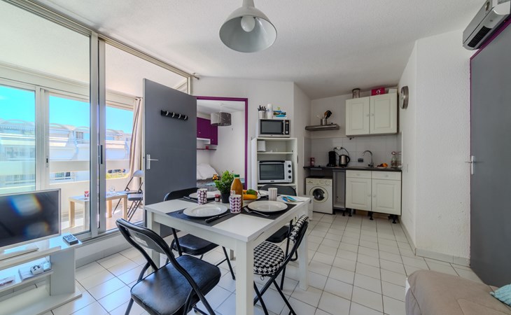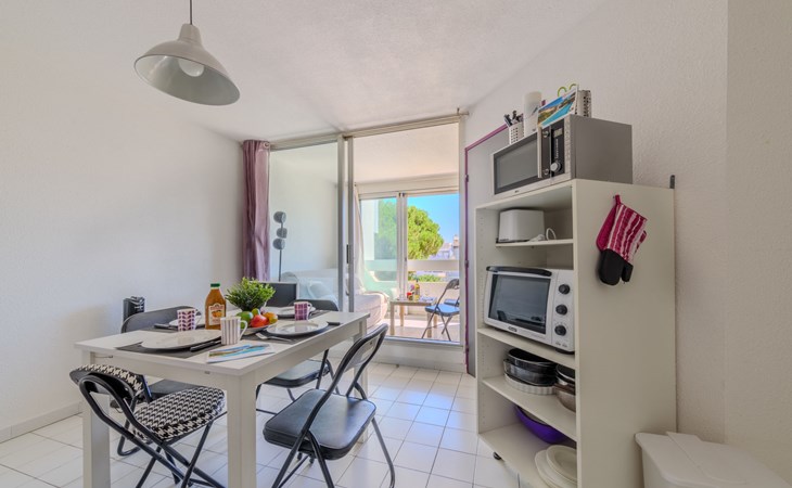 Residentie "Les Floralies II", van 4 verdiepingen. In de wijk le Palais de la Mer, 900 m van zee, 900 m van het strand. Voor medegebruik: openluchtzwembad hoekig omheind (6 x 12 m, seizoensgebonden beschikbaarheid: 01.Jul. - 31.Aug.). Kinderspeelplaats, openbare parkeerplaatsen in de straat. Winkel 100 m, levensmiddelenwinkel, restaurant 100 m, zandstrand "Plage Nord" 900 m, park "Luna-Park" 600 m, thermaalbad "Thalazur Les Bains de Camargue" 4.3 km. Midgetgolf 900 m. Attracties in de buurt: Seaquarium 850 m, Casino Flamingo 1 km, Les Arènes du Grau du Roi 2.2 km, Aigues-Mortes 9 km, La Grande Motte 11 km, Nîmes 55 km. Wandelgebied Réserve Naturelle de Camargue. Auto noodzakelijk. De sleuteloverdracht vindt plaats bij het agentschap Interhome in Port Camargue, 2 km. Vliegveld 23 km van het huis. Vergelijkbare accommodaties kunnen worden geboekt. Attractie-park (01/07-31/08) 600 m. Het zwembad is 1 keer per week gesloten.