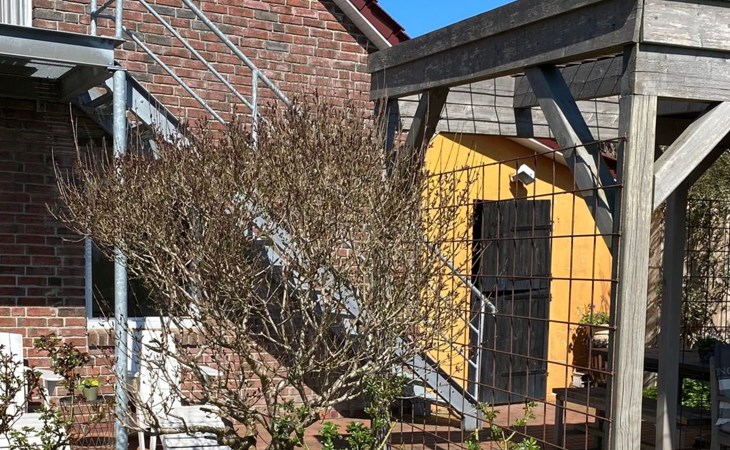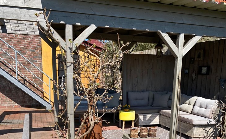 De tuin bij het huis is een lust voor het oog. Op het tuinterras kunt u rustig zitten en genieten van het open uitzicht. U kunt direct bij uw appartement parkeren. Beneden in de tuin bevindt zich een privégedeelte met een eethoek, voorzien van een barbecue en strandstoel, vanwaar u een vrij uitzicht heeft over de weide.