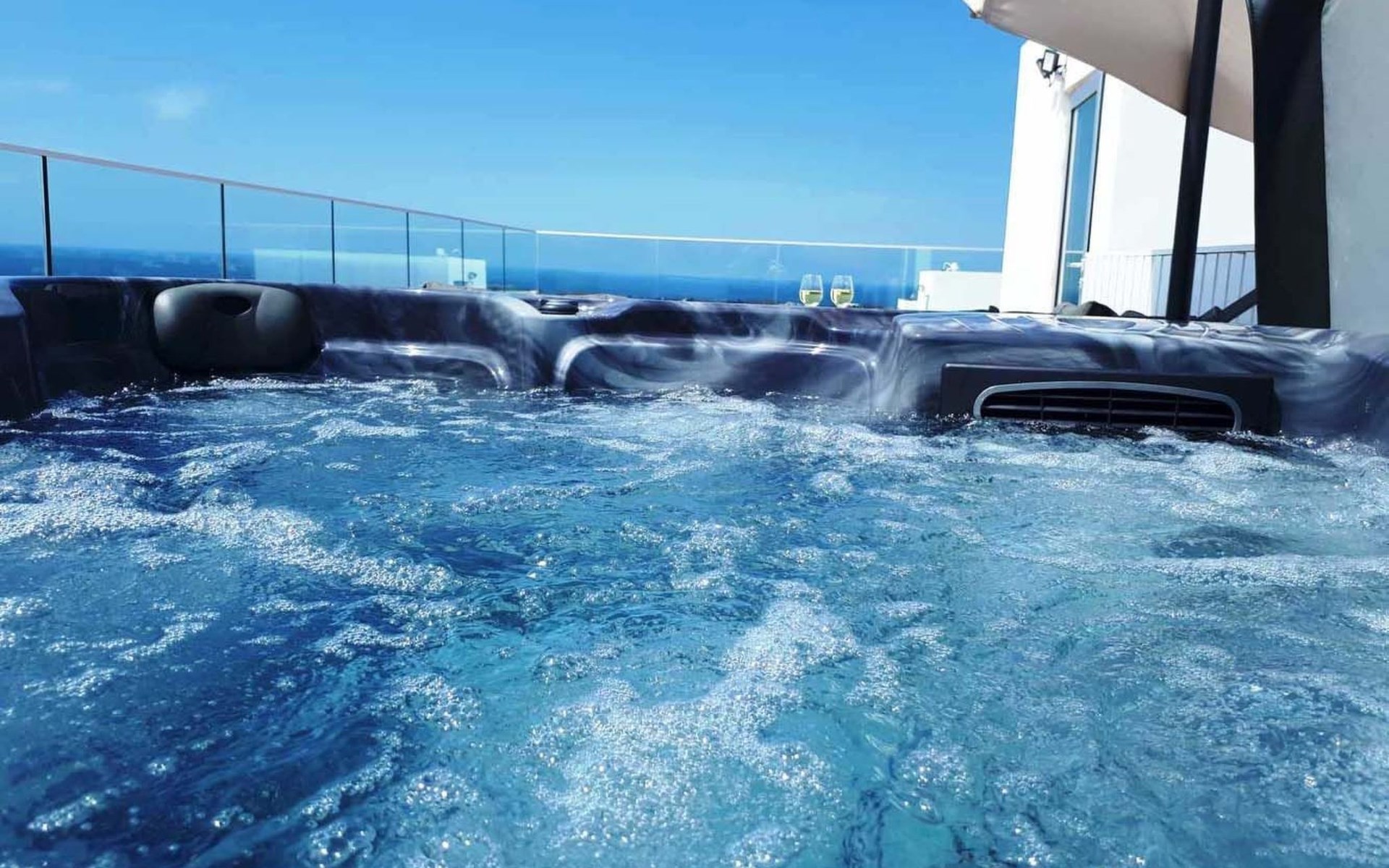 Enjoying the hot tub Jacuzzi with views of the Ocean and relaxing with a glass of wine is a must at Coral Elite Residence.