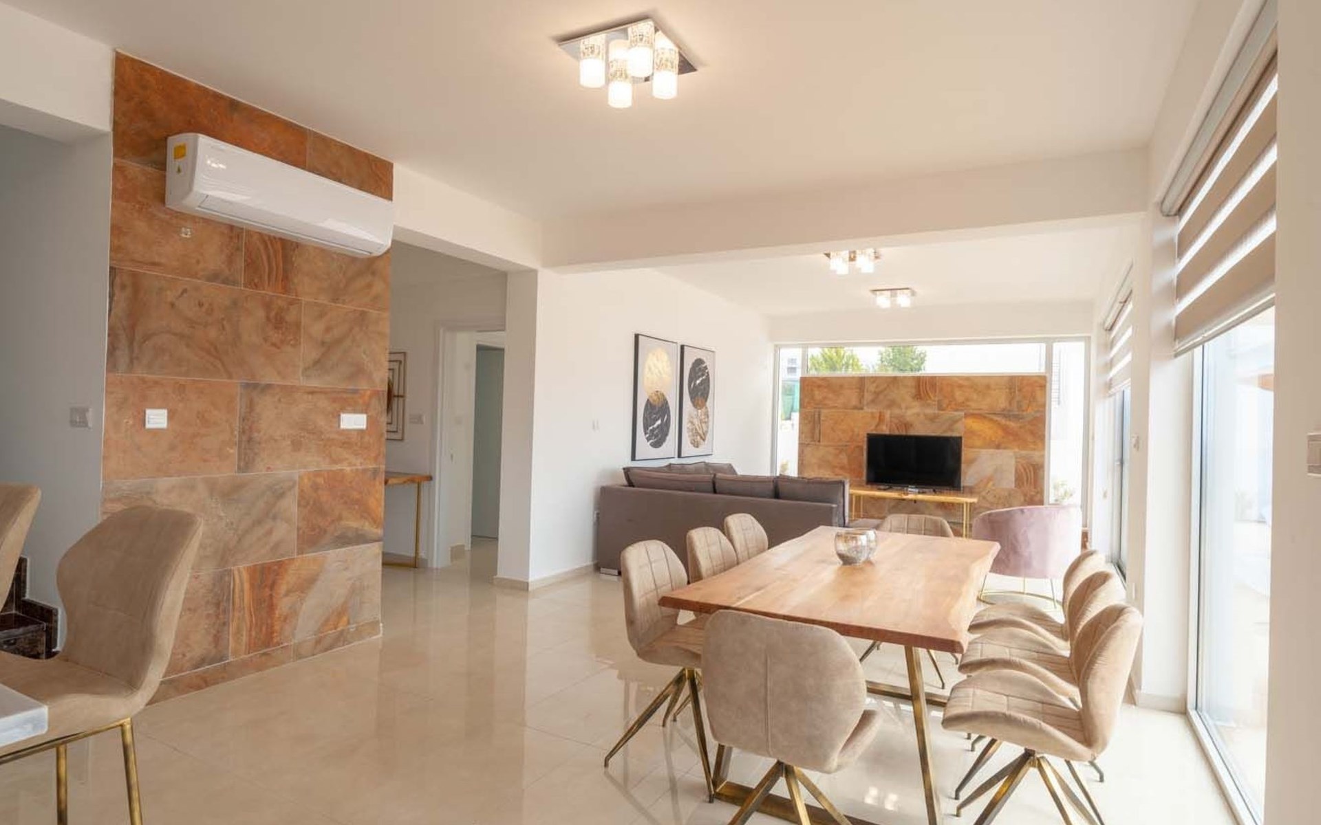 Fully equipped property with high tech features, free wi-fi all around the villa, flat screen TV with android box for all movies and worldwide channels, air-conditioning for hot and cold temperatures and each en-suite bedroom offers space and privacy.