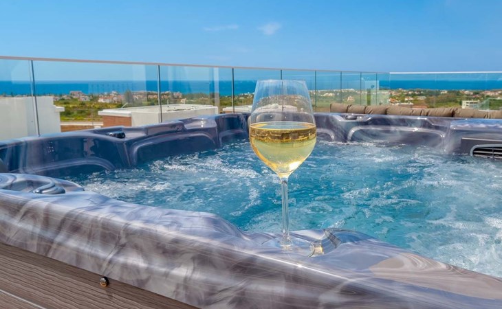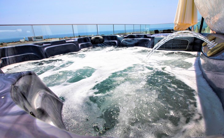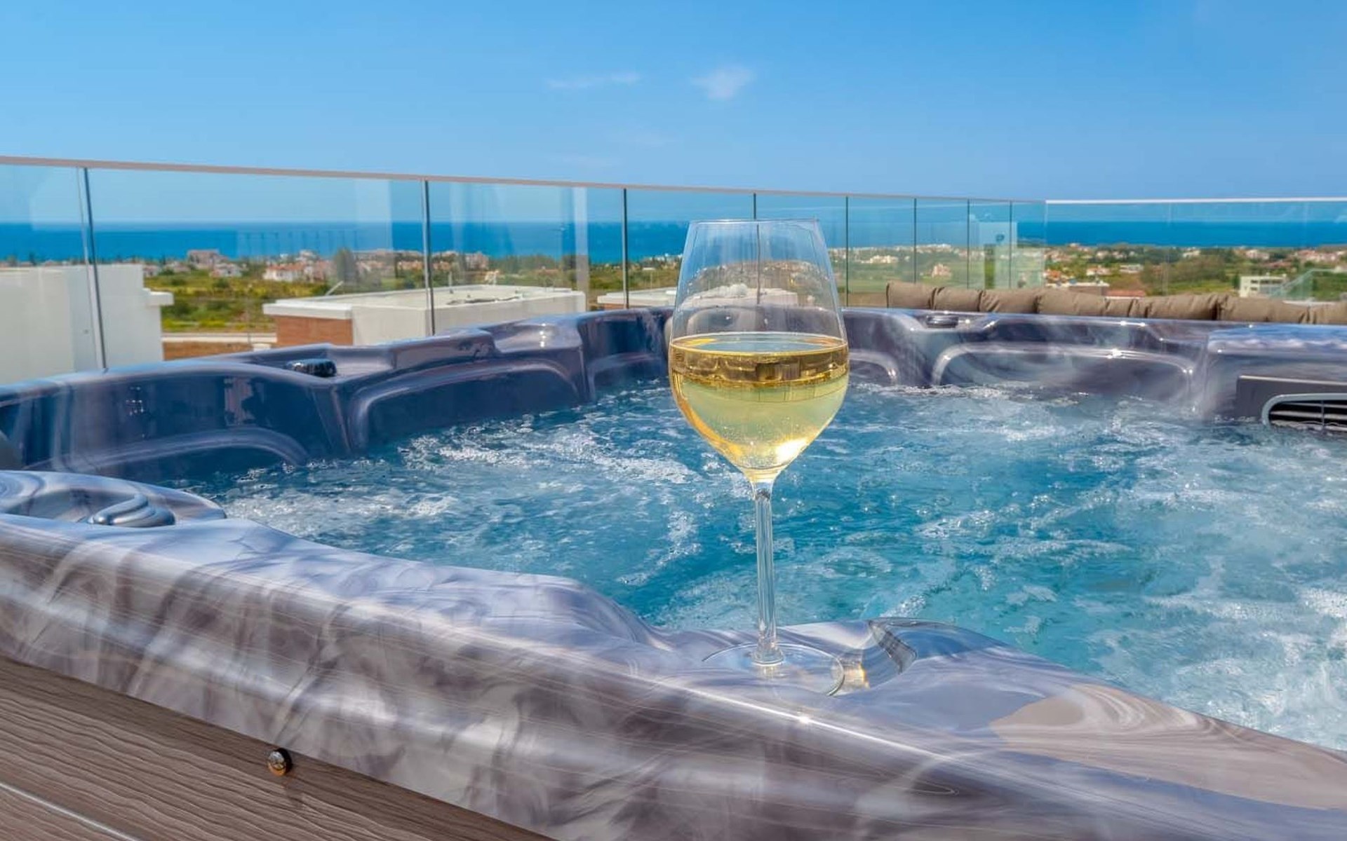 Enjoying the hot tub Jacuzzi with views of the Ocean and relaxing with a glass of wine is a must at Coral Elite Residence.