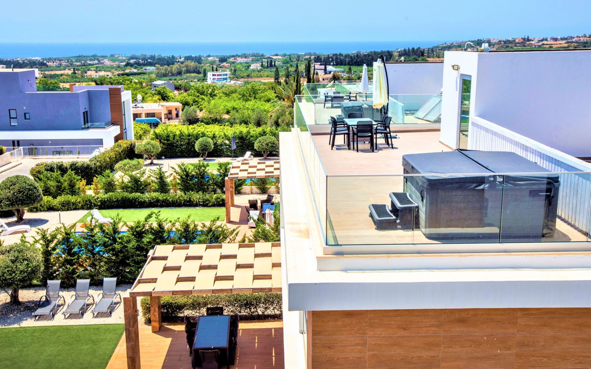 With sweeping views of the Mediterranean, a private overflow pool and a private hot tub Jacuzzi, you’ll instantly fall in love with this modern luxury villa. The Coral elite residence is located in a peaceful location in a private, gated and secure complex in Coral bay offering privacy and still close to the beach and the bustling coral bay with all amenities.