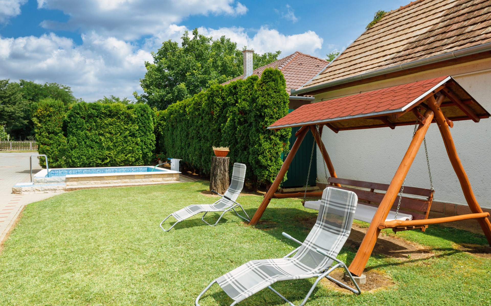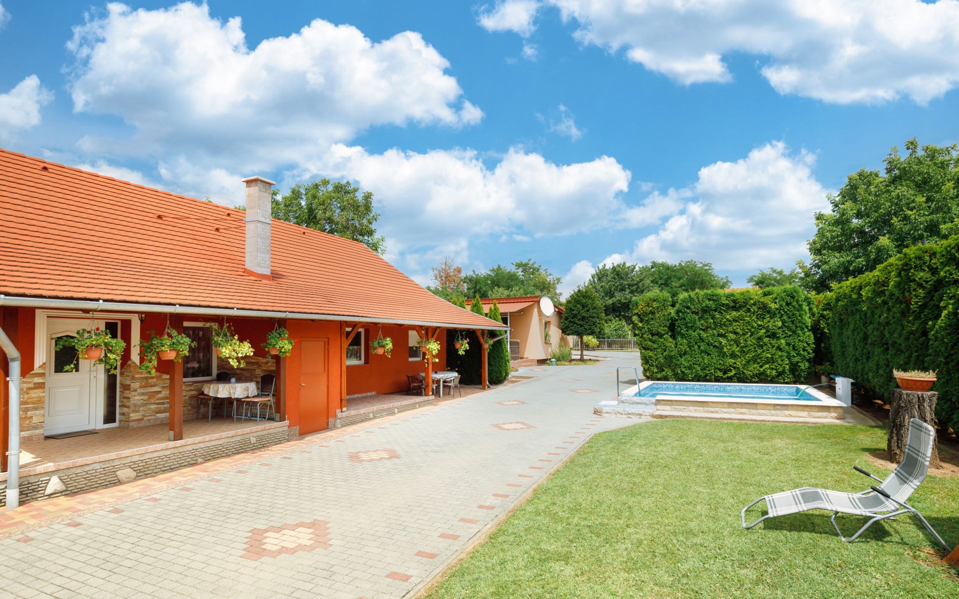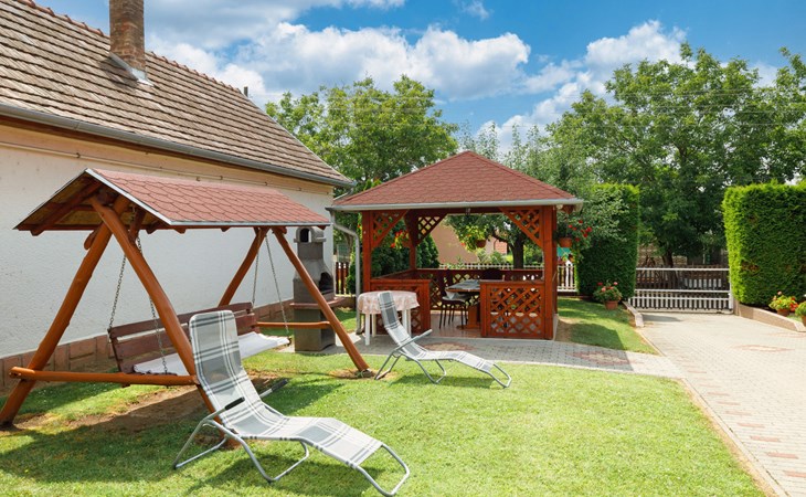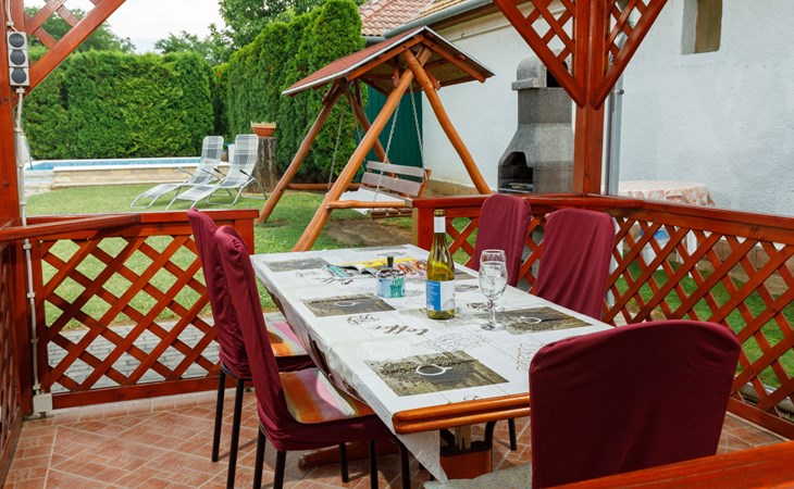Balatonszárszó 12 km van Balatonlelle: Comfortabel Huis met 2 woningen "Brigi". In een woonwijk, 1 km van het meer, 1 km van het strand. Voor medegebruik: terrein 2.000 m2 (omheind) met gazon en bomen. Voor alleengebruik: openluchtzwembad (4 x 4 m, 100 cm diepte, seizoensgebonden beschikbaarheid: 15.Mei. - 30.Sep.). Patio, prieel, overdekte parkeerplaats (voor 2 auto's) op het terrein. Levensmiddelenwinkel 150 m, restaurant 400 m, café 1 km, grasstrand 1 km, thermaalbad "Igal" 44 km. Tennis 1.8 km, fietspad 1 km, kinderspeelplaats 1 km. Attracties in de buurt: Siófok Giant Wheels 27 km, Kereki Dinosaur Park 14 km, Siófok Aquapark 29 km, Bella Zoo Siófok 24 km, Hévíz Thermal Bath 61 km, Ferry Szántód 9 km. Geschikt voor families. De eigenaar woont op hetzelfde terrein.