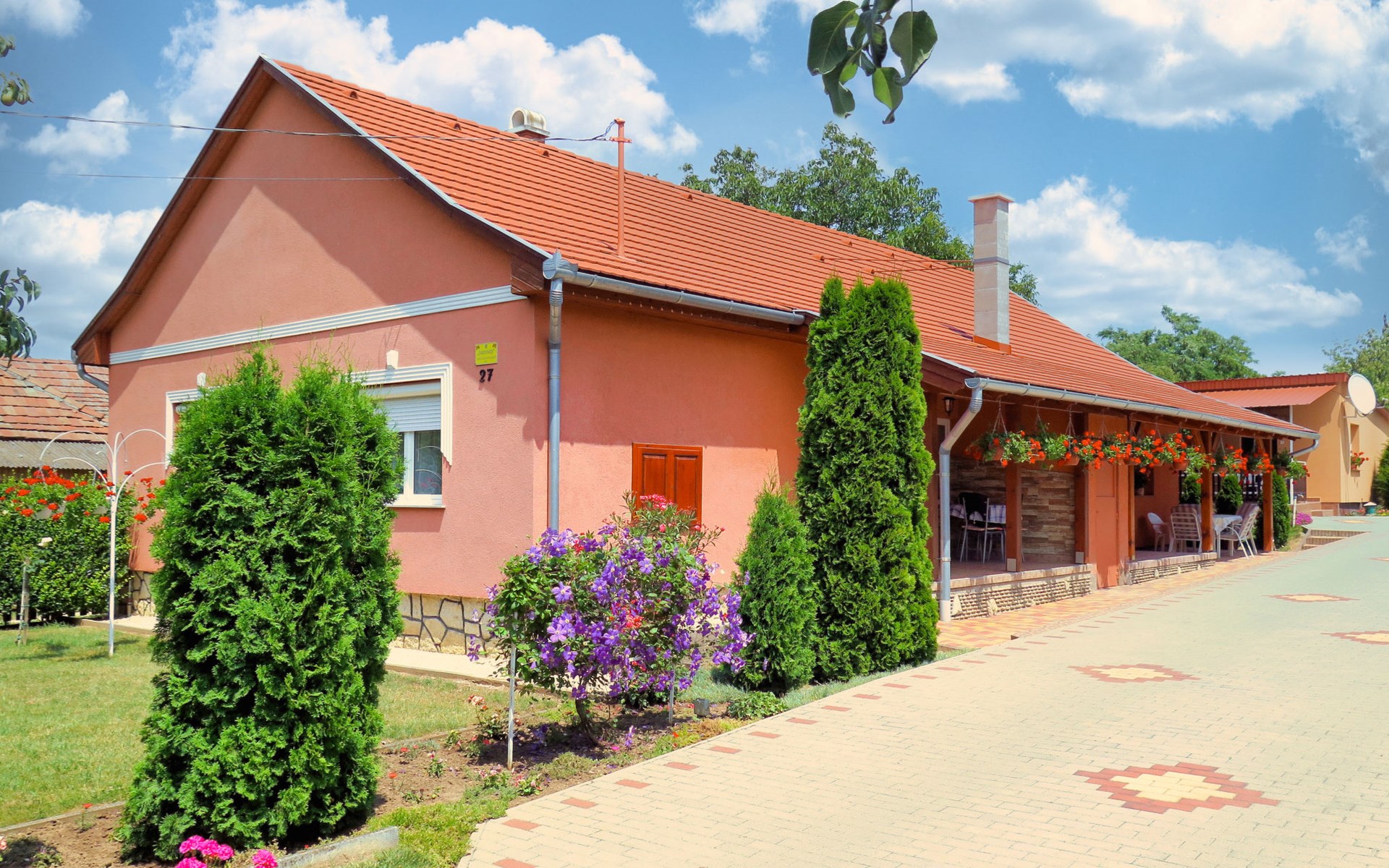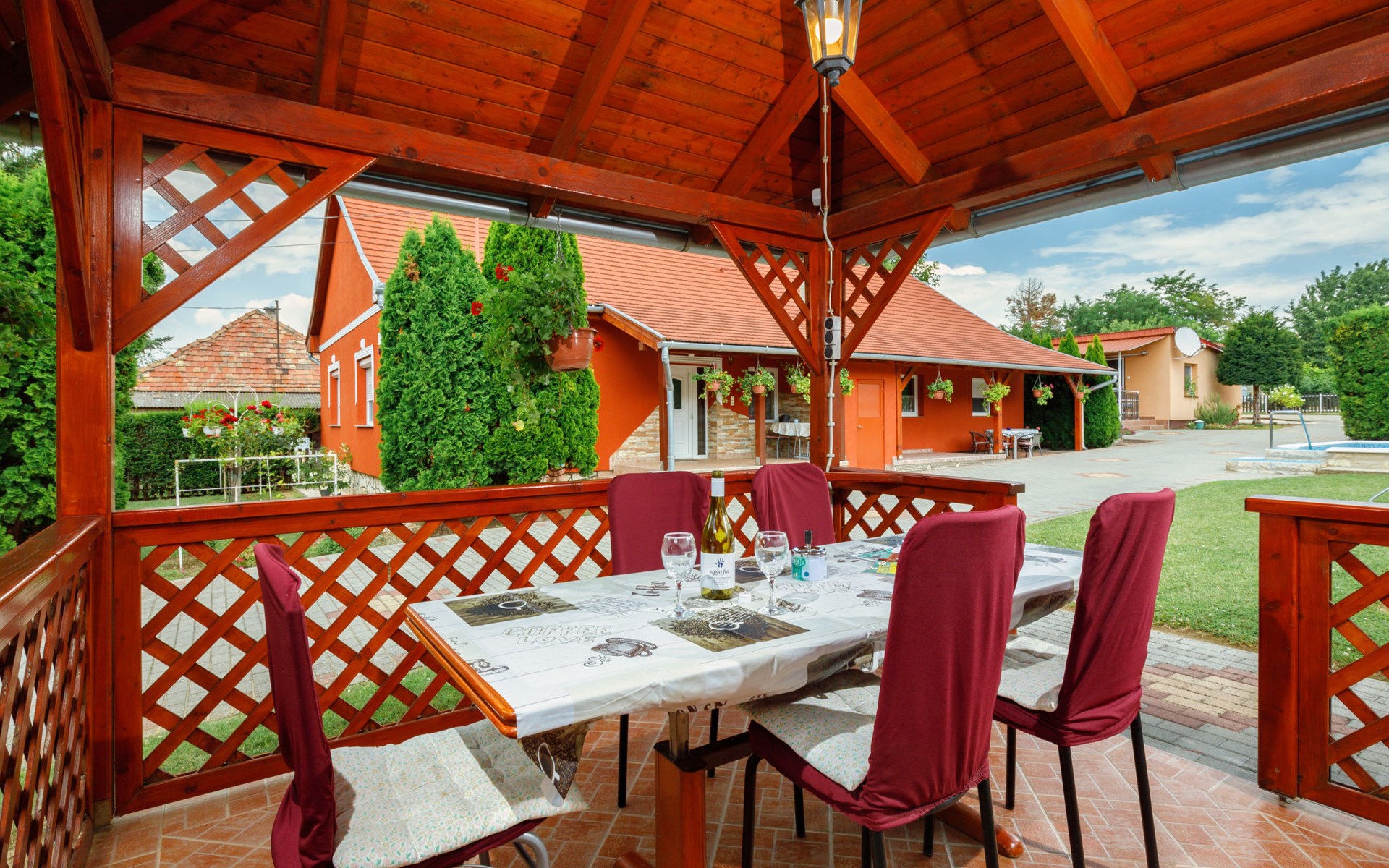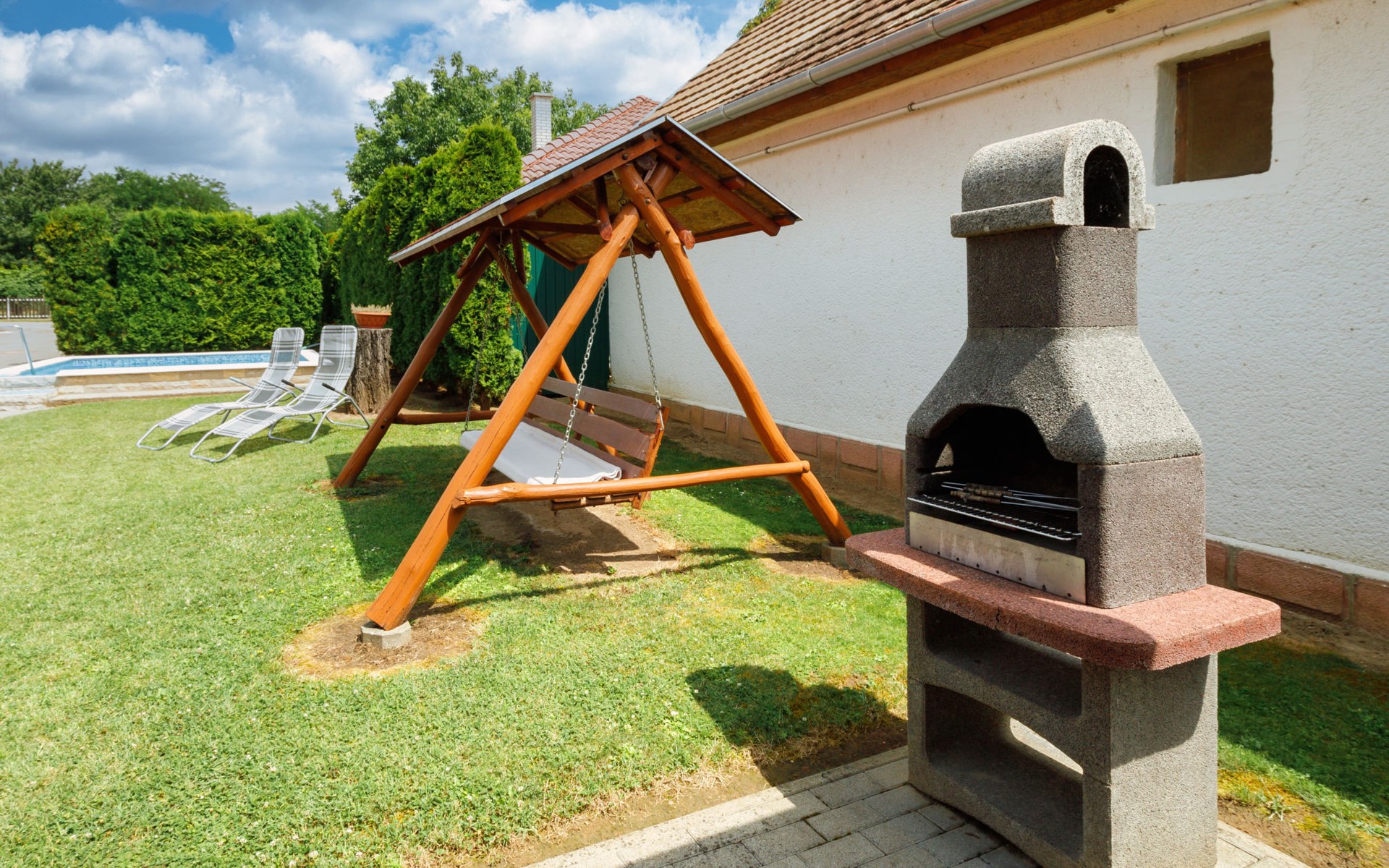 Balatonszárszó 12 km van Balatonlelle: Comfortabel Huis met 2 woningen "Brigi". In een woonwijk, 1 km van het meer, 1 km van het strand. Voor medegebruik: terrein 2.000 m2 (omheind) met gazon en bomen. Voor alleengebruik: openluchtzwembad (4 x 4 m, 100 cm diepte, seizoensgebonden beschikbaarheid: 15.Mei. - 30.Sep.). Patio, prieel, overdekte parkeerplaats (voor 2 auto's) op het terrein. Levensmiddelenwinkel 150 m, restaurant 400 m, café 1 km, grasstrand 1 km, thermaalbad "Igal" 44 km. Tennis 1.8 km, fietspad 1 km, kinderspeelplaats 1 km. Attracties in de buurt: Siófok Giant Wheels 27 km, Kereki Dinosaur Park 14 km, Siófok Aquapark 29 km, Bella Zoo Siófok 24 km, Hévíz Thermal Bath 61 km, Ferry Szántód 9 km. Geschikt voor families. De eigenaar woont op hetzelfde terrein.