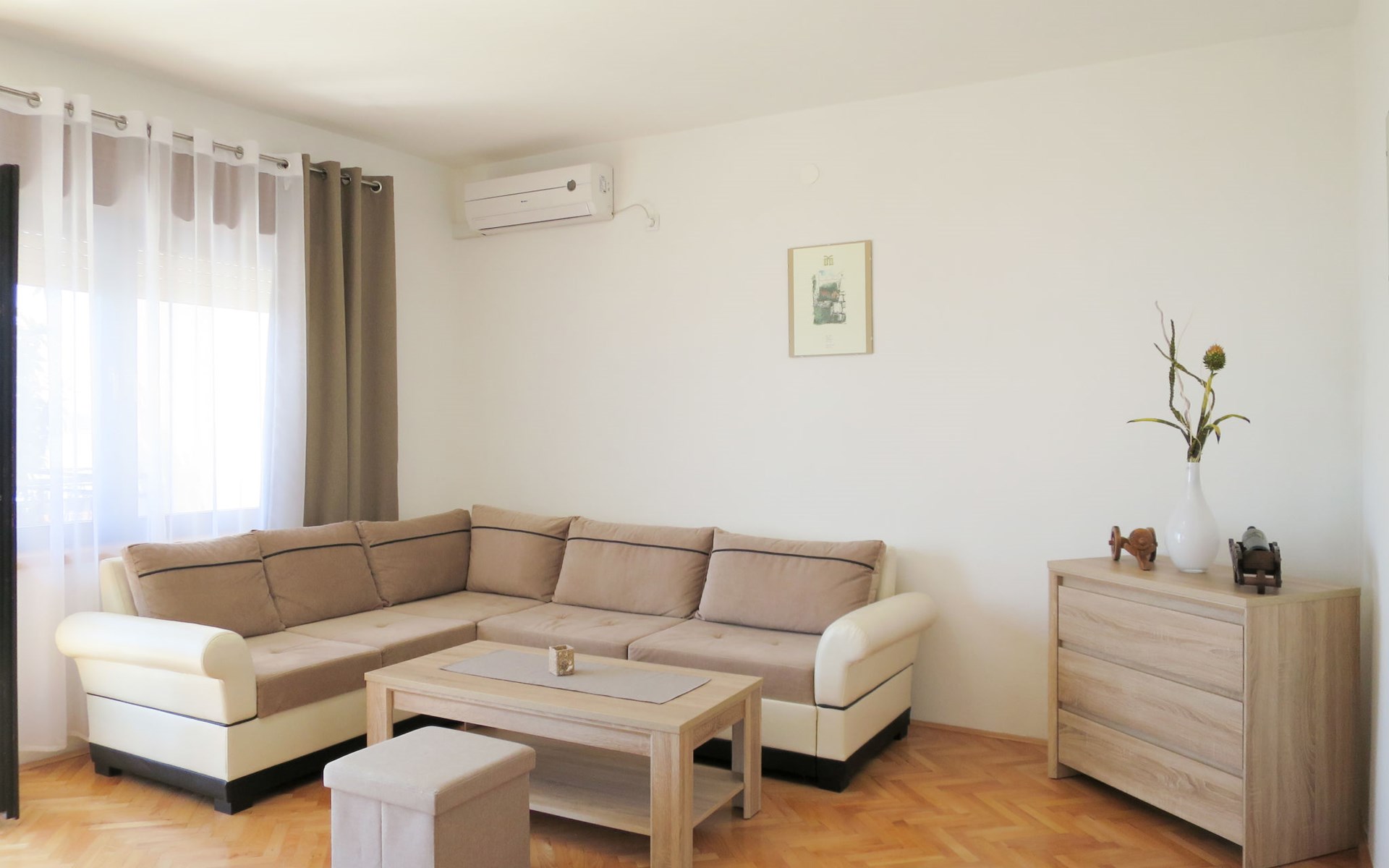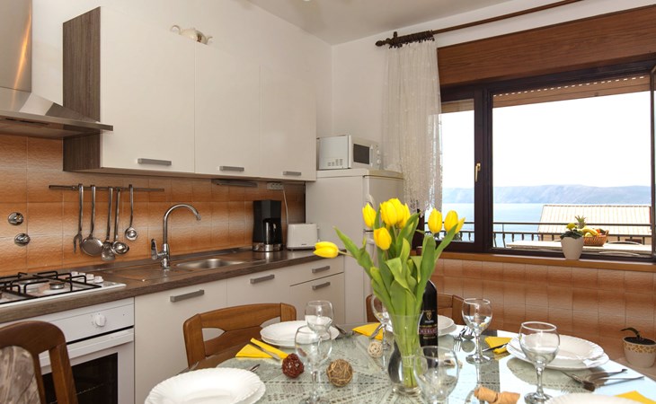 Twee onder één kap woning "Luka". 500 m van het centrum van Novi Vinodolski, 12 km van het centrum van Crikvenica, 350 m van zee, 350 m van het strand. Voor medegebruik: terrein 200 m2 (omheind) met planten. Terras (80 m2), tuinmeubelen, barbecue. In het huis: internetaansluiting, wasmachine (voor medegebruik, extra). Parkeerplaats op het terrein, openbare parkeerplaatsen in de straat. Winkel 200 m, supermarkt 1 km, restaurant 1 km, bushalte 850 m, kiezelstrand 350 m. Vliegveld 29 km van het huis.