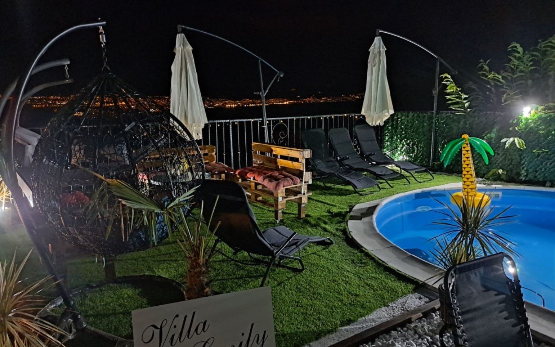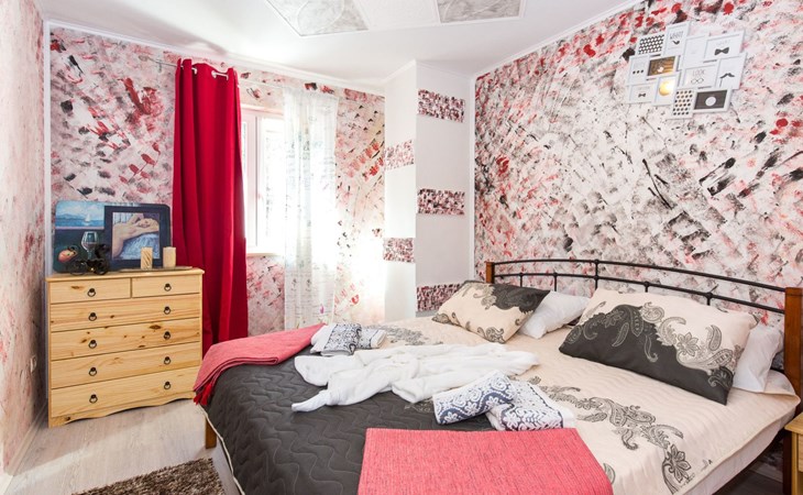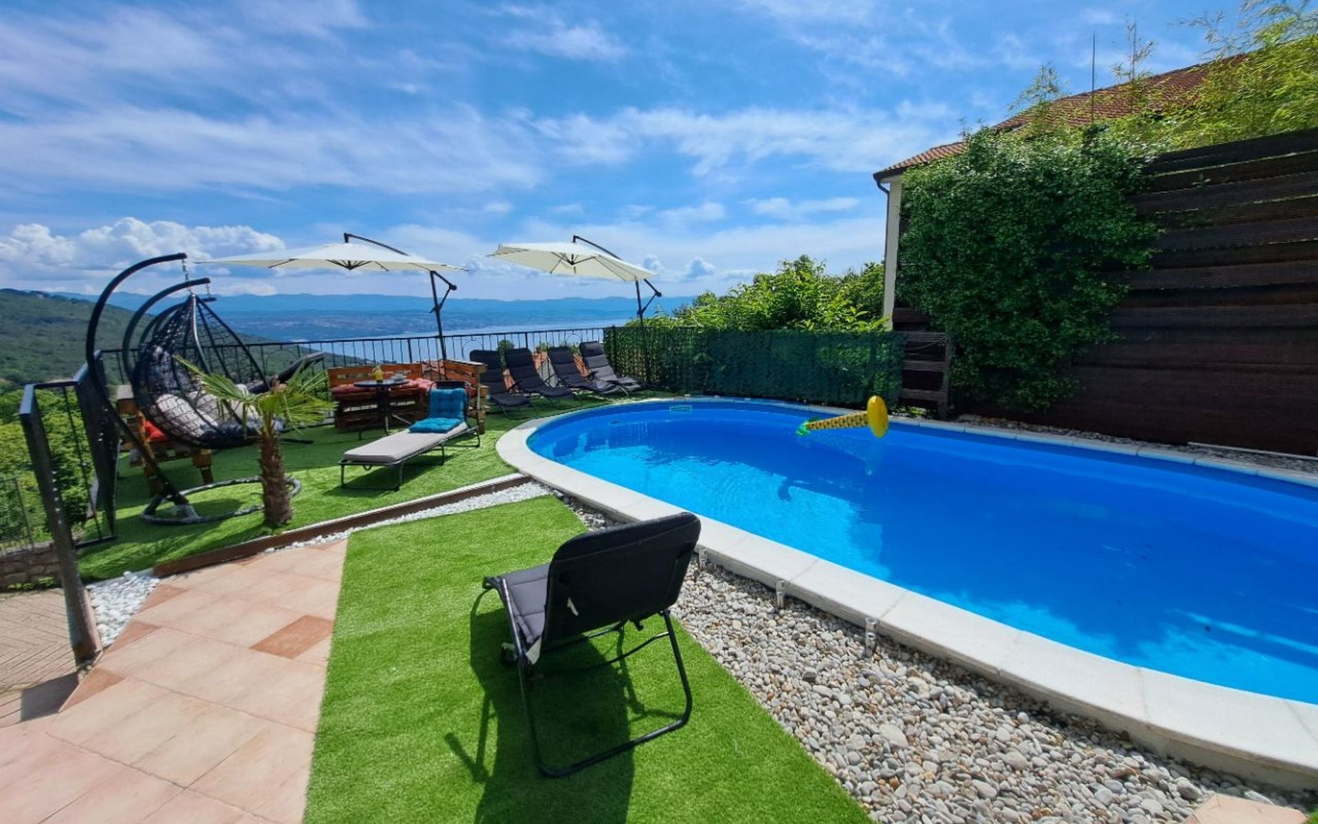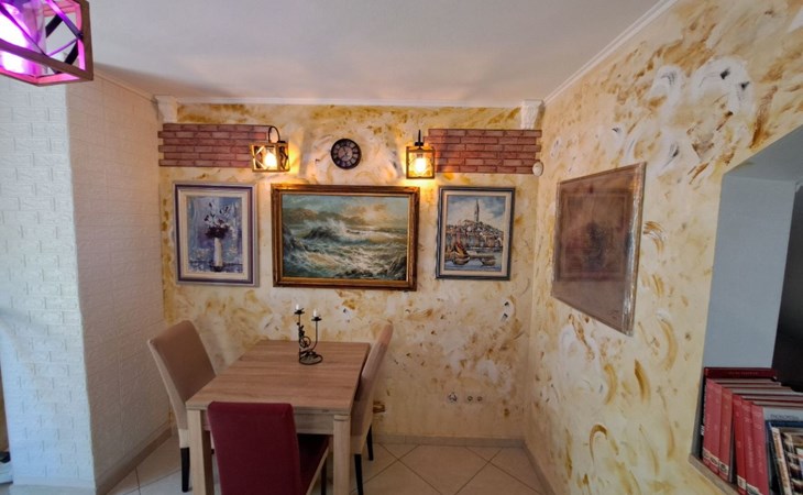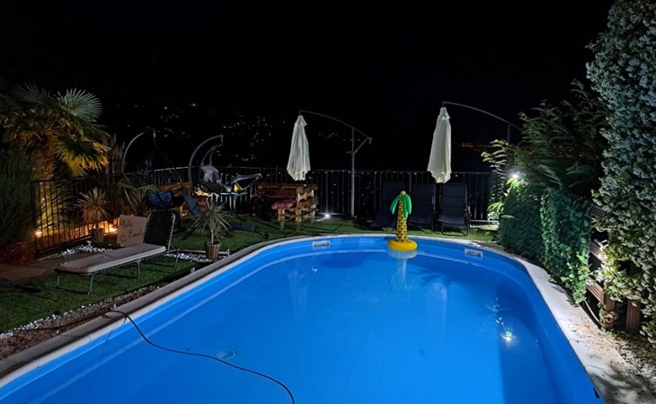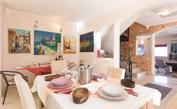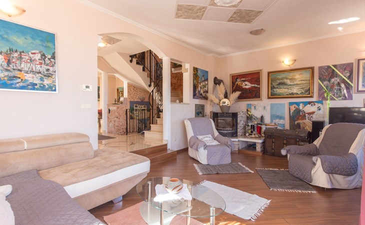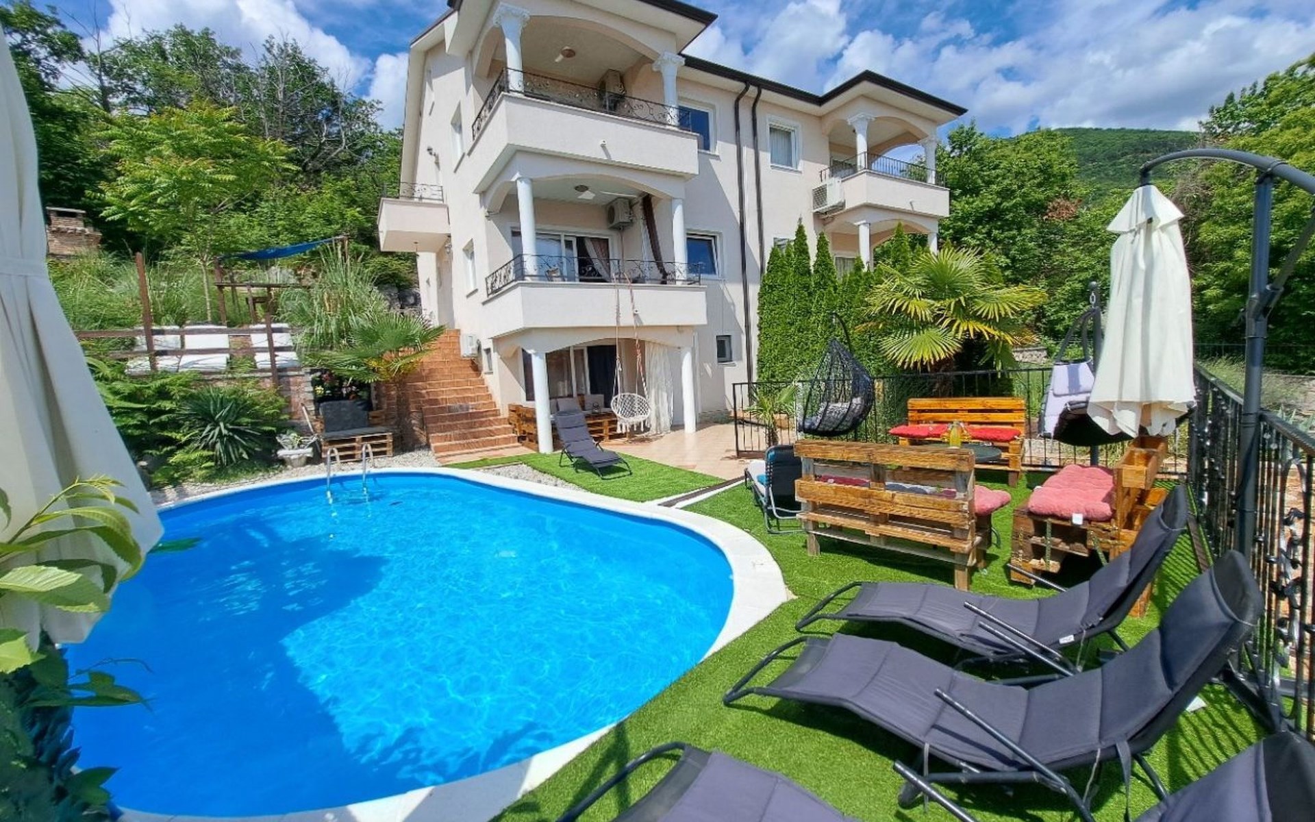 Beautiful Apartment In Unique Villa With Amazing Sea View. If you wan't to have an unforgettable and unique holiday this is a right place for you. This beautiful modern villa is nested on a hill side over a small medieval town of Lovran on the famous Opatija riviera. It boasts wonderful views of the Adriatic from the terraces and very private garden featuring an infinity pool. The location is excellent with all the amenities and the beach in short walking distance. Outside you will find an all fresco dining area, sun loungers and some nice lounge furniture to enjoy the views and the sun. Indoors there is a spacious open living area folded with light and opened to the garden.Villa is a residential facility, built on three floors: ground floor, first floor and attic with a swimming pool and Jacuzzi in the front of the house and an outside kitchen in back of the Villa. The house has, 2 bathrooms, 1 guest toilet, 4 bedrooms, 3 terraces, attic and it is fully air-conditioned. This unique Villa is made in combination of modern living style and vintage style. Apartment in Villa can host up to 8 people and it is perfect for 8 people, like young couples, or one big Family, or even two Families. The Villa has been fully refurnished and decorated in a new fashion cozy design. Each room is different and each room is unique. From master's room which has it's own private bathroom, you can enjoy a beautiful view on the Kvarner Bay and sea with mountains behind while you are laying on your big bad, and in the morning you will see the sun rising while you wake up. Enjoy your morning coffe on your terrace while watching the sea in front of you. On the ground floor or first floor is a beautiful large living room with view on the Kvarner Bay with a fireplace, covered terrace, kitchen and dining room with access to the rear of the house to the terrace. The rear terrace behind the kitchen and dinning room is equipped with a big large table and summer kitchen, so you can sit outside and enjoy your morning breakfast, launch or dinner. On the small hill behind the house is big fireplace where you can prepare your favourite meals outside in the nature, surrounded by beautiful garden with lots of flowers, palms and green wood. From this point you have also a beautiful view on the swimming pool and Kvarner bay and City of Rijeka which shines at nights giving you a wonderful feeling and a great view. This place is a place where you will for sure enjoy your stay in the villa. Imagine yourself staying outside on the fresh air, with a fireplace burning, drinking a glass of homemade vine or a glass of cold beer, overlooking the Kvarner bay and City of Rijeka while the music is playing your favourite song. It is just fantastic and this is something you can just imagine but you can feel it in Villa. Internal stairs lead to the second floor where there are three large bedrooms and a large bathroom. Each room is decorated in a unique cozy style, like Lover's room in violet colour, or Paris room in red and grey, or master room with it's own private bathroom with a terrace and view on the sea. In the attic is a small studio with big double bed, perfect place for kids to play. On each floor there are wonderful large covered balcony overlooking the entire Kvarner bay and Adriatic sea. The house is situated in a peaceful location with beautiful sea views and surrounded by greenery and overlooking Lovran chestnuts. The garden is well tendered with lots of green trees, flowers, palms, and green grass, making your stay more confortable. Interior of the house is completely decorated with beautiful pictures from famous academic painter Claudio Frank. The house has parking space for approximately three vehicles. In front of the house, in the garden there is a big swimming pool with a beautiful view on a sea and City of Rijeka and Kvarner bay, where you can enjoy swimming and relaxing in the pool drinking your favourite cocktail. The area around the pool is equipped with sun loungers and some nice lounge furniture to enjoy the views and the sun. There are also lots of palm trees around the swimming pool making you feel like you are on the beautiful beach. Close to the swimming pool is another terrace with a Jacuzzi and hidromasage where you can enjoy your stay in this massage pool and drink your favorite cocktail. Just to point out what is so special in the Villa: -The house is situated on the hill with a beautiful view on the sea and Kvarner bay -The house is surrounded by the trees so you have a complete privacy at this place -The interior of the house is completely new and the house is equipped with everything you need to make your stay comfortable and unforgettable -The wine cellar with more than 50 different vines that you can taste and drink if you like it -Outside covered kitchen so you can stay outside on the fresh air in the hot summer days and nights -Outside Jacuzzi with a view on the sea -Outside swimming pool with the view on the sea -A butler on your disposal if you need it -If you don’t want to go to the supermarket for a shopping there is a butler at your disposal who will make a shopping for you or any other thing you need -You don’t have a time to make a bed or clean the kitchen or house no problem -There is a cleaning women also at your disposal when ever you need it she will came and do her job. And a thing that you will really like is the next one: -The first day when you arrive I can make a barbecue for all of you so you can eat and drink as much as you want and can. And I’m sure you will love this barbecue because it is made from home made staff, like meat, mushrooms, vegetables, all natural, and homemade vine. And that is just for a single price. - Or I can make also a fish diner for all of you with fresh sea food like fresh fish and other sea specialties and a home made white vine that will taste so good that you will really remember this dinner. And this is also for a single price . -And if you need any 