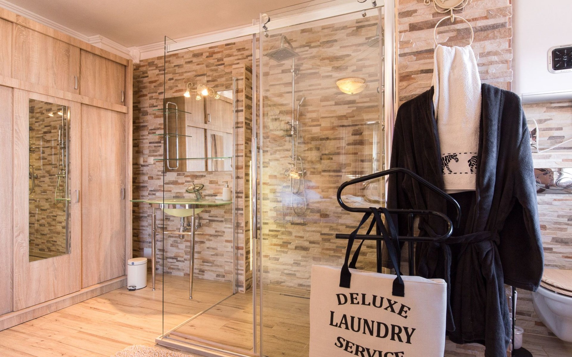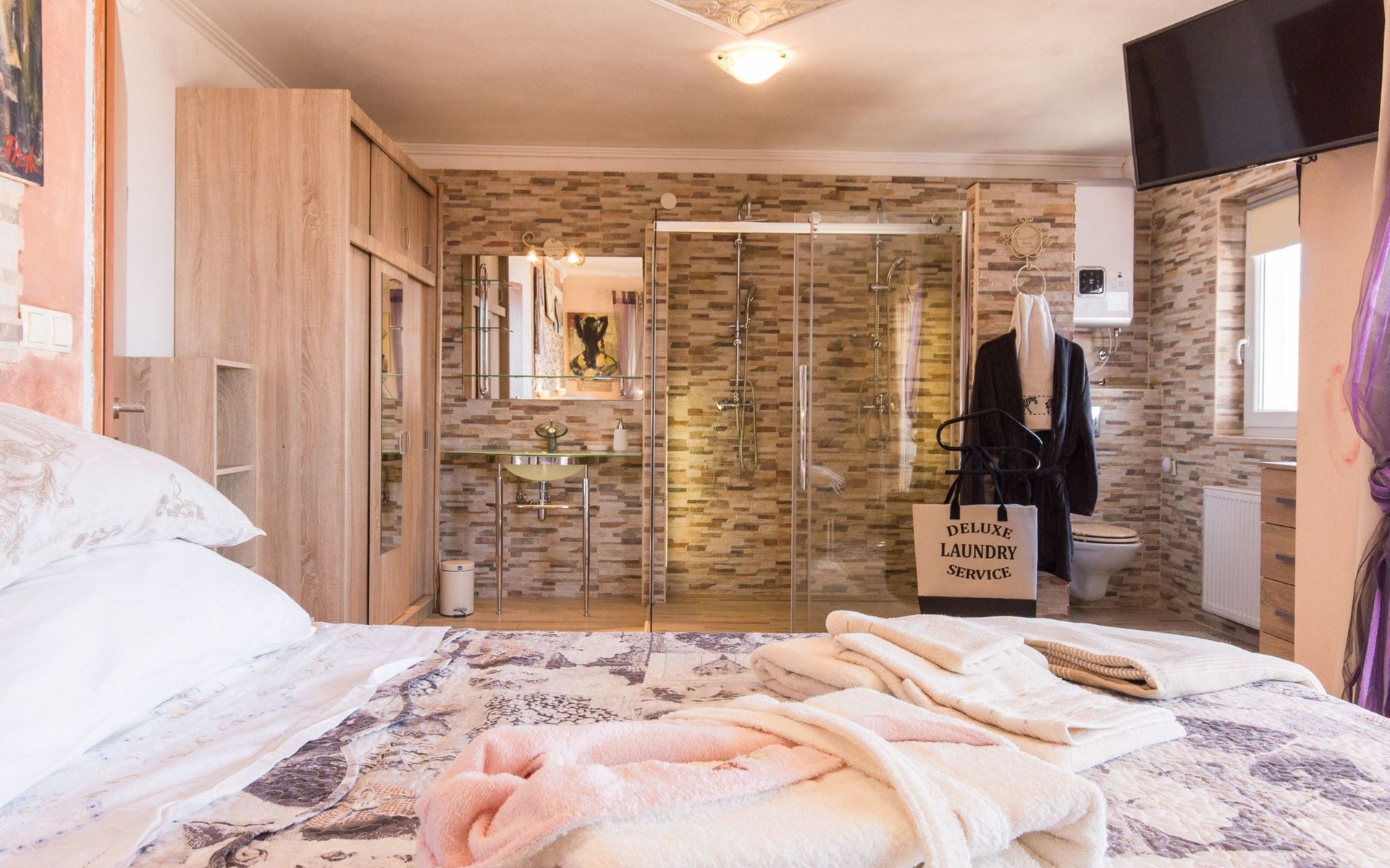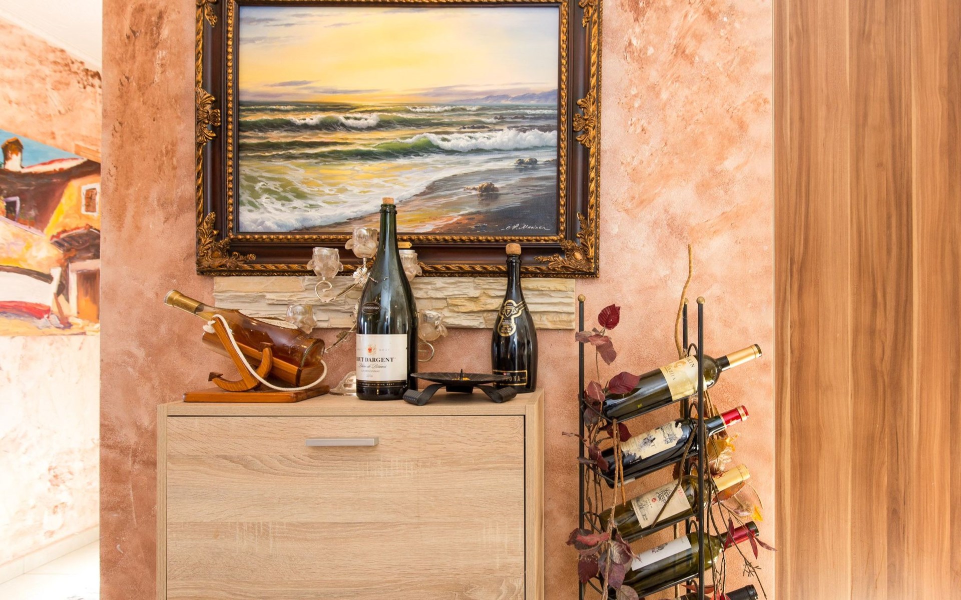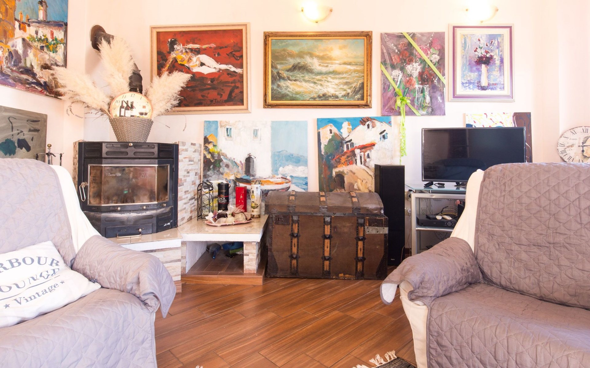 Beautiful Apartment In Unique Villa With Amazing Sea View. If you wan't to have an unforgettable and unique holiday this is a right place for you. This beautiful modern villa is nested on a hill side over a small medieval town of Lovran on the famous Opatija riviera. It boasts wonderful views of the Adriatic from the terraces and very private garden featuring an infinity pool. The location is excellent with all the amenities and the beach in short walking distance. Outside you will find an all fresco dining area, sun loungers and some nice lounge furniture to enjoy the views and the sun. Indoors there is a spacious open living area folded with light and opened to the garden.Villa is a residential facility, built on three floors: ground floor, first floor and attic with a swimming pool and Jacuzzi in the front of the house and an outside kitchen in back of the Villa. The house has, 2 bathrooms, 1 guest toilet, 4 bedrooms, 3 terraces, attic and it is fully air-conditioned. This unique Villa is made in combination of modern living style and vintage style. Apartment in Villa can host up to 8 people and it is perfect for 8 people, like young couples, or one big Family, or even two Families. The Villa has been fully refurnished and decorated in a new fashion cozy design. Each room is different and each room is unique. From master's room which has it's own private bathroom, you can enjoy a beautiful view on the Kvarner Bay and sea with mountains behind while you are laying on your big bad, and in the morning you will see the sun rising while you wake up. Enjoy your morning coffe on your terrace while watching the sea in front of you. On the ground floor or first floor is a beautiful large living room with view on the Kvarner Bay with a fireplace, covered terrace, kitchen and dining room with access to the rear of the house to the terrace. The rear terrace behind the kitchen and dinning room is equipped with a big large table and summer kitchen, so you can sit outside and enjoy your morning breakfast, launch or dinner. On the small hill behind the house is big fireplace where you can prepare your favourite meals outside in the nature, surrounded by beautiful garden with lots of flowers, palms and green wood. From this point you have also a beautiful view on the swimming pool and Kvarner bay and City of Rijeka which shines at nights giving you a wonderful feeling and a great view. This place is a place where you will for sure enjoy your stay in the villa. Imagine yourself staying outside on the fresh air, with a fireplace burning, drinking a glass of homemade vine or a glass of cold beer, overlooking the Kvarner bay and City of Rijeka while the music is playing your favourite song. It is just fantastic and this is something you can just imagine but you can feel it in Villa. Internal stairs lead to the second floor where there are three large bedrooms and a large bathroom. Each room is decorated in a unique cozy style, like Lover's room in violet colour, or Paris room in red and grey, or master room with it's own private bathroom with a terrace and view on the sea. In the attic is a small studio with big double bed, perfect place for kids to play. On each floor there are wonderful large covered balcony overlooking the entire Kvarner bay and Adriatic sea. The house is situated in a peaceful location with beautiful sea views and surrounded by greenery and overlooking Lovran chestnuts. The garden is well tendered with lots of green trees, flowers, palms, and green grass, making your stay more confortable. Interior of the house is completely decorated with beautiful pictures from famous academic painter Claudio Frank. The house has parking space for approximately three vehicles. In front of the house, in the garden there is a big swimming pool with a beautiful view on a sea and City of Rijeka and Kvarner bay, where you can enjoy swimming and relaxing in the pool drinking your favourite cocktail. The area around the pool is equipped with sun loungers and some nice lounge furniture to enjoy the views and the sun. There are also lots of palm trees around the swimming pool making you feel like you are on the beautiful beach. Close to the swimming pool is another terrace with a Jacuzzi and hidromasage where you can enjoy your stay in this massage pool and drink your favorite cocktail. Just to point out what is so special in the Villa: -The house is situated on the hill with a beautiful view on the sea and Kvarner bay -The house is surrounded by the trees so you have a complete privacy at this place -The interior of the house is completely new and the house is equipped with everything you need to make your stay comfortable and unforgettable -The wine cellar with more than 50 different vines that you can taste and drink if you like it -Outside covered kitchen so you can stay outside on the fresh air in the hot summer days and nights -Outside Jacuzzi with a view on the sea -Outside swimming pool with the view on the sea -A butler on your disposal if you need it -If you don’t want to go to the supermarket for a shopping there is a butler at your disposal who will make a shopping for you or any other thing you need -You don’t have a time to make a bed or clean the kitchen or house no problem -There is a cleaning women also at your disposal when ever you need it she will came and do her job. And a thing that you will really like is the next one: -The first day when you arrive I can make a barbecue for all of you so you can eat and drink as much as you want and can. And I’m sure you will love this barbecue because it is made from home made staff, like meat, mushrooms, vegetables, all natural, and homemade vine. And that is just for a single price. - Or I can make also a fish diner for all of you with fresh sea food like fresh fish and other sea specialties and a home made white vine that will taste so good that you will really remember this dinner. And this is also for a single price . -And if you need any 