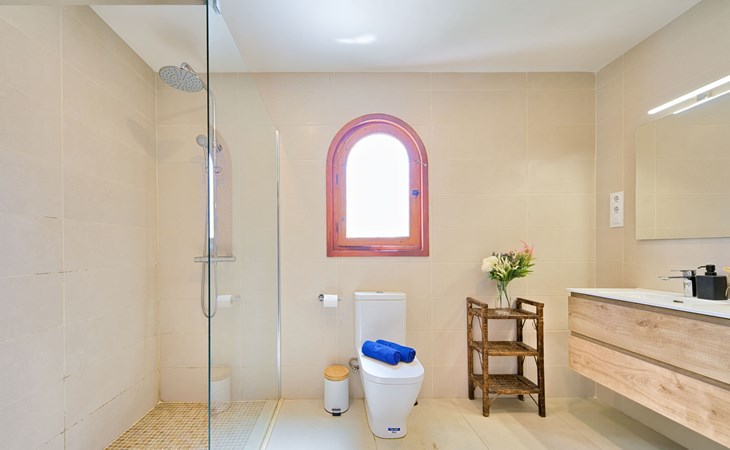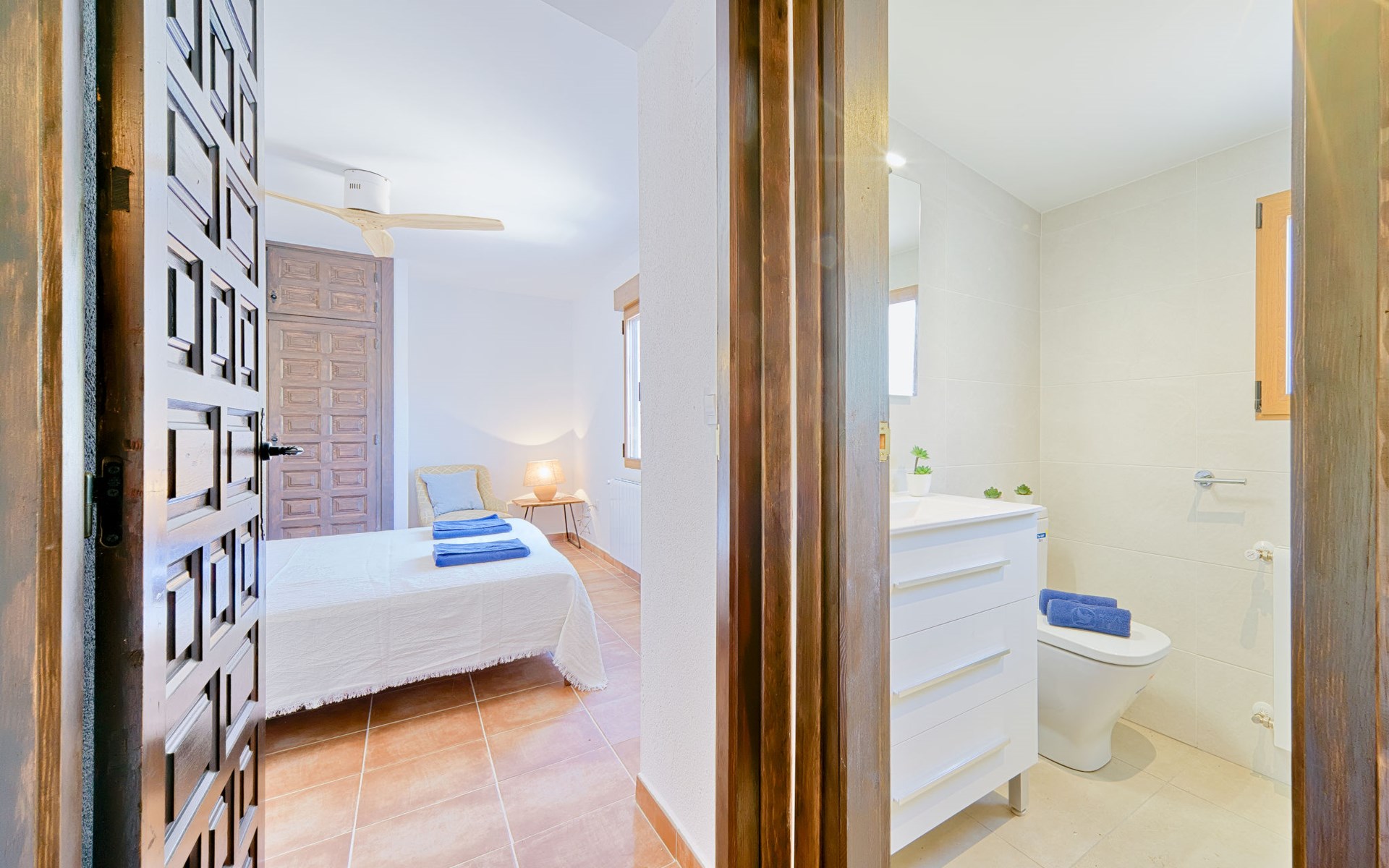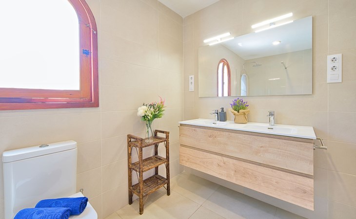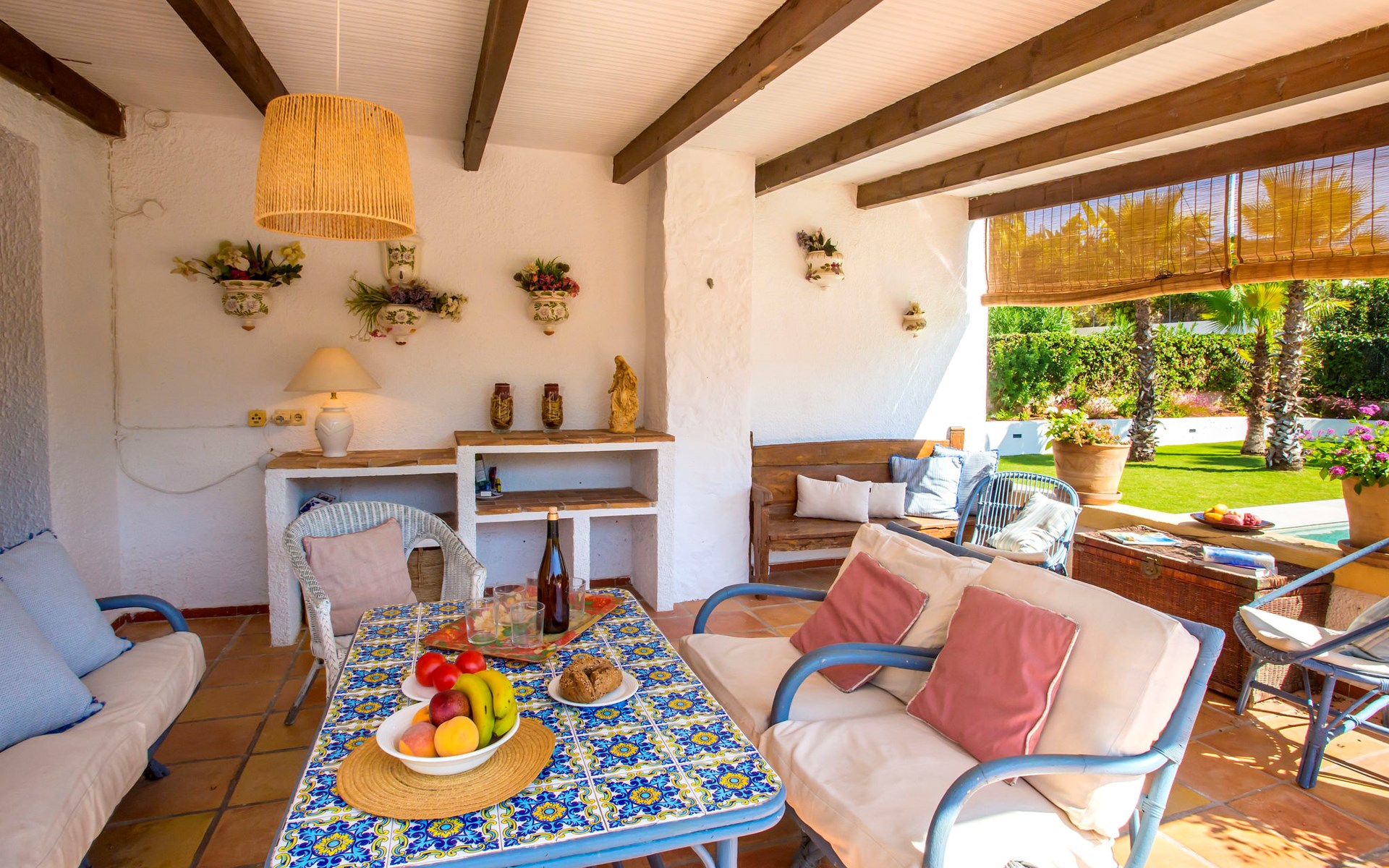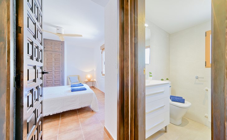 Groot, mooi, gezellig huis "Villa Angelo". 2.6 km van zee, 2.6 km van het strand. Voor alleengebruik: tuin met gazon en bomen, openluchtzwembad hoekig (10 x 6 m, 80 - 210 cm diepte, seizoensgebonden beschikbaarheid: 01.Jan. - 31.Dec.) met trap. Buitendouche, patio, prieel, tuinmeubelen, barbecue, parkeerplaats (voor 3 auto's) op het terrein. Winkel 450 m, supermarkt 1.7 km, restaurant, bar 500 m, bushalte "Farmacia Salort" 2.5 km, zandstrand "El Arenal" 2.6 km. Jachthaven 2.6 km, golfterrein (9 holes) 4.1 km, surfschool 2.4 km, zeilschool 2.6 km. De eigenaar accepteert geen jeugdgroepen.