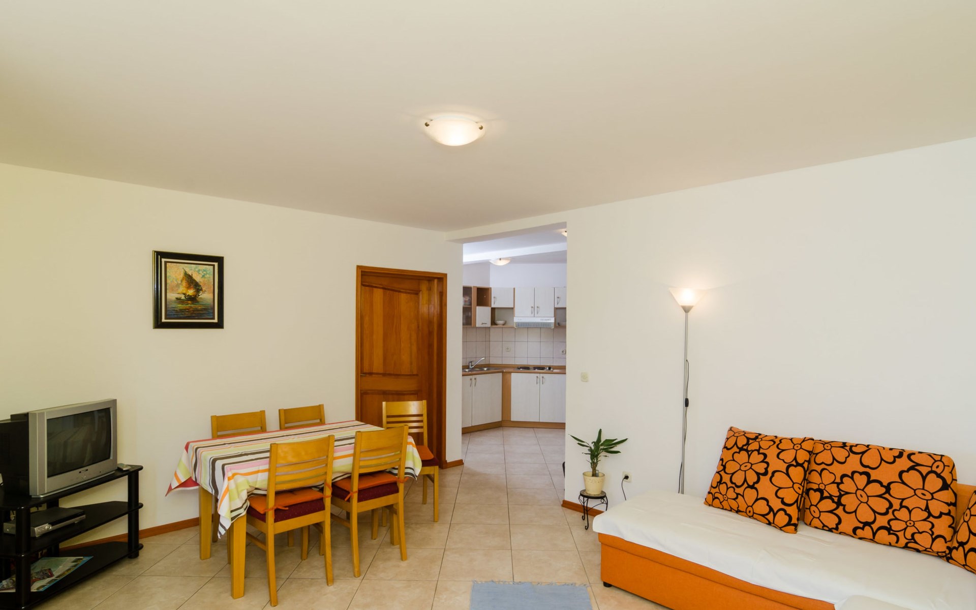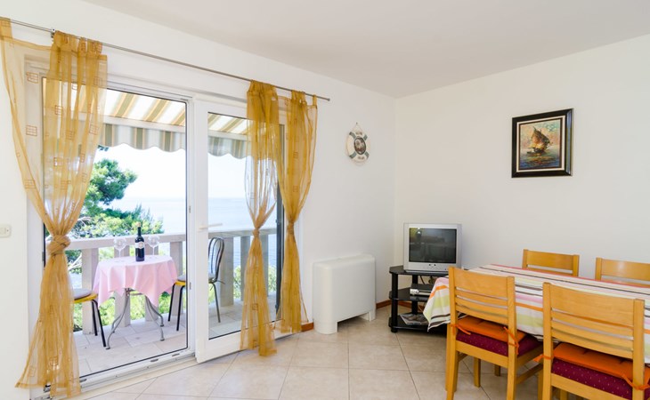 Dingač - Borak 5 km van Trstenik: Mooi appartementencomplex "Plavac Mali". Buiten de plaats, 4 km van het centrum van Potomje, rustige, zonnige ligging tegen een helling, 30 m van zee, 30 m van het strand, aan een doodlopende weg, te midden van groen, op het zuiden. Voor medegebruik: buitendouche, barbecue. In het huis: internetaansluiting. Parkeerplaats bij het huis op het terrein. Winkel 4 km, restaurant 30 m, bushalte 4.2 km, kiezelstrand 130 m, rotsstrand 30 m. Het restaurant, gelegen op 30 m van het huis, is geopend van 20.06. - 01.09. Een ander restaurant bevindt zich in Trstenik, op 5 km afstand. In Borak kan men een duikuitrusting huren. In Zuljana is bovendien een duikschool, 24 km van Borak.