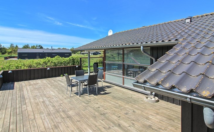 Eengezinswoning, bouwjaar 2010. 900 m van zee. Voor alleengebruik: wild terrein 2.800 m2. Terras (80 m2), kinderspeelplaats (schommel). In het huis: sauna, wasmachine, droger. Parkeerplaats bij het huis. Carport. Levensmiddelenwinkel 3 km. De eigenaar accepteert geen jeugdgroepen.