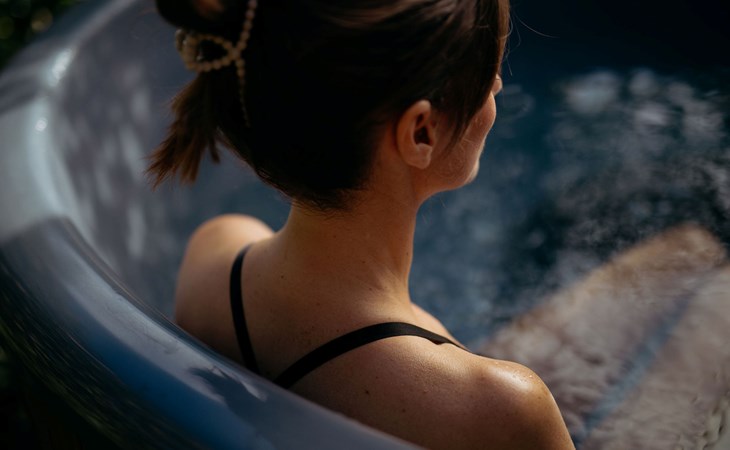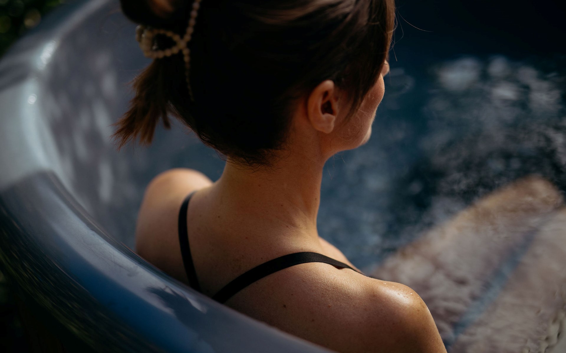 De wellness faciliteiten bij het huisje en de mooie bosrijke omgeving