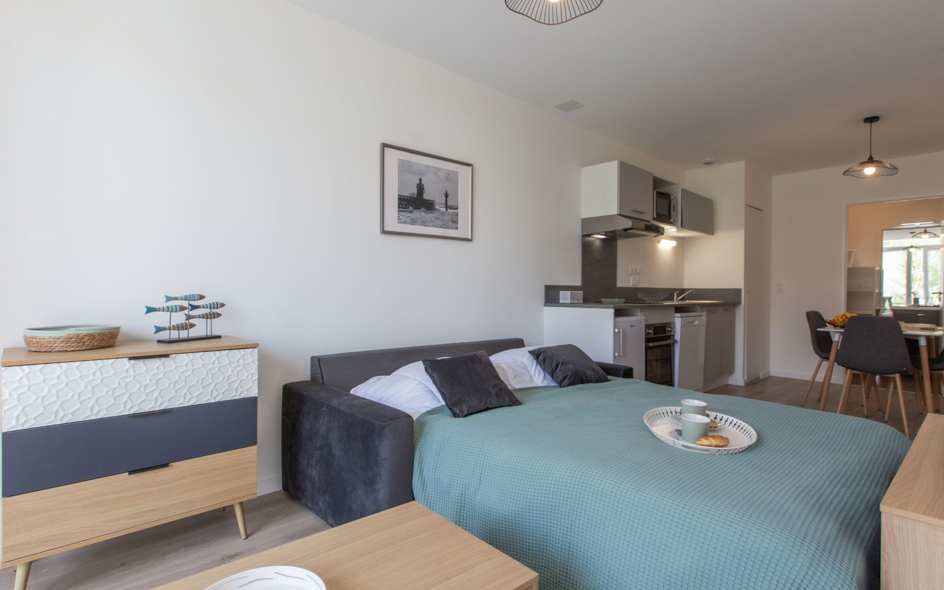 Capbreton: Flatgebouw "Cap Océan", van 2 verdiepingen, bouwjaar 2023. 17 appartementen in de woning. In de plaats, 150 m van zee, 150 m van het strand. In het complex: wasmachine, droger (voor medegebruik). Openbare parkeerplaatsen in de straat. Winkel 300 m, levensmiddelenwinkel 150 m, supermarkt 1.8 km, restaurant 50 m, bakkerij 150 m, fietsverhuur 100 m, zandstrand "Du Prévent". Golfterrein (18 holes) 4 km, surfschool 150 m, tennis 3 km, midgetgolf 200 m, manege 1 km. Attracties in de buurt: Seignosse 15 km, Bayonne 22 km, Dax 37 km, Biarritz 37 km. Bekende meren kunnen gemakkelijk worden bereikt: Réserve Naturelle des Marais d’Orx, Réserve Naturelle du courant d’Huchet.