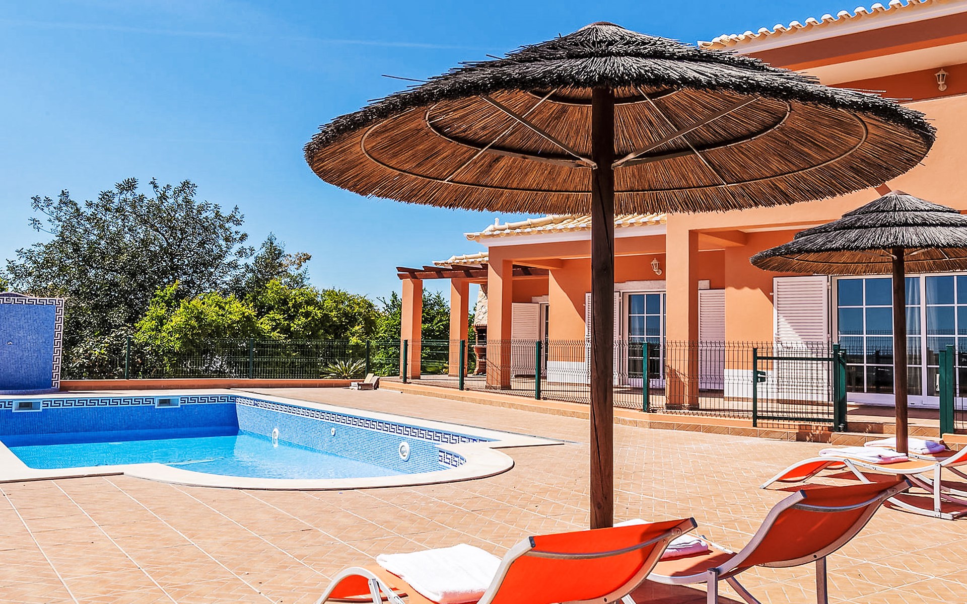 Villa "Casa da Horta", bouwjaar 2012. 9.3 km van zee. Voor alleengebruik: terrein 2.500 m2 (omheind), mooie tuin ter ontspanning, openluchtzwembad hoekig, verwarmd, omheind (9 x 4 m, 80 - 150 cm diepte, seizoensgebonden beschikbaarheid: 01.Jan. - 31.Dec., extra) met zout-elektrolyse. Buitendouche. In het huis: air-conditioning, alarmsysteem, wasserette, wasmachine. Luchthaventransfer. Parkeerplaats (voor 6 auto's) op het terrein. Levensmiddelenwinkel 5.6 km, supermarkt 6.2 km, winkelcentrum 10.7 km, restaurant 5.6 km, bar 5.6 km, café 5.6 km, internet cafe 5.6 km, biertuin 5.6 km, bushalte 1.9 km, zandstrand "Praia de armação de Pêra" 9.3 km. Golfterrein (9 holes) 4.6 km. Attracties in de buurt: zoomarine 9.3 km, Slide e Slpash 19.7 km, Algarve Shopping Guia 10.7 km, Amendoeiras Golf 4.6 km. Groepen jongeren uitsluitend op aanvraag.