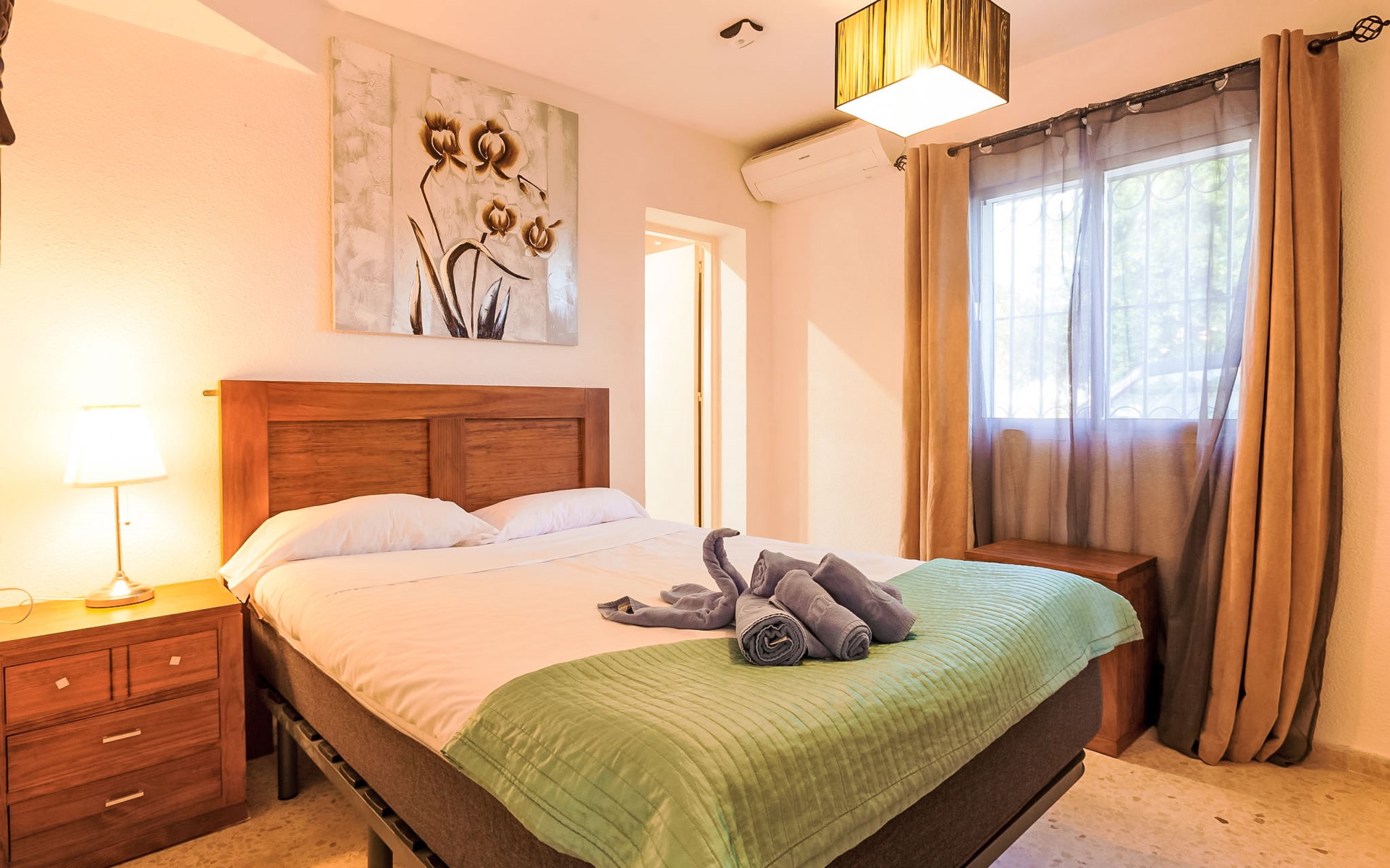 Mooi, comfortabele villa "Las Granadillas", van 2 verdiepingen. In het district Estepona, zonnige, verhoogde ligging villa wijk, gebied met weinig verkeer, 4 km van zee, 4 km van het strand, op het zuidwesten. Voor alleengebruik: mooie tuin ter ontspanning, openluchtzwembad hoekig (9 x 4 m, 100 - 180 cm diepte, seizoensgebonden beschikbaarheid: 01.Jan. - 30.Dec.). Buitendouche, tuinmeubelen, barbecue. In het huis: internetaansluiting, Internet (WiFi), centrale verwarming, air-conditioning, alarmsysteem, wasmachine. Parkeerplaats bij het huis. Levensmiddelenwinkel 4 km, supermarkt 4 km, winkelcentrum 5 km, bar 4 km, bakkerij 4 km, bushalte "El Castor" 2.2 km. Golfterrein (9 holes) 7 km. Auto noodzakelijk. Geschikt voor families. Het objekt is geschikt voor 6 volwassenen groepen jongeren uitsluitend op aanvraag. Vliegveld 76 km van het huis. De omgeving is gevoelig voor geluidsoverlast. Gelieve geen lawaai te maken en de rust te bewaren.
