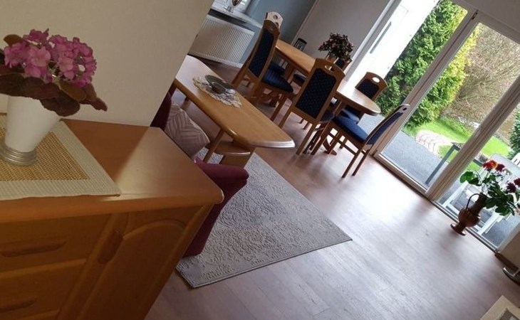 Dear guests.You can expect a lovingly furnished 3-room flat on the ground floor, on 110 m², and a garden of over 450 m² for exclusive use, an oversized waterbed in the bedroom, measuring 2m x 2.20 m, which always delights our tall guests. If required, we can also provide a baby travel cot with everything you need for an extra charge.The living/dining room, with a large 75-inch TV, Magenta TV, Internet and WLAN and a view of the barely visible, sunny and sheltered garden, invites you to relax, barbecue and unwind after returning from your day trips.The flat has underfloor heating as well as radiators in every room and a bright, fully equipped modern kitchen with microwave, dishwasher, ceramic hob, convection cooker and a large seating area, child seat and two children's blankets are waiting for your family. There is also a 1.40 metre wide bed here.In the children's room there is a wall unit and a small seating area as well as a cosy 1.40 m wide bedThe flat is designed for 4 people plus a small child, but is also suitable for more (small) people who can sleep together in a 1.40 m bed. The ground floor flat is furnished to a high standard and cosy.You will find tablecloths and beautiful decorations, carpets and spices as well as a washing machine with tumble dryer to make you feel at home. Please bring your own washing powder, tea towels and detergents. Of course we also have a potty, a changing mat and a baby carrier, bobby car and sandpit. However, you will need to bring the reducer for the highchair. You will also need to bring bed linen, towels and all sanitary items. The fitted mattress protectors serve as a base for the bed sheet you need to bring. For all emergencies, we also provide bed linen and towels by arrangement.The flat is a pet-free, non-smoking flat. Your bicycles are stored in the outside storage room so that they are safe and your car is parked right next to the house on the driveway.Our Wesergarten holiday flat, briefly summarised:- Furnished flat on 110 m², ground floor, 3 rooms, kitchen, bathroom, storeroom.- 450m² well-kept garden for sole use, completely enclosed with garden shed.- Storage room next to the house for bicycles.- Reserved, free car park next to the house on the property.- Maximum 4 adults plus infant possible, with cot and baby seat, baby carrier.- Two bedrooms, large double water bed and two single beds.- 75 inch television with Magenta TV and free WLAN/Internet.- Underfloor heating and radiators in all rooms, new heating system installed in 2023.- Children's potty, children's plate, sandpit, tricycle with bar, bobby car, books and games.- Bed linen and towels can be provided for an extra charge.- Pets and smoking are not allowed inside the flat.- Central location, walking distance to Nordenhammer-City / shopping centre.- Train station and buses available around the corner.- Approx. 20 minutes by car to Burhave (16 km) or North Sea resort Tossens (23 km), Eckwarderhörne or the small fishing harbour Fedderwardersiel.Dear guests.I am pleased to welcome you as your host in my holiday flat Wesergarten. It is very important to me to design the accommodation with small amenities so that guests can really relax. So you can look forward to a few lovely days here on the Weser with a central location for your beautiful excursions in all directions.There are many interesting and beautiful sights to visit here that you will remember for a long time to come. The bright flat you have booked will help you to feel at home here immediately. After your tours, you will be able to relax in the barely visible garden, listen to the birds and let your gaze wander over the greenery while the barbecue heats up, the little ones play in the sandpit or your partner(s) enjoy the warming rays of sunshine with you and a glass of wine on the terrace.I attach great importance to cleanliness and the quality of the beds, in which you will certainly sleep well. What could be more cosy and relaxing than warm water! A soft mattress topper with memory function is also available in the room for the sofa with bed function. For cold evenings, when you might not use the terrace as much, I have thought about a relaxed cinema-like viewing of the TV programme with a modern device, Internet and WLAN.I think it's these little things that make a guest's holiday enjoyable. Look forward to the feel-good effect with us. We look forward to making you feel at home. I now wish you a wonderful holiday, lots of sun, great experiences and a good rest with us and would of course be delighted to receive positive feedback and ratings on your booking portal.Kind regards from your hostess:Susanne BüsingPrivate holiday flat "Wesergarten", quiet location, very close to the centre, with 450m² large garden for exclusive use, Weser beach nearby, 25 minutes by car to the "green" North Sea coast, a few minutes to a shopping centre.In a few minutes by bike you are at Nordenham beach, which is always popular with the green plan routes or if you want to take the long tour via Bremerhaven and Brake. In many places you can cycle along the dyke by the water.Tips:From here you can quickly reach Bremerhaven with its fantastic Immigration Centre, the Climate House with all the world's climate zones, the great zoo for the little ones and the Mediteraneo for strolling and shopping: The ferries to the islands also leave from here.The fishing harbour with its shop window, where there is always something going on and fresh fish is somehow a must. In 1 hour by car you can be in Bremen in the old town or in Bad Zwischenahn on the beautiful lake, in Duhnen on the sandy beach with island feeling or in 20 minutes to the green North Sea resorts of Tossens, Eckwarderhörne, Burhave or in Fedderwardersiel, a small fishing harbour.The zoo in Varel is also recommended for families with children and has a completely different layout to the one in Bremerhaven.- In just a few minutes by bike, you can be at Nordenham beach, which is always a