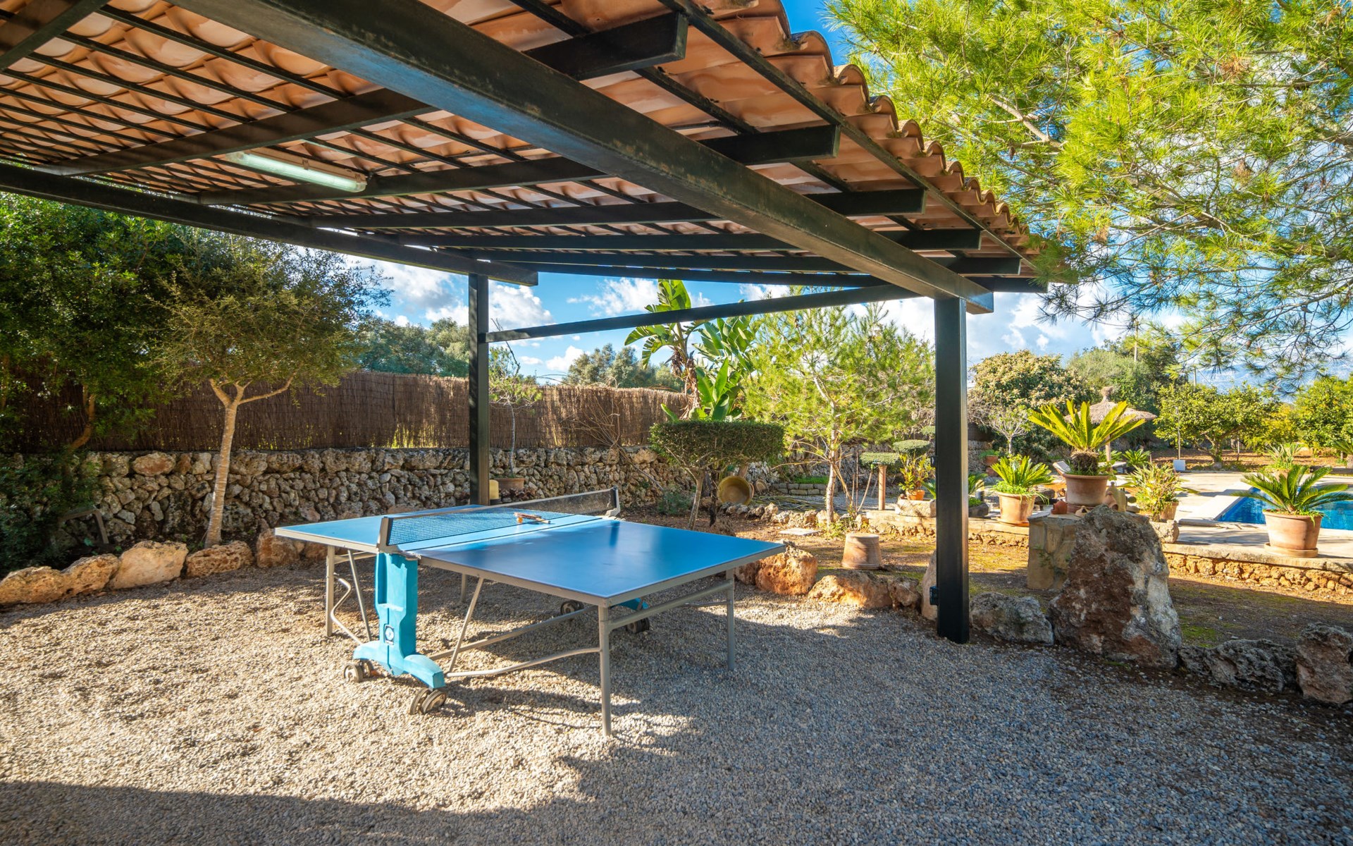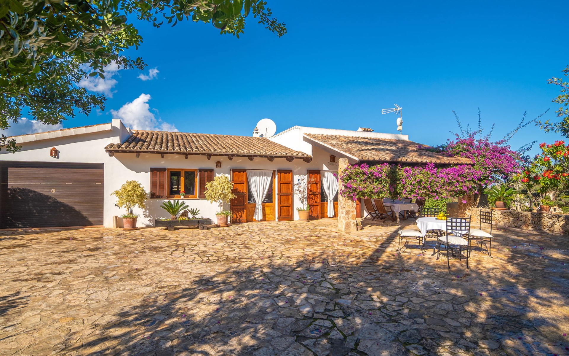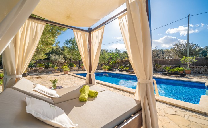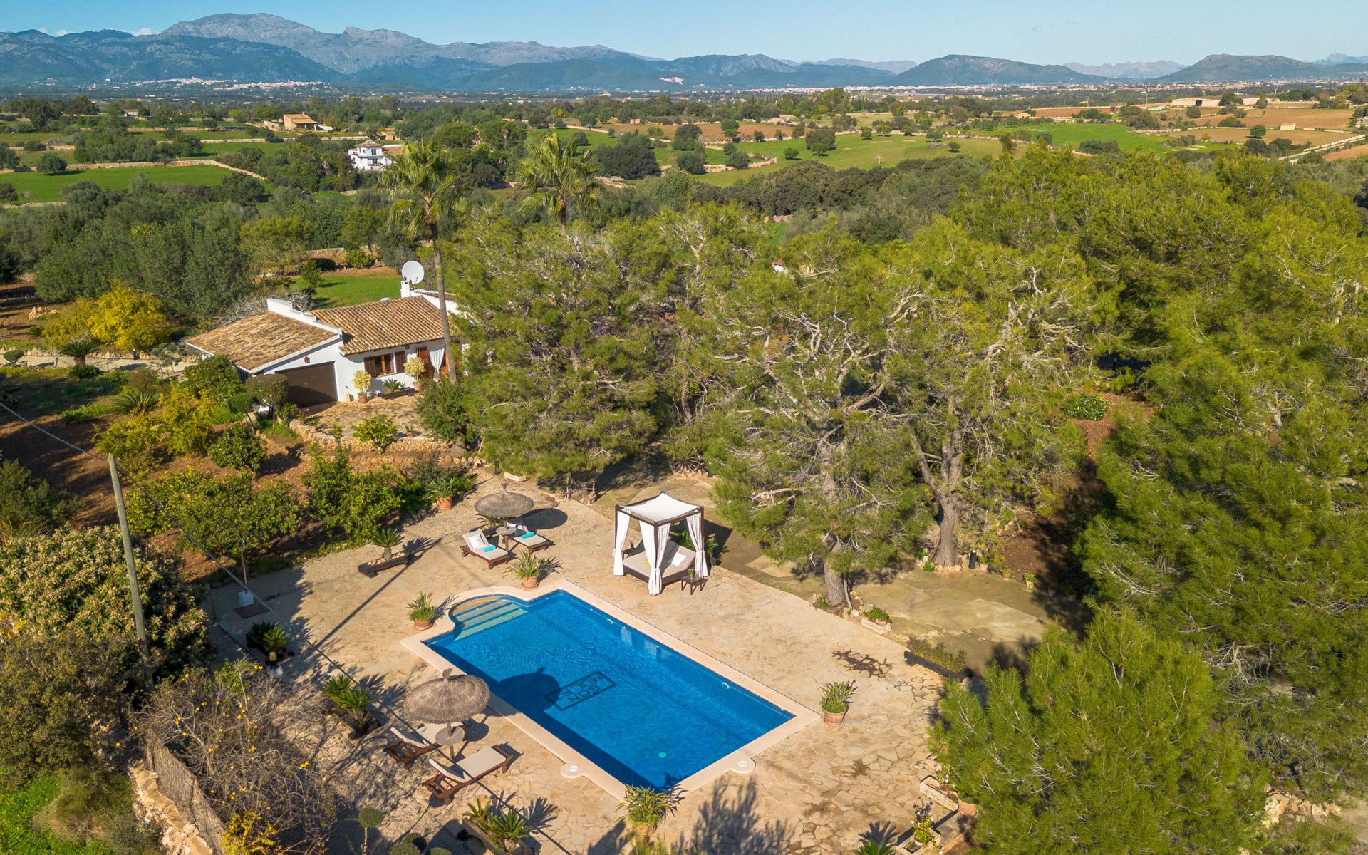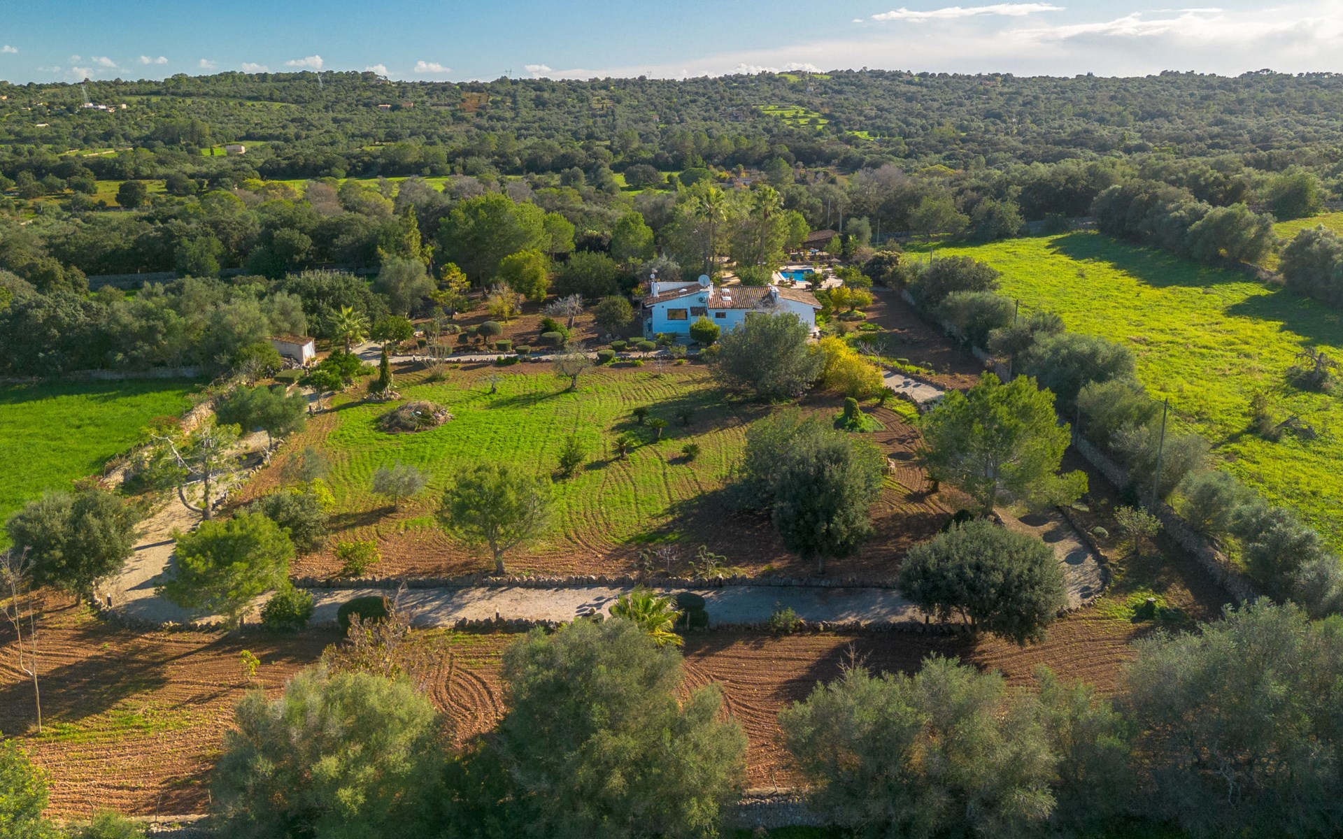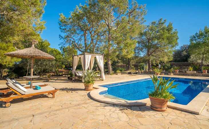 Mooi, gezellig, rustieke huis "Son Mulet", omgeven door bomen. Buiten de plaats LlubĂ, te midden van groen. Voor alleengebruik: terrein 12.000 m2, tuin met openluchtzwembad beveiligd (10 x 4 m, 120 - 200 cm diepte, seizoensgebonden beschikbaarheid: 01.Jan. - 31.Dec.). Buitendouche, prieel, terras, tuinmeubelen (schommel), onderhoud zwembad door de eigenaar/tuinman. In het huis: Internet (WiFi), wasmachine. Overdekte parkeerplaats. Winkel 2 km, supermarkt 2 km, restaurant 2 km, bushalte "Llubi" 3 km, zandstrand 20 km, baai 20 km. Tennis 2 km. Auto noodzakelijk. Baby uitrusting op aanvraag (incl.). De eigenaar accepteert geen jeugdgroepen. Laden en lossen van de baggage is mogelijk bij het huis. Autobaan in de buurt 8 km van het huis. Vliegveld 40 km van het huis.