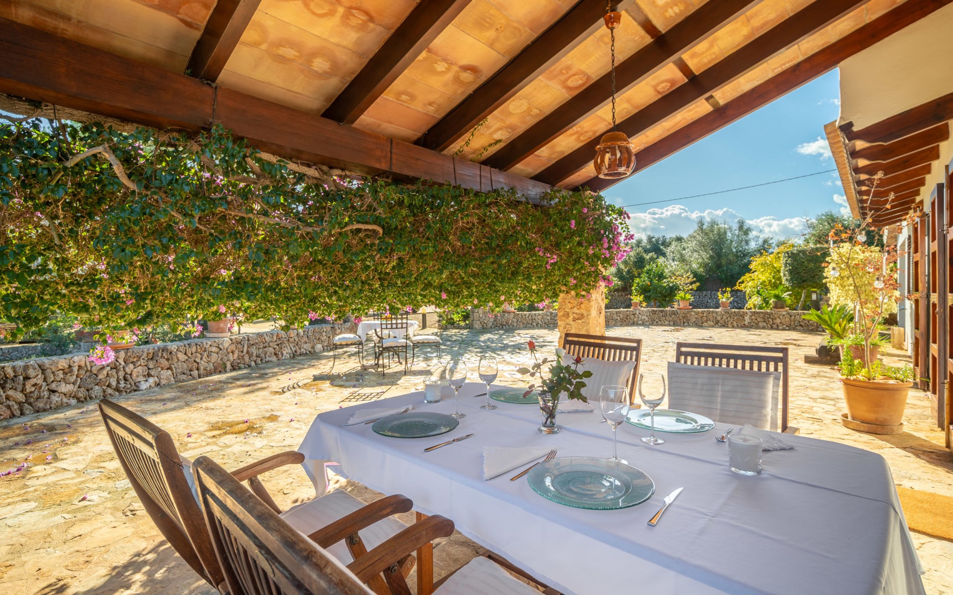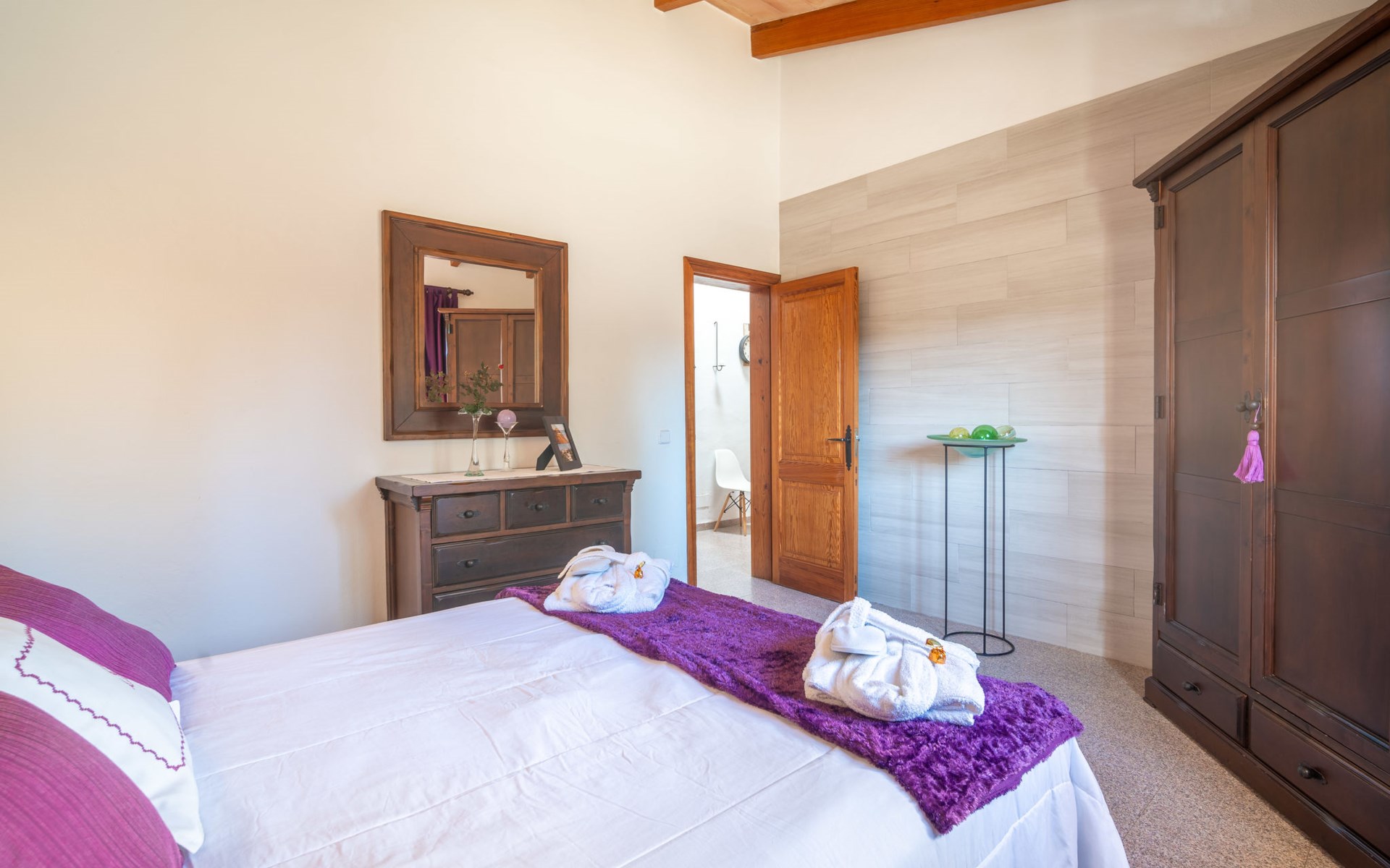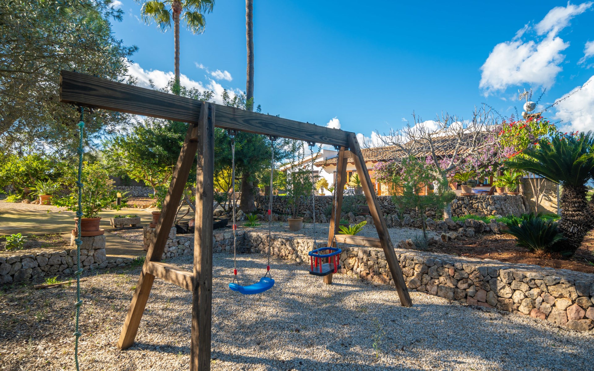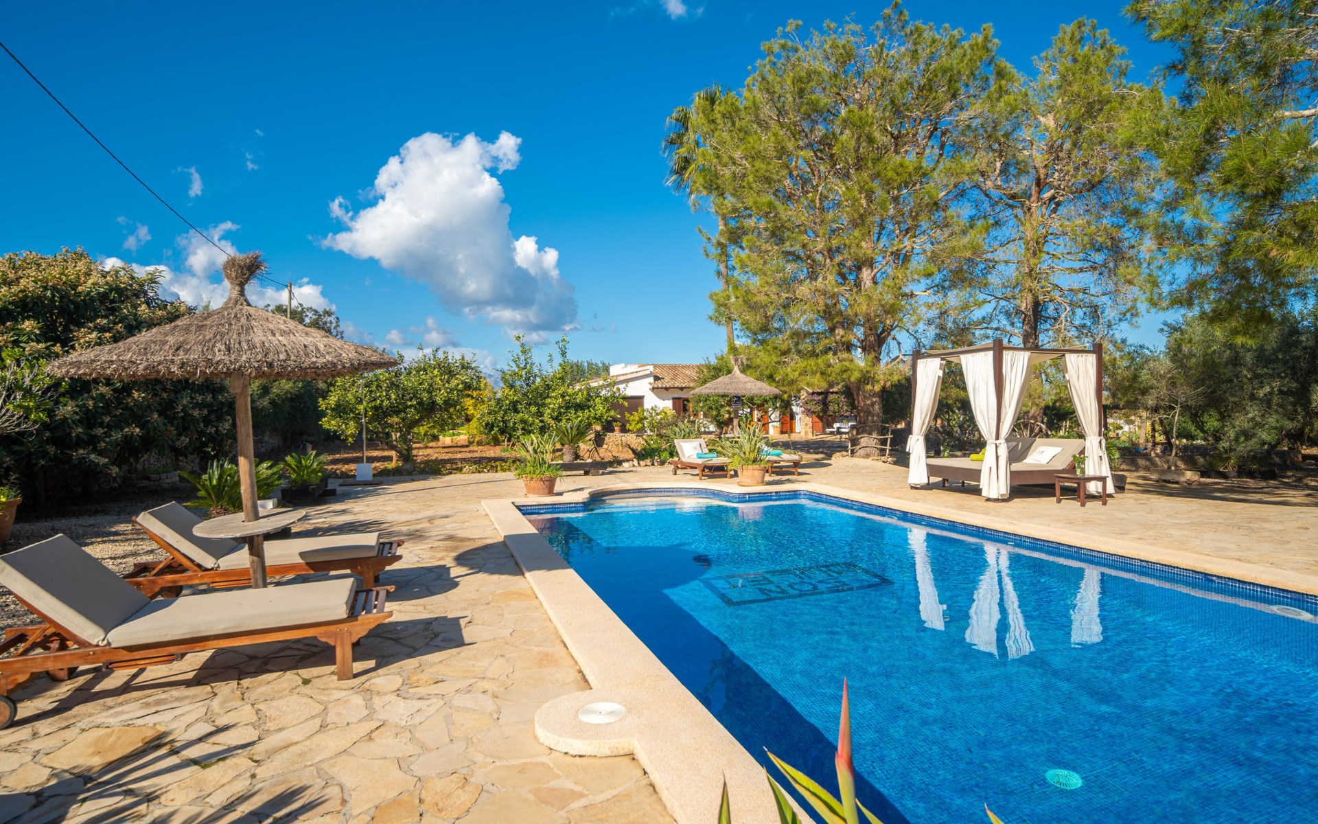 Mooi, gezellig, rustieke huis "Son Mulet", omgeven door bomen. Buiten de plaats LlubĂ, te midden van groen. Voor alleengebruik: terrein 12.000 m2, tuin met openluchtzwembad beveiligd (10 x 4 m, 120 - 200 cm diepte, seizoensgebonden beschikbaarheid: 01.Jan. - 31.Dec.). Buitendouche, prieel, terras, tuinmeubelen (schommel), onderhoud zwembad door de eigenaar/tuinman. In het huis: Internet (WiFi), wasmachine. Overdekte parkeerplaats. Winkel 2 km, supermarkt 2 km, restaurant 2 km, bushalte "Llubi" 3 km, zandstrand 20 km, baai 20 km. Tennis 2 km. Auto noodzakelijk. Baby uitrusting op aanvraag (incl.). De eigenaar accepteert geen jeugdgroepen. Laden en lossen van de baggage is mogelijk bij het huis. Autobaan in de buurt 8 km van het huis. Vliegveld 40 km van het huis.