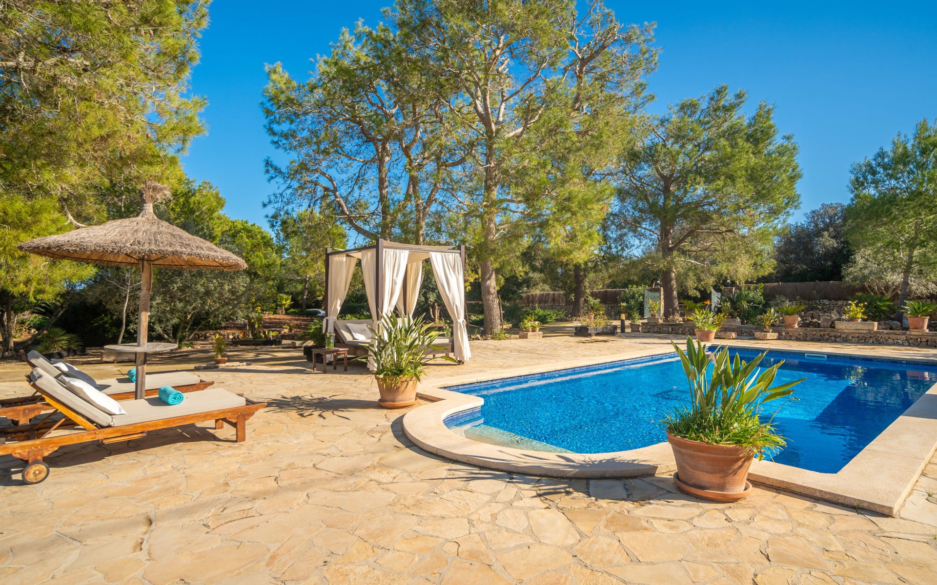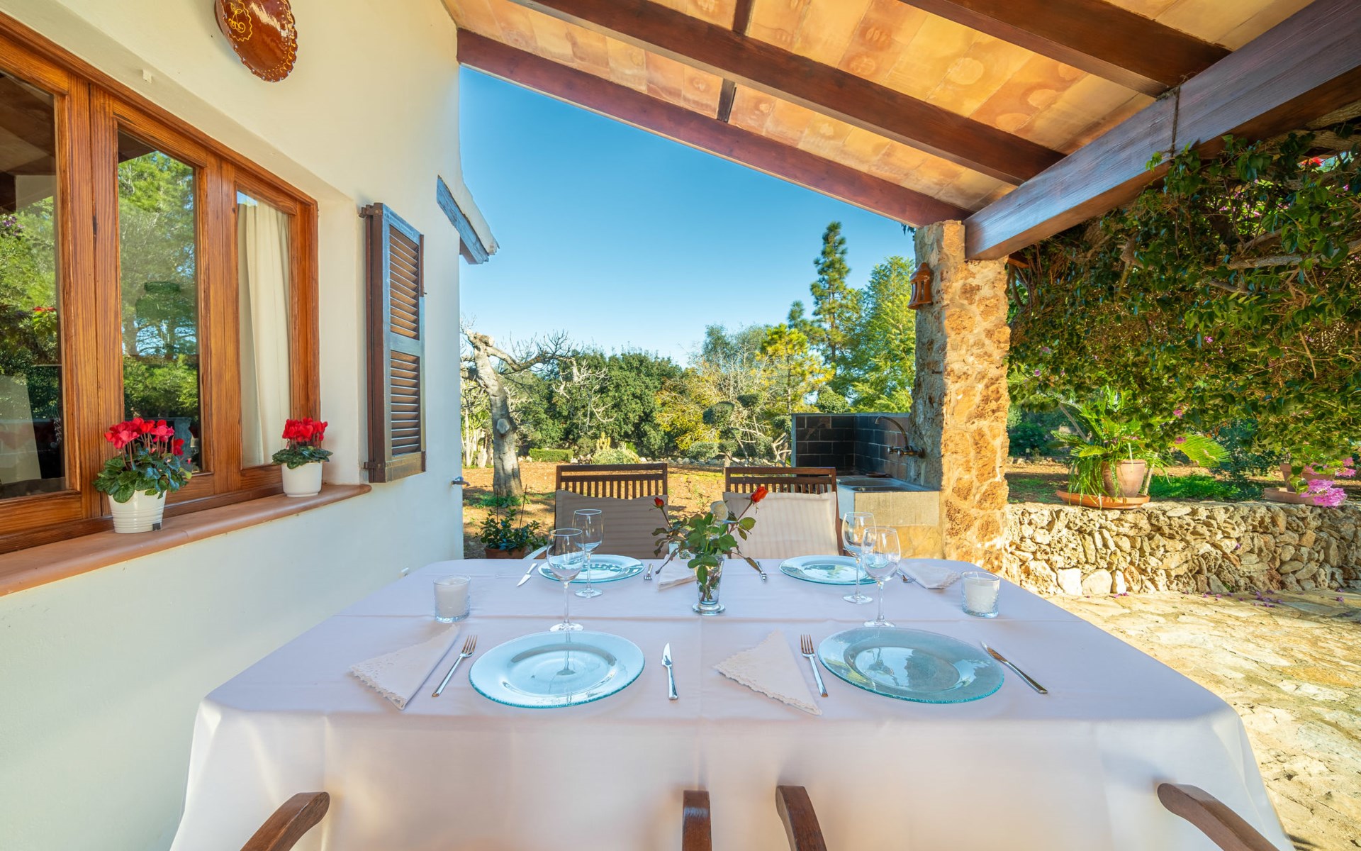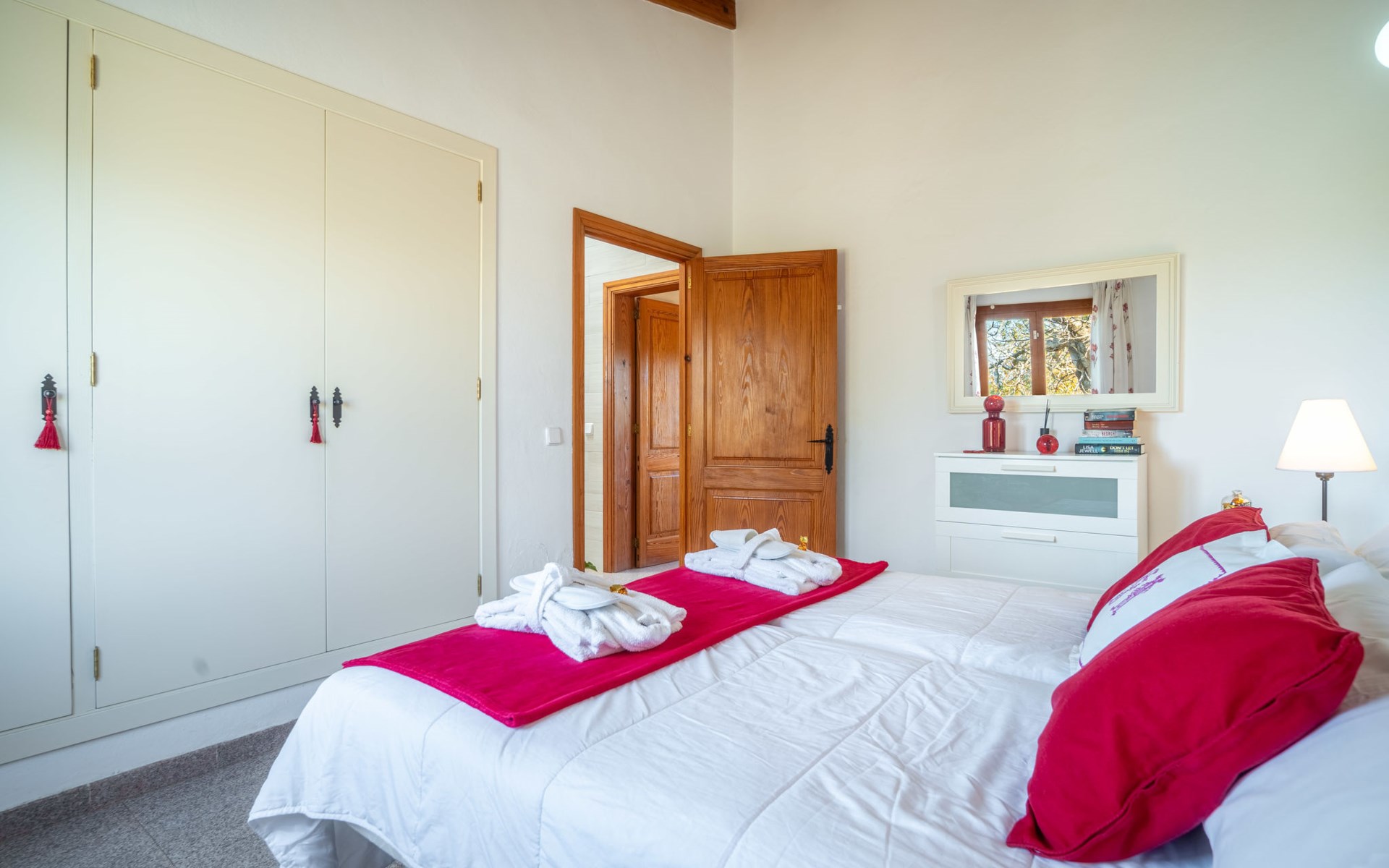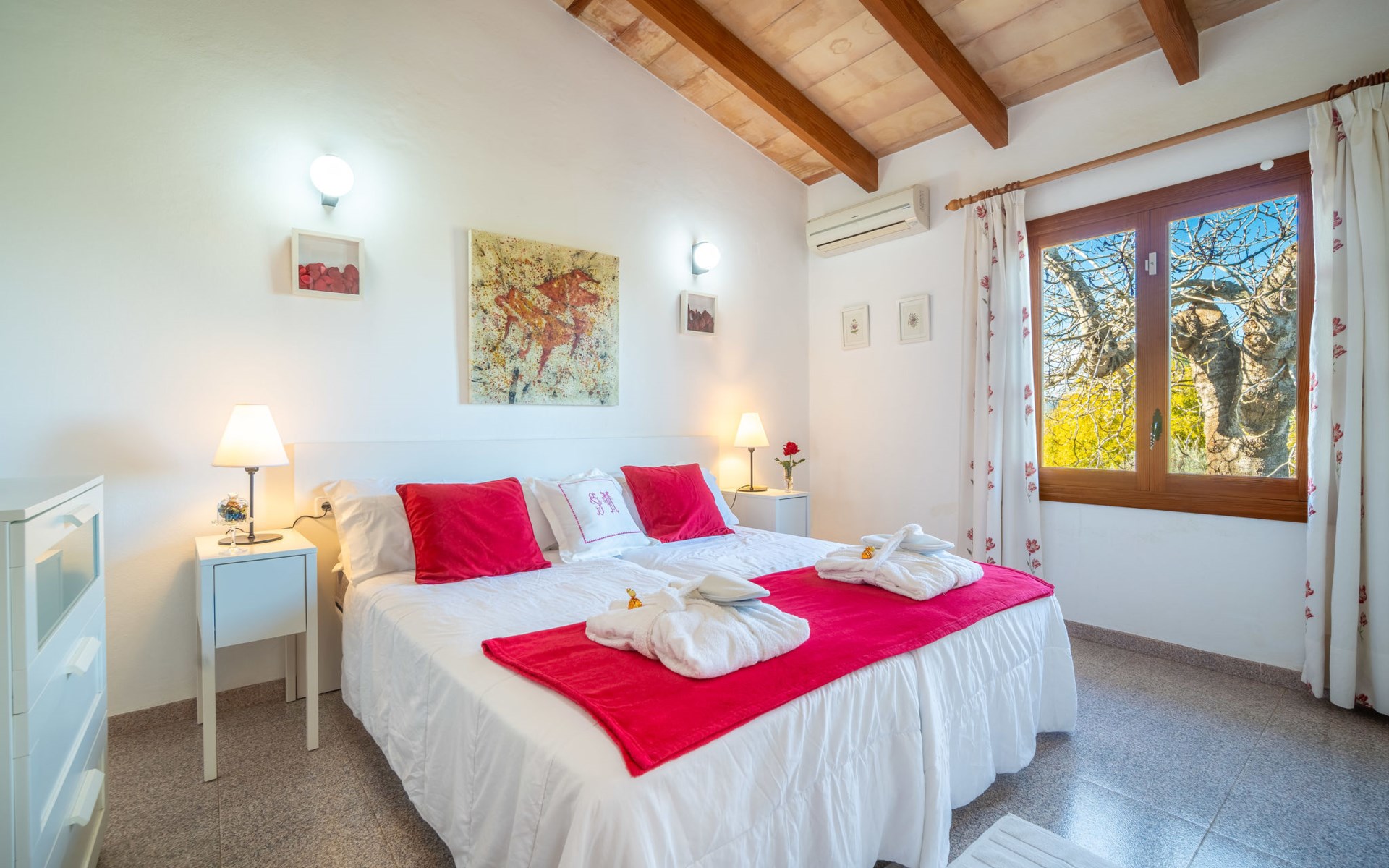 Mooi, gezellig, rustieke huis "Son Mulet", omgeven door bomen. Buiten de plaats LlubĂ, te midden van groen. Voor alleengebruik: terrein 12.000 m2, tuin met openluchtzwembad beveiligd (10 x 4 m, 120 - 200 cm diepte, seizoensgebonden beschikbaarheid: 01.Jan. - 31.Dec.). Buitendouche, prieel, terras, tuinmeubelen (schommel), onderhoud zwembad door de eigenaar/tuinman. In het huis: Internet (WiFi), wasmachine. Overdekte parkeerplaats. Winkel 2 km, supermarkt 2 km, restaurant 2 km, bushalte "Llubi" 3 km, zandstrand 20 km, baai 20 km. Tennis 2 km. Auto noodzakelijk. Baby uitrusting op aanvraag (incl.). De eigenaar accepteert geen jeugdgroepen. Laden en lossen van de baggage is mogelijk bij het huis. Autobaan in de buurt 8 km van het huis. Vliegveld 40 km van het huis.