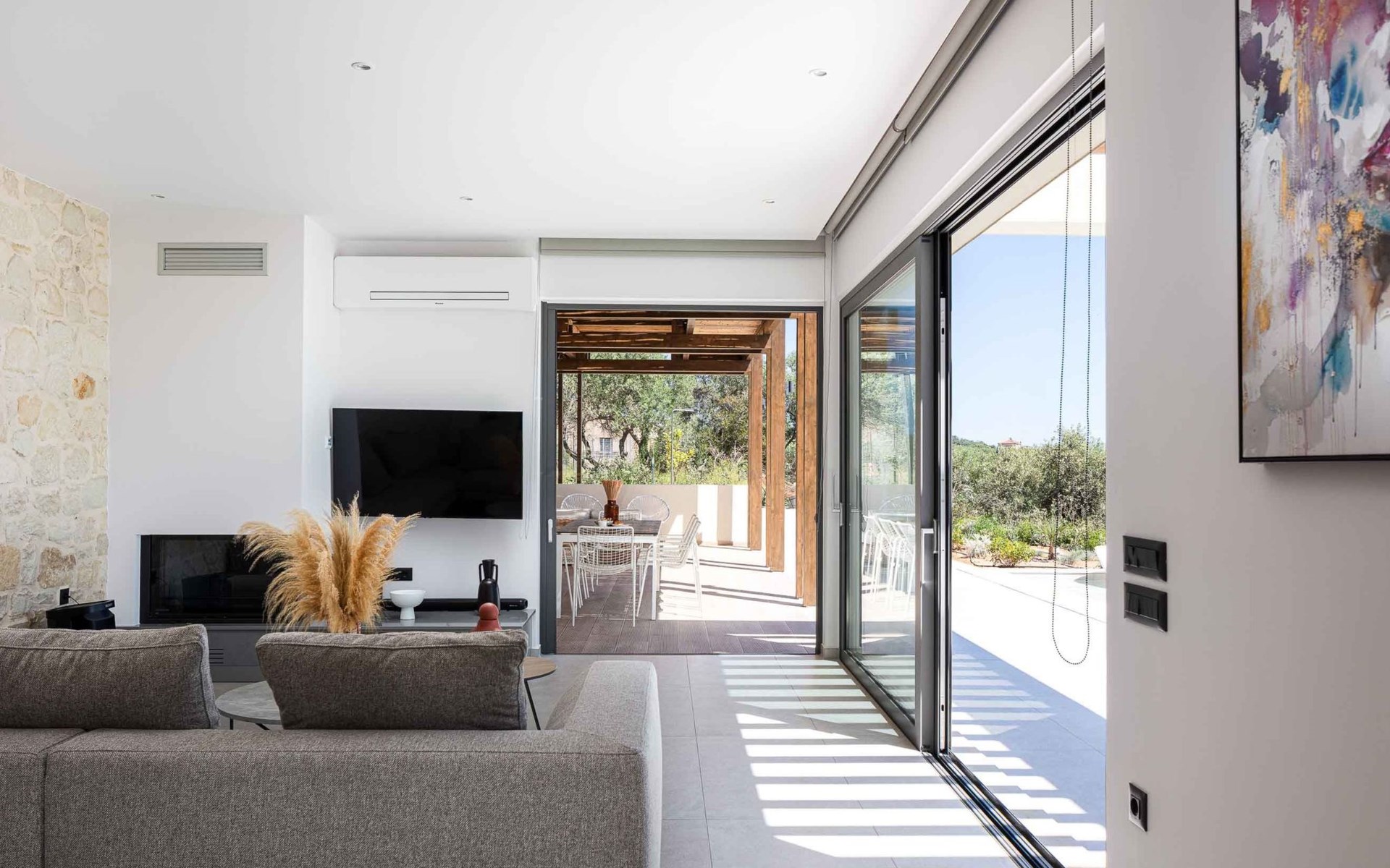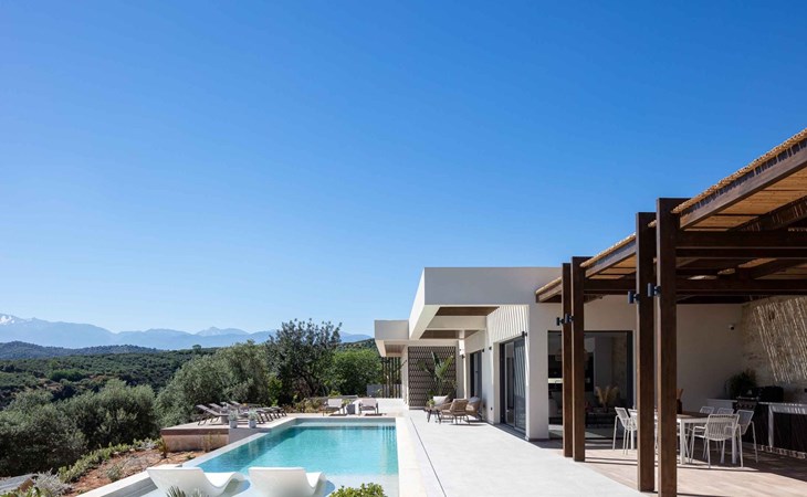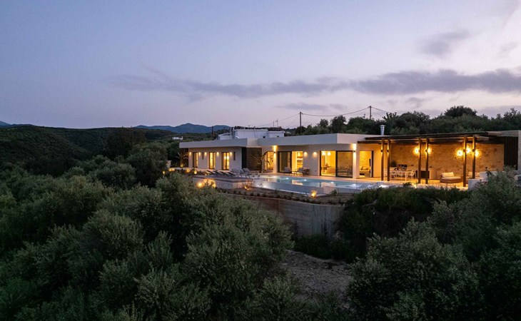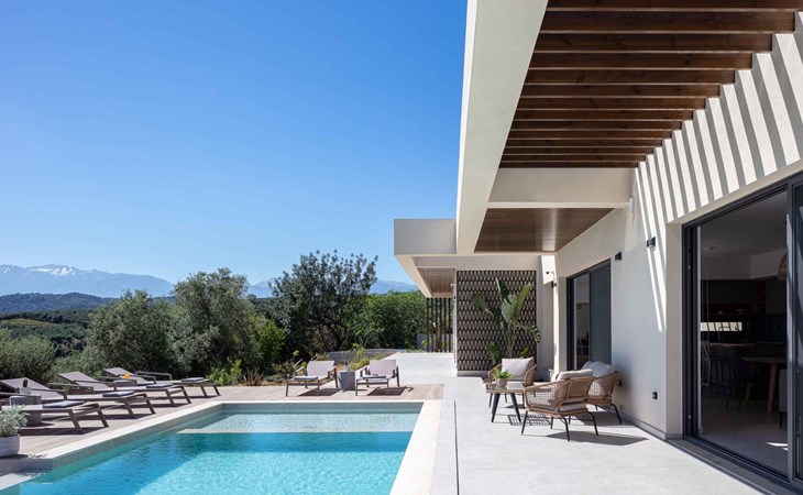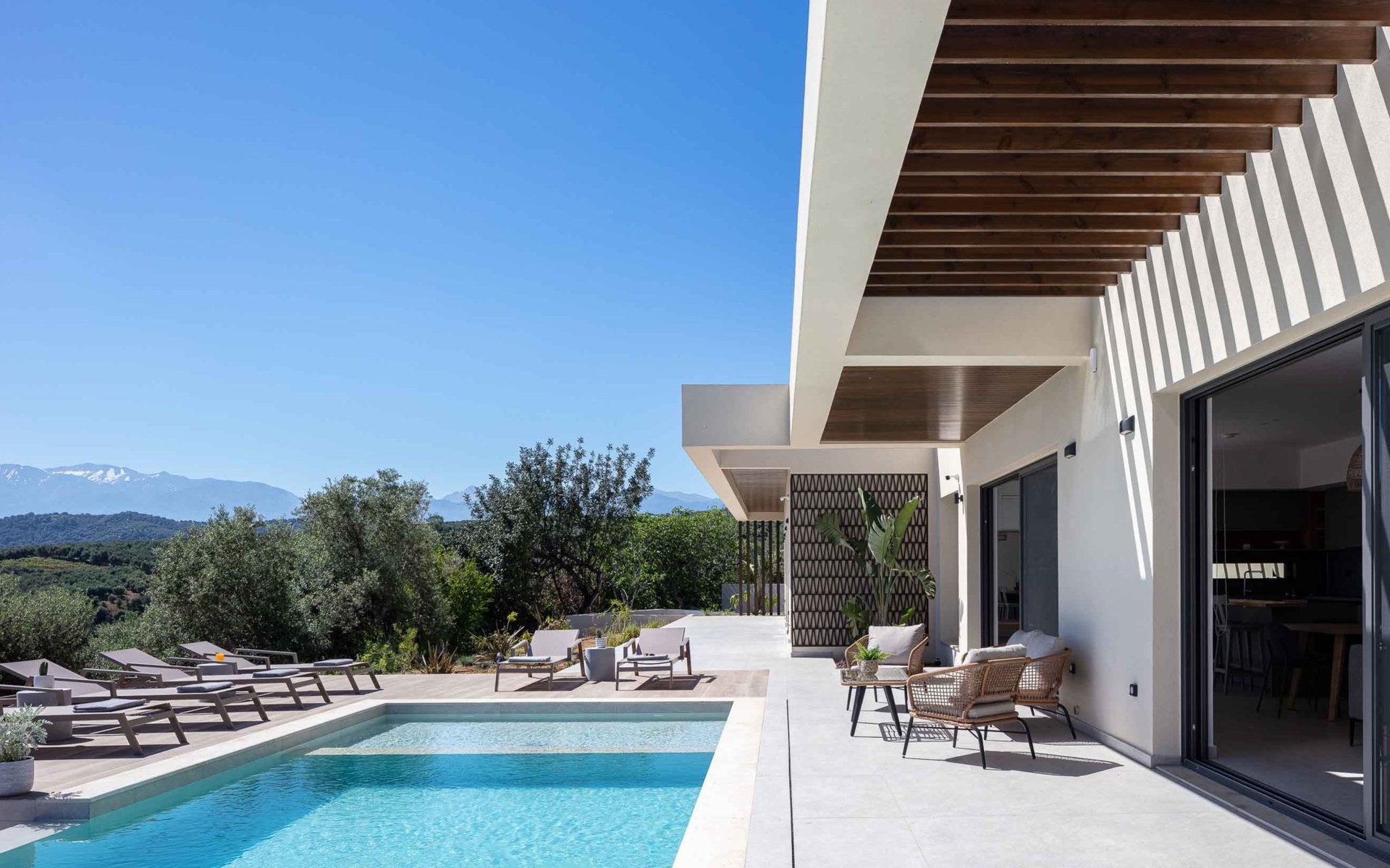 Xirokampi is a village that it is located about 20 kilometres from the Chania City Center. In this place, you could relax and enjoy the serenity that the area offers to the guests. The beach of Maleme is located 4 kilometres away from the villa and the close by facilities are located 4 kilometres away. The calmness and nature will absolutely make you feel tranquil.Villa Aglaea I An exclusive member of Holiways Villas.This hidden residence set within the area of Xirokambi, is a true gem and the perfect spot for guests who would like to relax away from the lights of a town! Spread over one floor, Villa Aglaea is designed to bring ease, offering everything needed for a comfy home base. A one-floor property equipped with all the necessary facilities, furnished with an exceptional selection of elements and its impeccable stylish decor will instantly wow you from the moment you step foot in it. On an envious spot with a panoramic view, you can make the most of your holiday and create an unforgettable experience, this is your unique well-being retreat break!Indoor facilitiesVilla Aglaea is set on one floor, covering 157 sq.m. in total and it accommodates 6 guests in its 3 ensuite bedrooms. Sleek, monochrome and practical, combining the wooden element with the earthy stone, Villa Aglaea invokes a sense of calm, something that makes staying here feel like a proper treat! Entering through its airy open-plan living space, you will be amazed by how the contemporary and fresh interior balances neutral tones, and hues of beige with textures creating the perfect spot for you and your loved ones. The lounge area wraps around the fireplace and the 55” Smart Satellite TV includes a sofa seating large enough for the entire family or friends. Unfolding across one floor, the large windows create a bright, airy living space waiting for you while in the meantime, a few steps further a fully equipped kitchen is found. The same area consists of three bedrooms, spread all over the left side of the villa, with en-suite bathrooms all with showers, adequate for you and your loved ones after a long day in the sun. Not far from this area, there is an extra communal WC, which is suitable for every guest here. There are two yoga mattresses for yoga lovers.Outdoor facilitiesIt's true bliss in a plot of 1087 sqm! You could not find one thing out of place here! A 40 sqm swimming pool with salt water awaits you and your kids soak up the Cretan sun in the lounge area or snuggle up in the sumptuous sofas. This is a fuss-free spot, where under the pergola in the BBQ area preparing the food could be as fun as eating it. The private terrace gives you the chance to host your own soirees in privacy, on special occasions for friends and family. The breathtaking views all over the area of Xirokambi, complete the idyllic scene and give you the chance to celebrate the beauty of Cretan living. Safe to say that there is a parking space for 3 cars.From 2024 there is a resilience fee to the climate crisis that is fifteen euros per night from April to October and four euros per night from November to March. This fee will be paid in cash upon arrival.Holiways Villas I Villa Management with a premium collection of Luxury properties!We aim to provide a high-quality luxury vacation for our guests with a 24/7 support service. We will be more than happy to assist you in creating an unforgettable vacation filled with joy and lasting memories!Holiways team is here for you, satisfying all your desires.You wish for it! We provide it!LayoutLiving area: 157 sqmPlot size: 1087 sqmGround SpaceLiving area with sofa, 55’’ Satellite Smart TV, fireplace, access to the pool terrace, sea viewFully equipped kitchen, and dining area for 8 guestsBedroom 1: King size bed (1.80x2.00), A/C, ensuite bathroom with shower, hairdryerBedroom 2: Twin size beds (0.80x2.00) that can be converted into a queen, A/C, ensuite bathroom with shower, hairdryerBedroom 3: King size bed (1.80x2.00), A/C, ensuite bathroom with shower, hairdryerCommunal WCOutdoor spacePrivate outdoor saltwater swimming pool (40 sqm and a max depth of 1.40m)Kids pool (7.2sqm and 0.80m depth)Sun loungersOutdoor showerBarbeque (gas) with a dining table for 8 guestsPrivate garden around the villaParking space for 3 carsXirokampi, ChaniaAirports/Ports:Chania Airport 37.7 km, Chania(Souda) Port 26.3 kmHeraklion Airport 158 km, Heraklion Port 158 kmGetting AroundCities: Chania 20.4 kmBeach: Maleme 4.3 kmBeach-Bar - Restaurant: 5kmSupermarket: 4.6 kmBakery: 4.5 kmPharmacy: 4.1 kmGas station: 3.7 kmATM: 4.6 km. 1042E60000380901