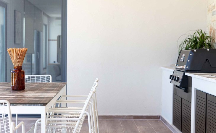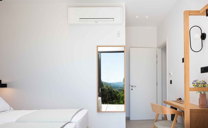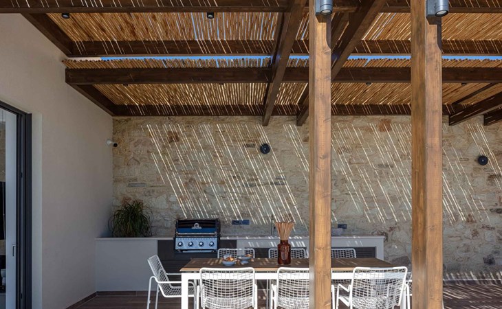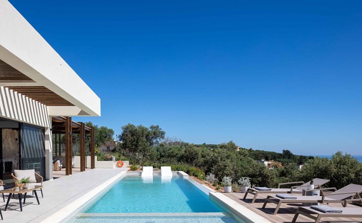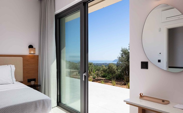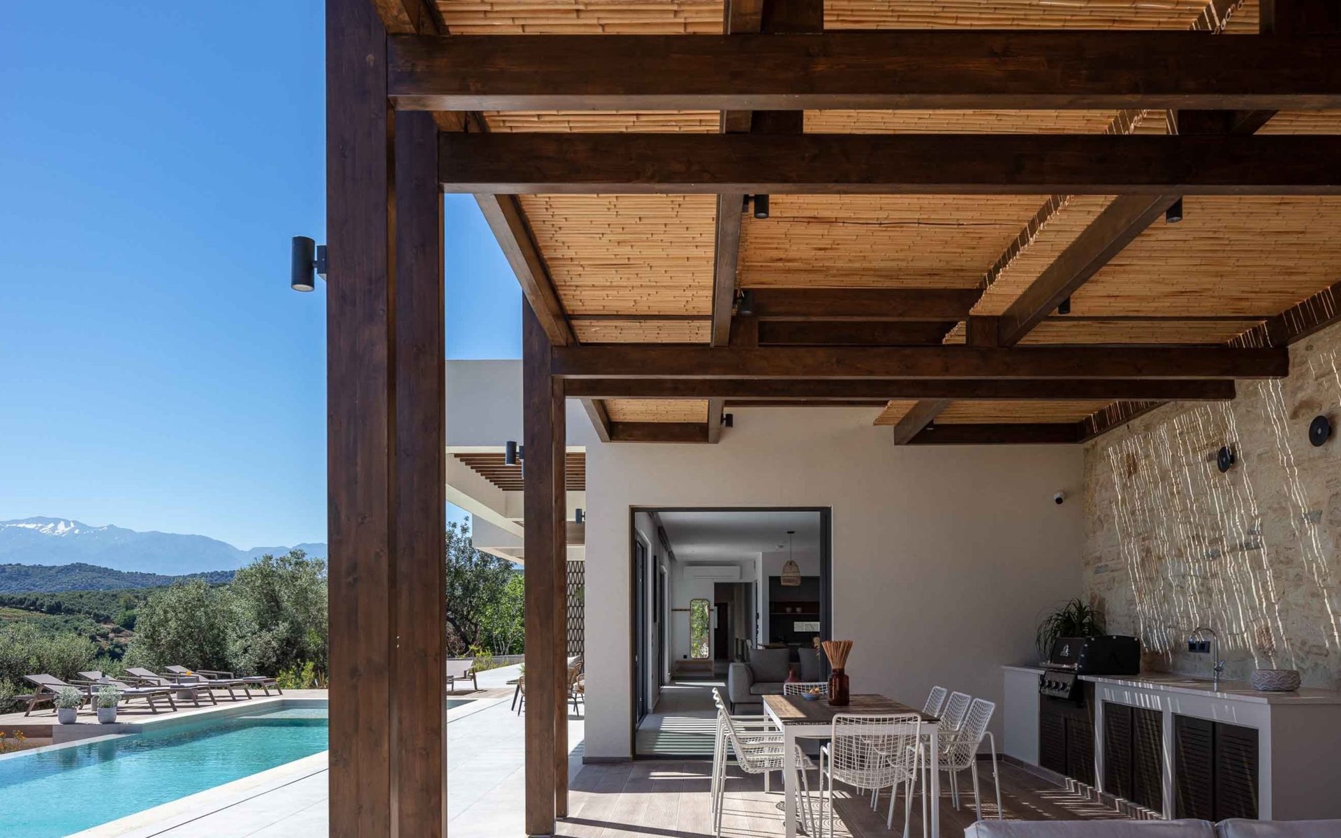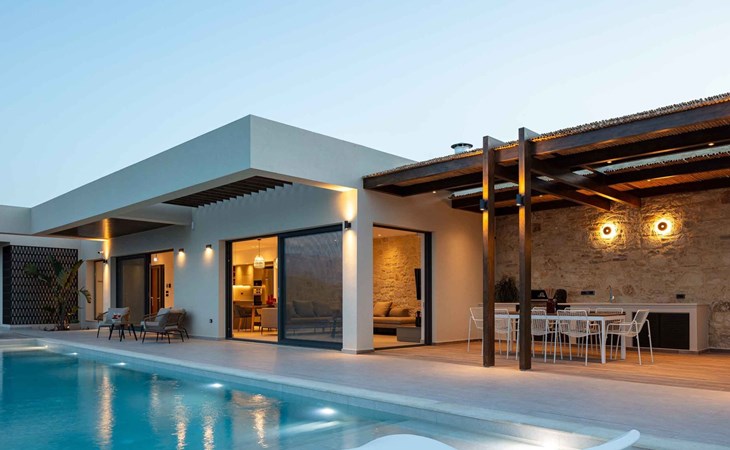 Xirokampi is a village that it is located about 20 kilometres from the Chania City Center. In this place, you could relax and enjoy the serenity that the area offers to the guests. The beach of Maleme is located 4 kilometres away from the villa and the close by facilities are located 4 kilometres away. The calmness and nature will absolutely make you feel tranquil.Villa Aglaea I An exclusive member of Holiways Villas.This hidden residence set within the area of Xirokambi, is a true gem and the perfect spot for guests who would like to relax away from the lights of a town! Spread over one floor, Villa Aglaea is designed to bring ease, offering everything needed for a comfy home base. A one-floor property equipped with all the necessary facilities, furnished with an exceptional selection of elements and its impeccable stylish decor will instantly wow you from the moment you step foot in it. On an envious spot with a panoramic view, you can make the most of your holiday and create an unforgettable experience, this is your unique well-being retreat break!Indoor facilitiesVilla Aglaea is set on one floor, covering 157 sq.m. in total and it accommodates 6 guests in its 3 ensuite bedrooms. Sleek, monochrome and practical, combining the wooden element with the earthy stone, Villa Aglaea invokes a sense of calm, something that makes staying here feel like a proper treat! Entering through its airy open-plan living space, you will be amazed by how the contemporary and fresh interior balances neutral tones, and hues of beige with textures creating the perfect spot for you and your loved ones. The lounge area wraps around the fireplace and the 55” Smart Satellite TV includes a sofa seating large enough for the entire family or friends. Unfolding across one floor, the large windows create a bright, airy living space waiting for you while in the meantime, a few steps further a fully equipped kitchen is found. The same area consists of three bedrooms, spread all over the left side of the villa, with en-suite bathrooms all with showers, adequate for you and your loved ones after a long day in the sun. Not far from this area, there is an extra communal WC, which is suitable for every guest here. There are two yoga mattresses for yoga lovers.Outdoor facilitiesIt's true bliss in a plot of 1087 sqm! You could not find one thing out of place here! A 40 sqm swimming pool with salt water awaits you and your kids soak up the Cretan sun in the lounge area or snuggle up in the sumptuous sofas. This is a fuss-free spot, where under the pergola in the BBQ area preparing the food could be as fun as eating it. The private terrace gives you the chance to host your own soirees in privacy, on special occasions for friends and family. The breathtaking views all over the area of Xirokambi, complete the idyllic scene and give you the chance to celebrate the beauty of Cretan living. Safe to say that there is a parking space for 3 cars.From 2024 there is a resilience fee to the climate crisis that is fifteen euros per night from April to October and four euros per night from November to March. This fee will be paid in cash upon arrival.Holiways Villas I Villa Management with a premium collection of Luxury properties!We aim to provide a high-quality luxury vacation for our guests with a 24/7 support service. We will be more than happy to assist you in creating an unforgettable vacation filled with joy and lasting memories!Holiways team is here for you, satisfying all your desires.You wish for it! We provide it!LayoutLiving area: 157 sqmPlot size: 1087 sqmGround SpaceLiving area with sofa, 55’’ Satellite Smart TV, fireplace, access to the pool terrace, sea viewFully equipped kitchen, and dining area for 8 guestsBedroom 1: King size bed (1.80x2.00), A/C, ensuite bathroom with shower, hairdryerBedroom 2: Twin size beds (0.80x2.00) that can be converted into a queen, A/C, ensuite bathroom with shower, hairdryerBedroom 3: King size bed (1.80x2.00), A/C, ensuite bathroom with shower, hairdryerCommunal WCOutdoor spacePrivate outdoor saltwater swimming pool (40 sqm and a max depth of 1.40m)Kids pool (7.2sqm and 0.80m depth)Sun loungersOutdoor showerBarbeque (gas) with a dining table for 8 guestsPrivate garden around the villaParking space for 3 carsXirokampi, ChaniaAirports/Ports:Chania Airport 37.7 km, Chania(Souda) Port 26.3 kmHeraklion Airport 158 km, Heraklion Port 158 kmGetting AroundCities: Chania 20.4 kmBeach: Maleme 4.3 kmBeach-Bar - Restaurant: 5kmSupermarket: 4.6 kmBakery: 4.5 kmPharmacy: 4.1 kmGas station: 3.7 kmATM: 4.6 km. 1042E60000380901