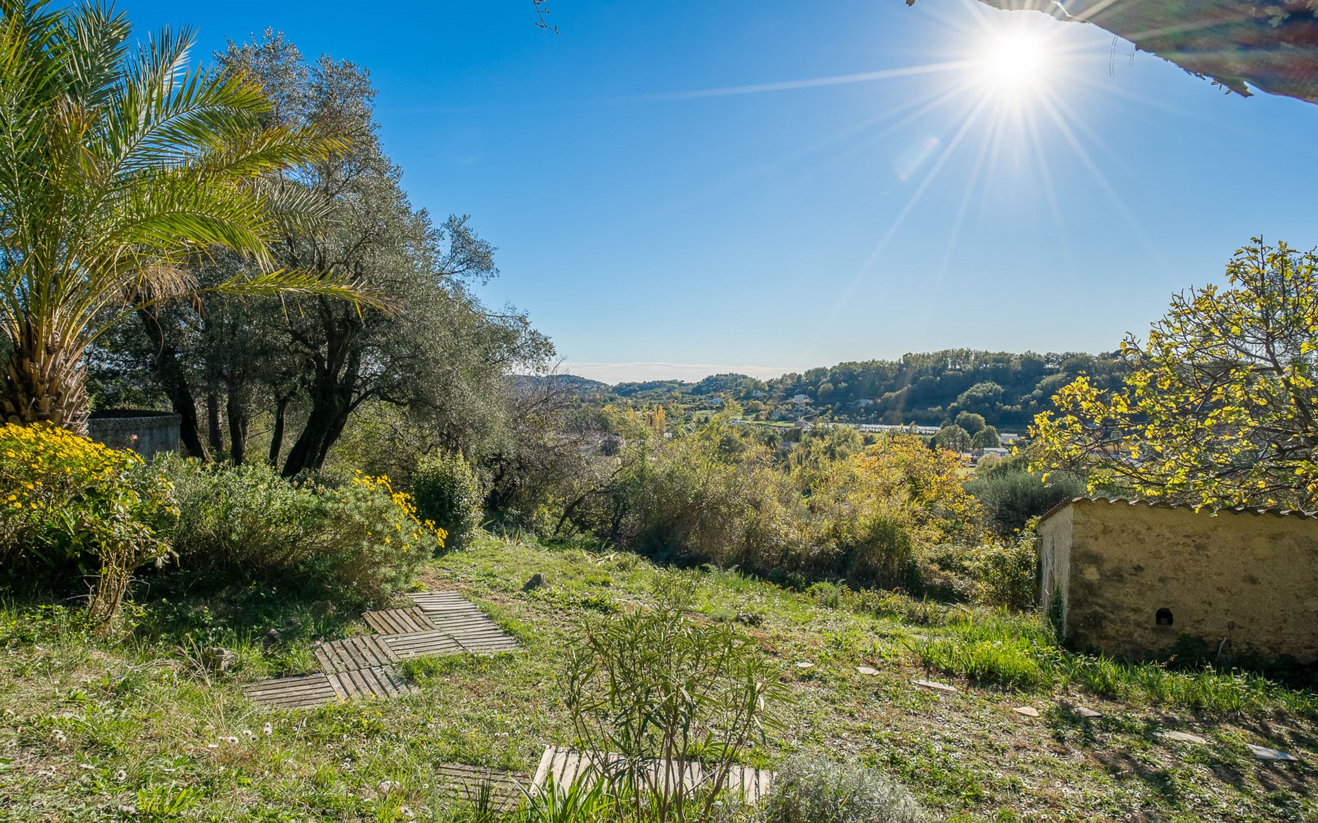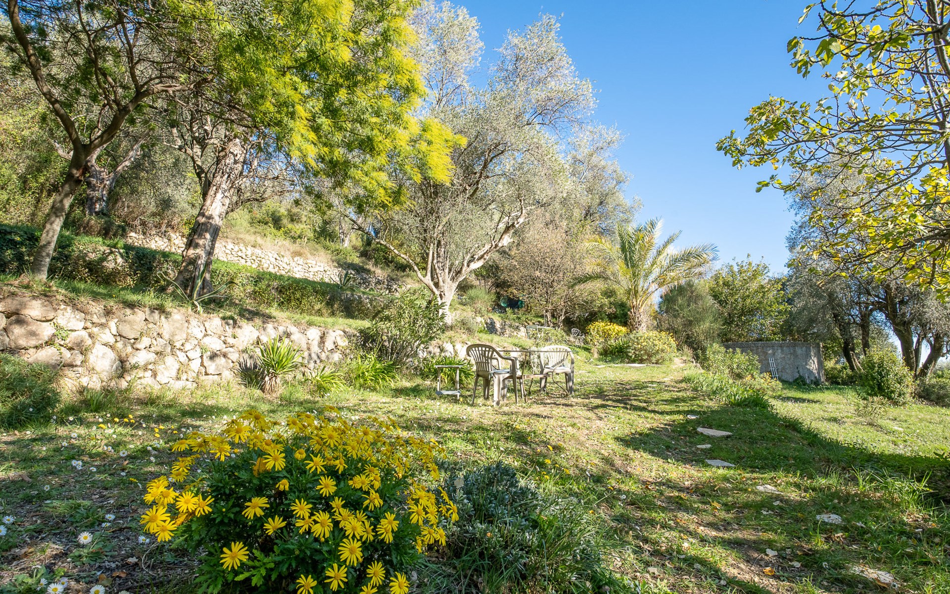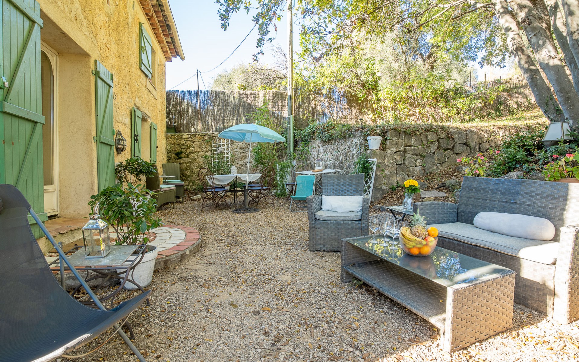 Eengezinswoning "Le Clermont". 3 km van het centrum van Châteauneuf, 9 km van het centrum van Grasse, aan een doodlopende weg, te midden van groen. Voor alleengebruik: terrein 1 ha, tuin op verschillende niveaus (niet omheind) met bomen, openluchtzwembad (verhoogd) (2 x 3 m, seizoensgebonden beschikbaarheid: 01.Jun. - 30.Sep.). Buitendouche. Trappenweg naar het huis. Parkeerplaats op het terrein. Supermarkt 3 km, bushalte 1.8 km. Eigenaar woont in apart huisgedeelte.