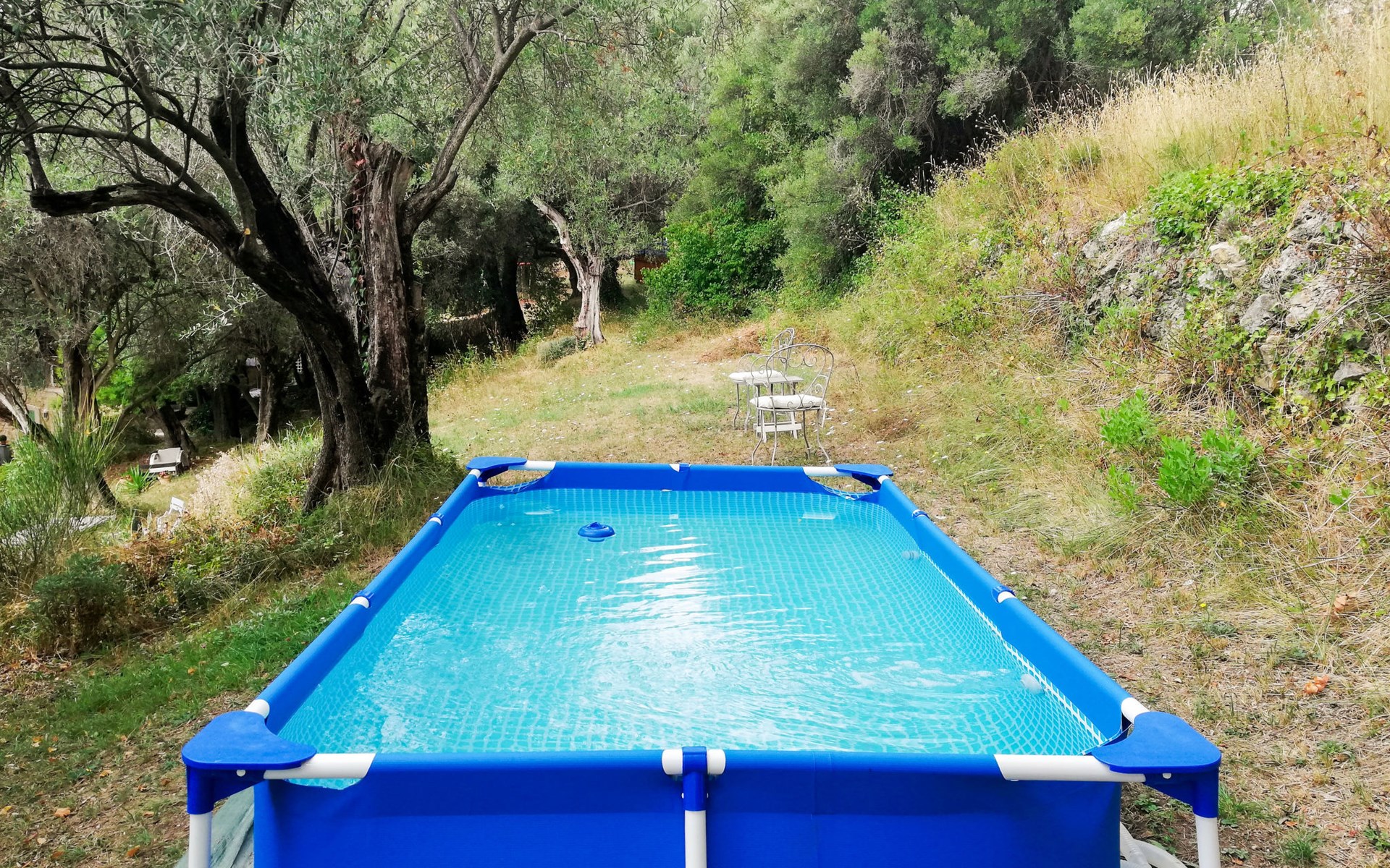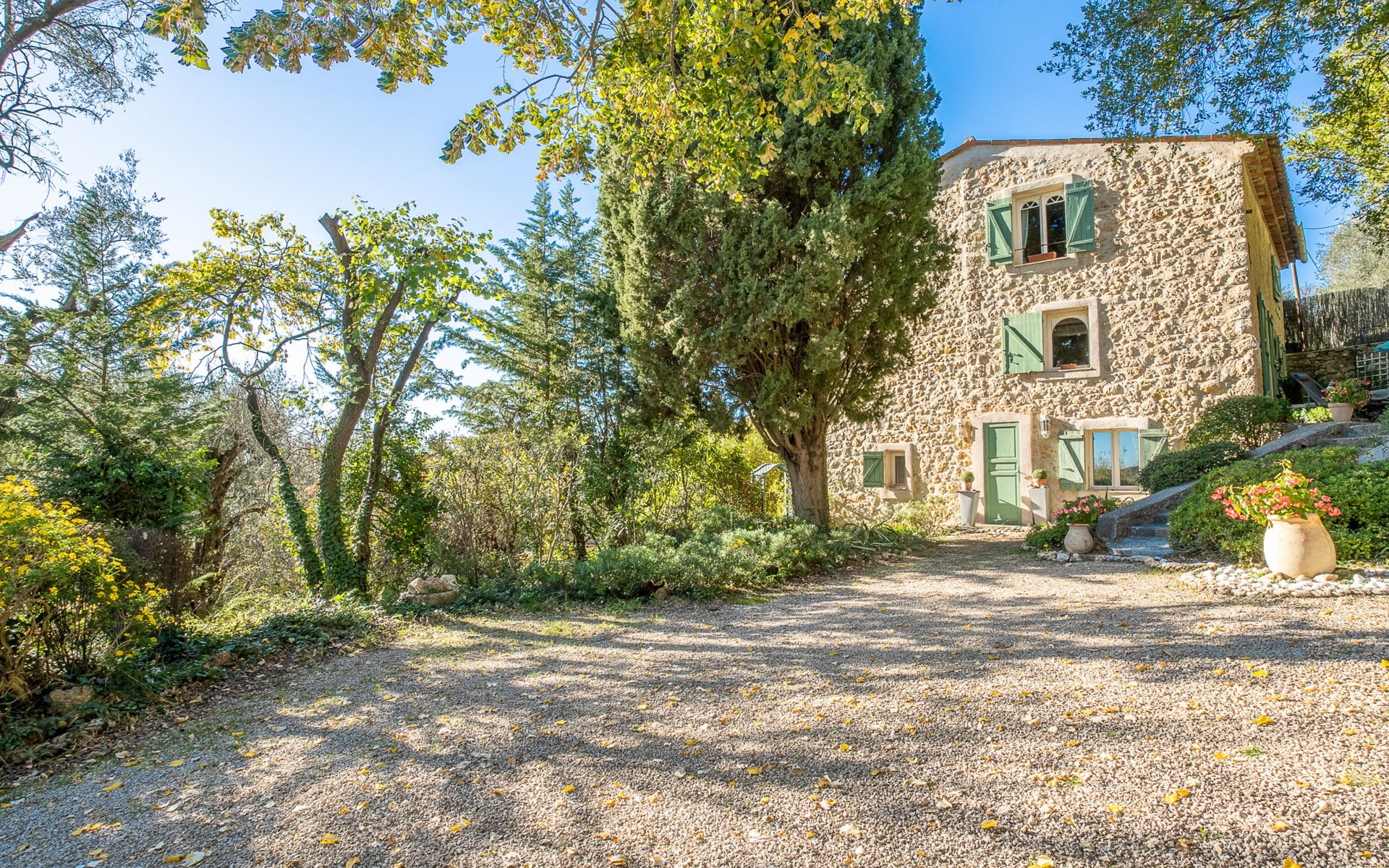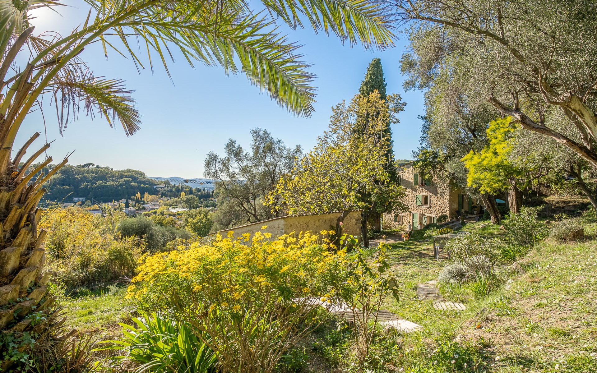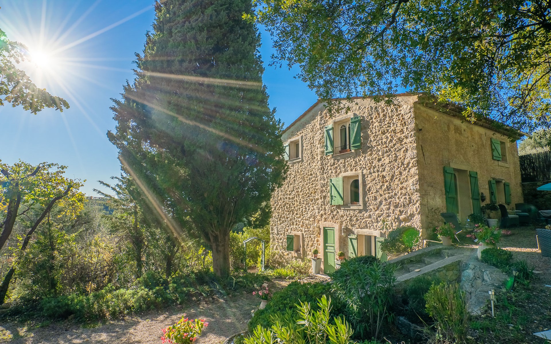Eengezinswoning "Le Clermont". 3 km van het centrum van Châteauneuf, 9 km van het centrum van Grasse, aan een doodlopende weg, te midden van groen. Voor alleengebruik: terrein 1 ha, tuin op verschillende niveaus (niet omheind) met bomen, openluchtzwembad (verhoogd) (2 x 3 m, seizoensgebonden beschikbaarheid: 01.Jun. - 30.Sep.). Buitendouche. Trappenweg naar het huis. Parkeerplaats op het terrein. Supermarkt 3 km, bushalte 1.8 km. Eigenaar woont in apart huisgedeelte.