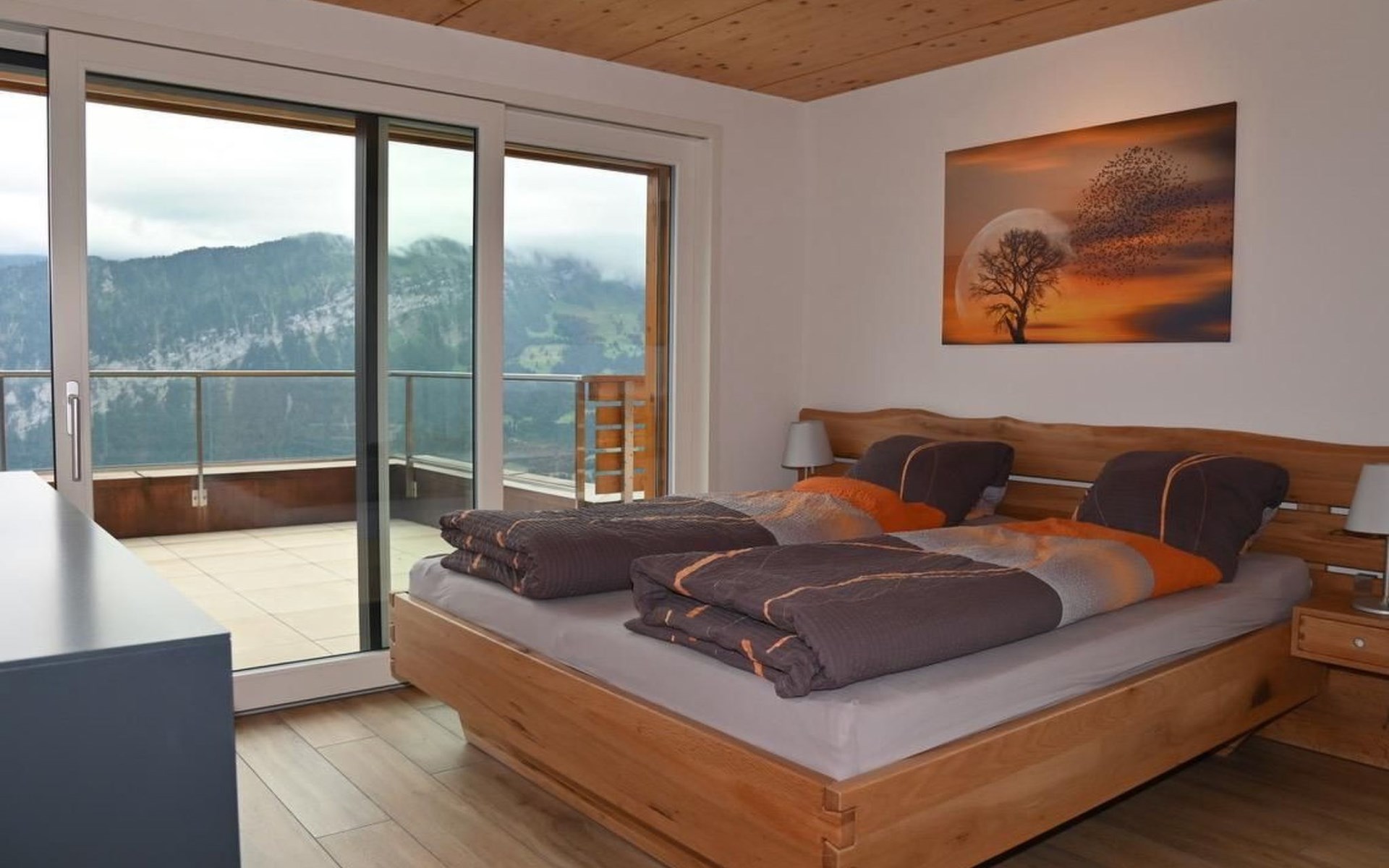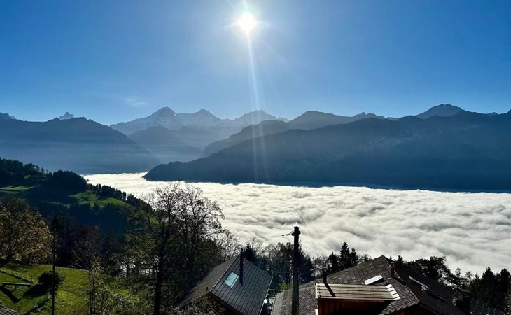 The apartment is non-smoking and not suitable for small children. Pets are not allowed.Excursion possibilities: Grindelwald, Jungfrau Top of Europe, Lauterbrunnen, Brienz, Brienzer RothornOther bedroom furniture (Bedroom1): Cupboard, Side Board, bed-side tablesNearby sports facilities: Mountain climbing, Ice skating, Golf course, Climbing, Mountainbiking, Paragliding, Bike tours, Rafting, Riding possibilities, Toboggen, Rowing, Skiing (alpin), Cross-country skiing, Diving, Tennis, Water skiing, SailingLocation description: Idyllic mountain village situated high above lake Thun and with great views to the Bernese Alps with the world-famous mountain tops of Eiger, Mönch and Jungfrau.