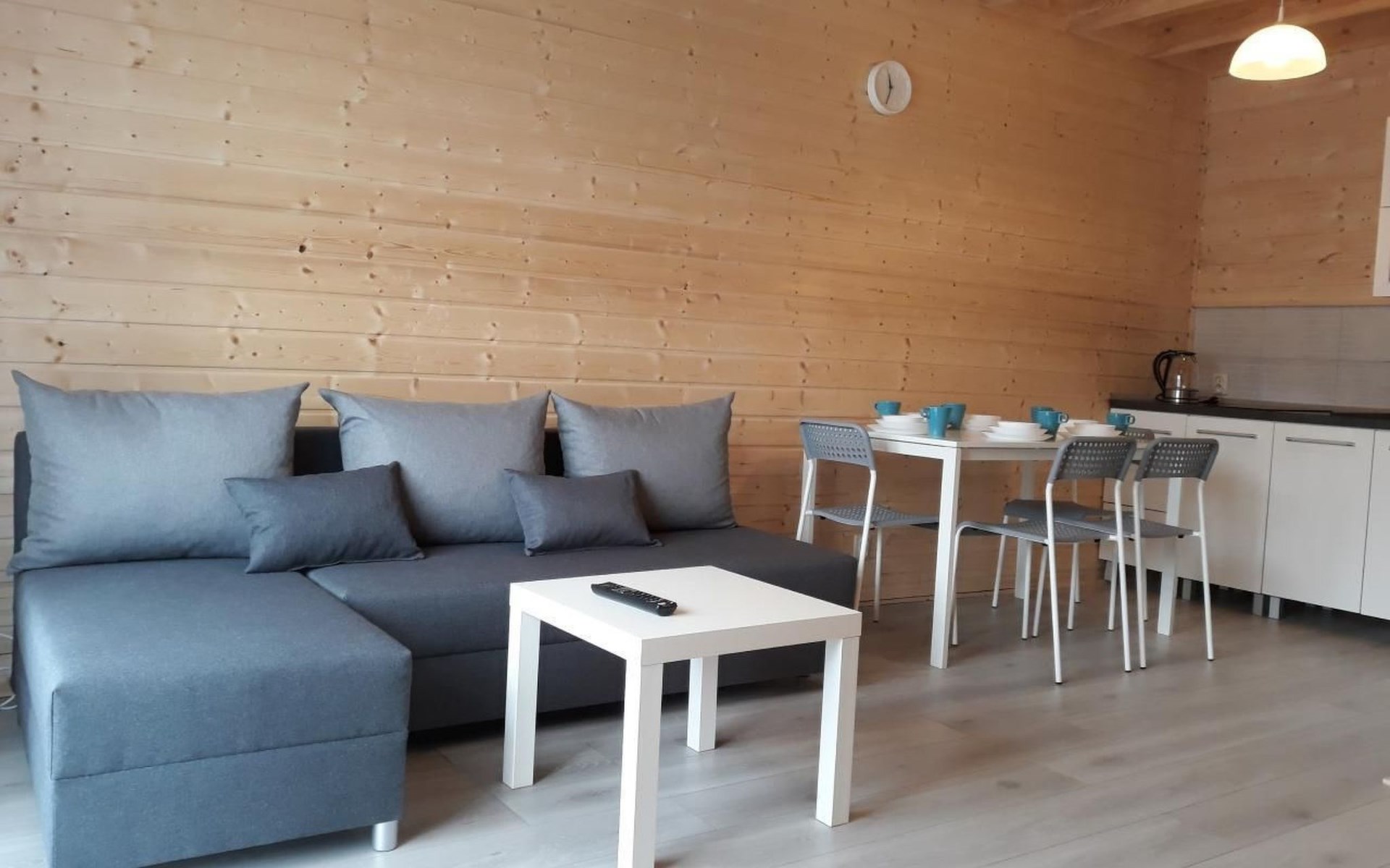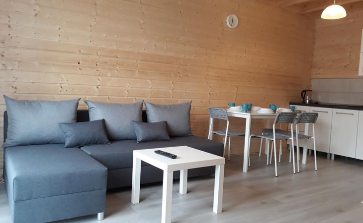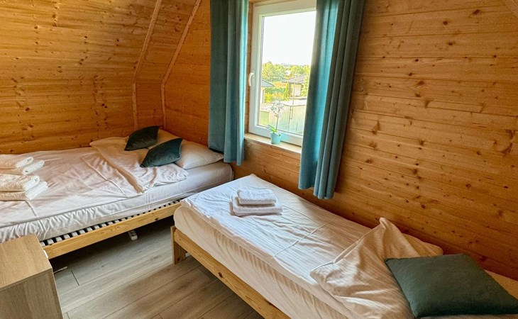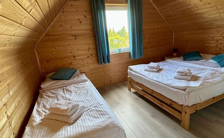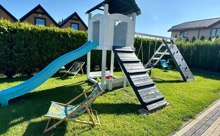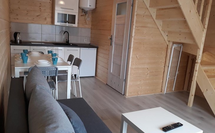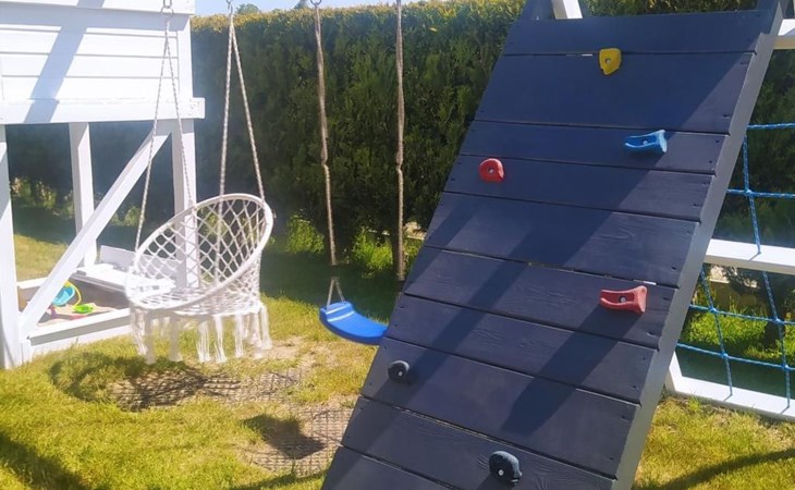 Op de begane grond, kamer met kitchenette: koelkast, potten, borden, waterkoker, koffiezetapparaat, 2-pits kookplaat, LCD TV, WI - FI, satelliet TV. Badkamer: douchecabine, wastafel, wc, haardroger, vloeibare zeep.Op de eerste verdieping twee aparte, afsluitbare slaapkamers. De grootste heeft een tweepersoonsbed (160 x 200 cm) en een eenpersoonsbed (80 x 200 cm), kledingkast en 2 nachtkastjes met lamp. De kleinere heeft een tweepersoonsbed (160 x 200 cm) en een eenpersoonsbed (80 x 200 cm), een ladekast met 3 laden en een nachtkastje met lamp.Na het openen van een hoek in de kamer op de begane grond, zijn twee extra bedden mogelijk.Het huis is uitgerust met een ligstoel, een scherm en een strandkar.Op afspraak zorgen wij voor een kinderstoel voor het voeden van kinderen, een reisbedje en een veiligheidshekje voor de trap.Ter plaatse beschikbaar: beddengoed max. 6 stuksAanwezig ter plaatse: handdoeken max. 6 stuks