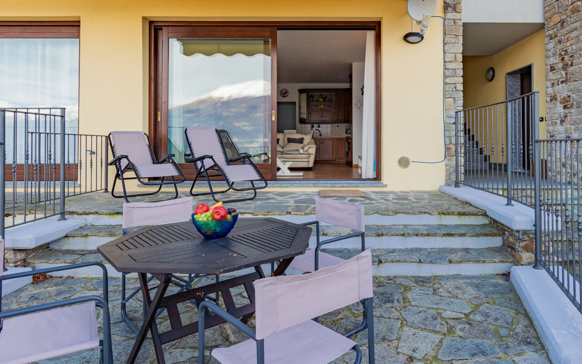 Appartementencomplex "Belvedere". In het gehucht Biosio, 2 km van het centrum van Bellano, zonnige, verhoogde ligging tegen een helling, 2 km van het meer, aan een doodlopende weg. Trappenweg naar het huis. Eigen garage. Winkel 2 km, levensmiddelenwinkel 2 km, bushalte 450 m, treinstation "Bellano" 2.5 km, veerboot "Varenna - Bellagio - Menaggio" 7 km, kiezelstrand 2.5 km, openluchtzwembad 2 km. Attracties in de buurt: Varenna 6 km, Mandello del Lario 17 km. Auto noodzakelijk.