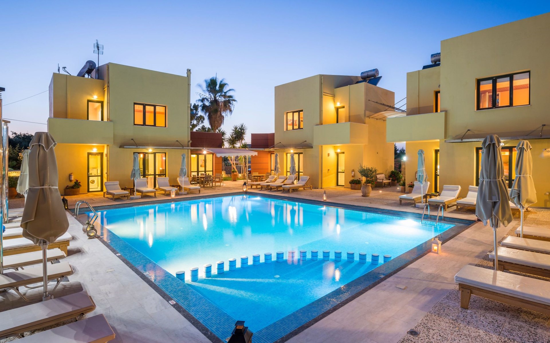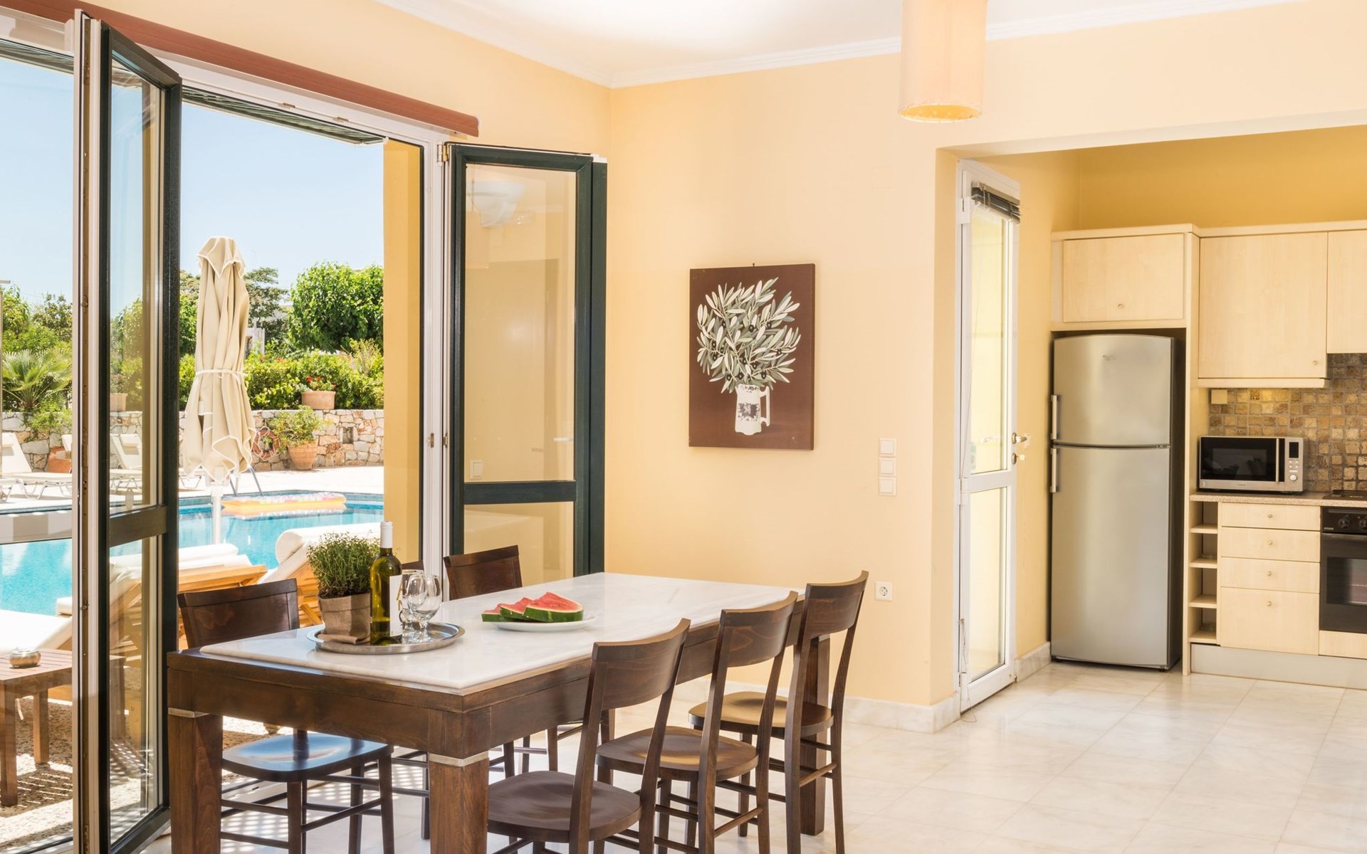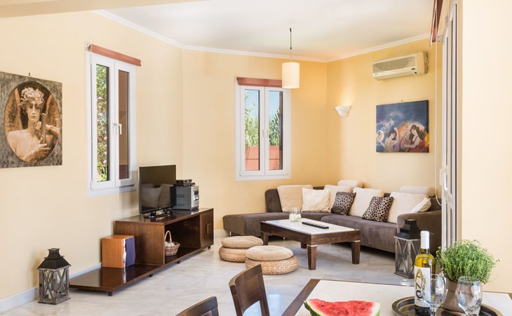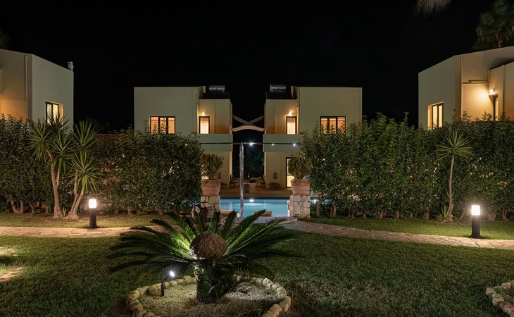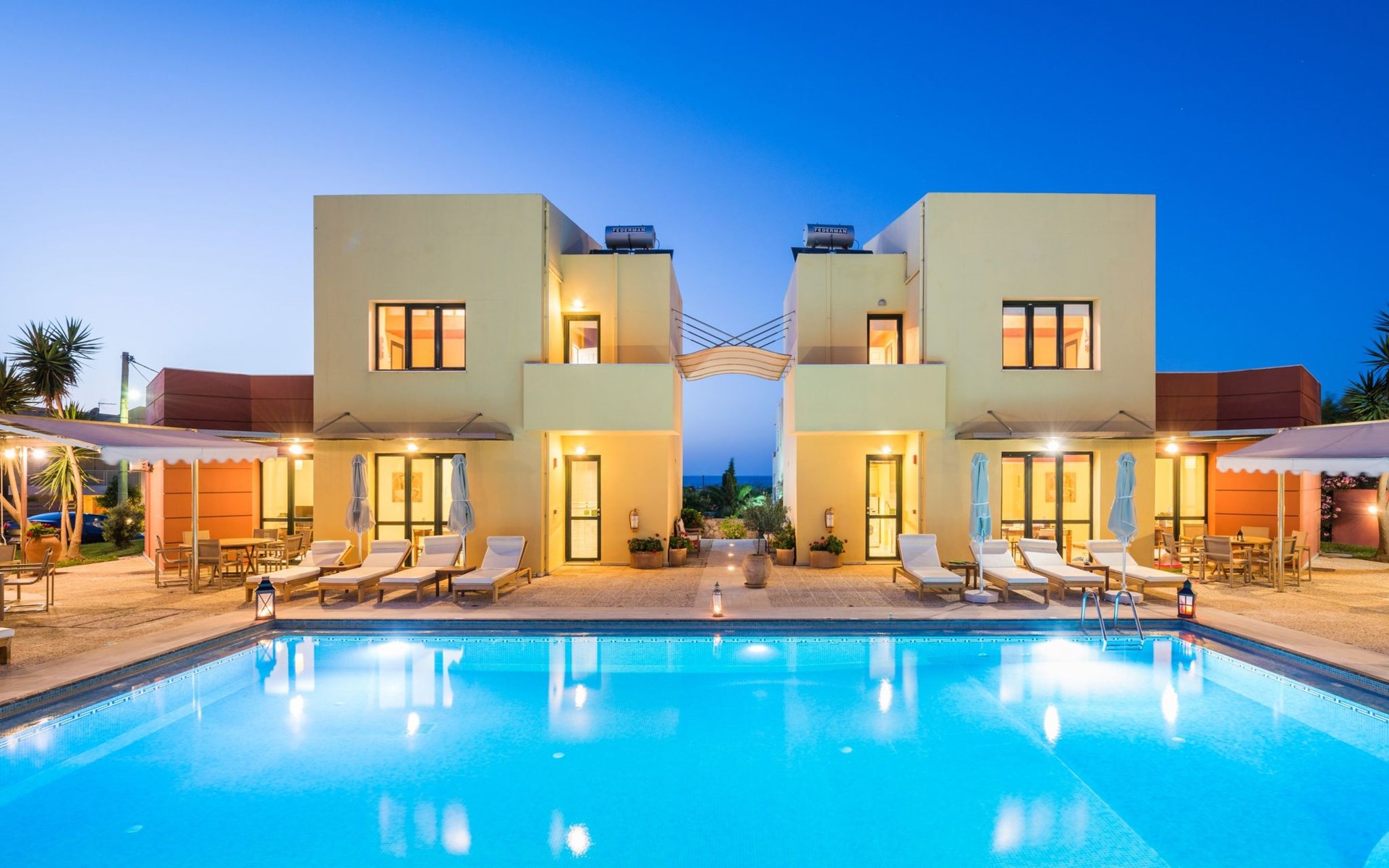 3 Villas around a pool, in a villas complex of 4 villas .Daphnis Villas is located in the area of Pyrgos Psilonerou, Crete, after a 15-20 minutes driving, 15 km West of the city of Chania.In a 200m distance from the pebble-sandy beach, you can enjoy sunbathing which is fully organized with umbrellas, sun loungers, coffee, drinks and food are also available. The sea around the beach is well-known for its crystal clear water.You can use Daphnis Villas as a base for visiting major Cretan attractions.Easy access by car and public transport to the city and all the important parts of the county. You can also walk or bike on a beautiful path across the beach and if you wish you can walk on a hill full of olive trees near the villas. Distances:200m from the beach100m from a mini market, pharmacy, bus stop200m from a bakery1.5 km from Maleme where you can find a fully-organized beach, more tavernas, bar, shops, mini markets, ATM and Super Market.15 km from the city of Chania35 km from the Chania airport (CHQ)33 km from Falassarna57 km from Elafonisi30 km from Kissamos75 km from the city of Rethymno153 km from the city of HeraklionCommon outdoor pool 96 sqm, sun terrace, loungers, parasols Children's pool, jacuzzi Sauna (fee payable), hammam (fee payable). Bicycles, gym, table tennis. Garden, barbecue.Playground3 Villas around a pool, in a villas complex of 4 villas , close to beach (200m)Ideal for big families/group«Villa 1» ,«Villa 2» and«Villa 3» are three of the four villas at Daphnis Villas, will ensure that your stay in Crete will become, in itself, an unforgettable experience.Daphnis Villas consists of 4 villas, Chloe, Ioli, Fedra and Danae built around a 96 sq. m swimming pool, 200 m. from the beach, with a mountain and sea view. Each villa is suitable for 6 people and it is composed of 3 bedrooms and 2 fully-equipped bathrooms. The 3rd bedroom is located at the loft. The loft is directly accessed from the first floor with no door in between.There is a travel bed and highchair for small children in each villa, please reserve.Initially, Daphnis Villas was built in order to provide you a unique stay experience. Each villa is 110 sq. m. in size, divided into three floors.GROUND LEVELAs we are entering each villa -from the independent entrance at the ground level- we come across to a large, fully-equipped living room. The living room's floor is covered with the highest quality of marble tiles.Next to the living room, there is the dining area, with a lovely view to the swimming pool. At the fully-equipped kitchen, you can prepare any specialty you desire.On the ground floor, there is also a bathroom .Each Villa at its ground floor has its own space next to the swimming room with sun loungers, an umbrella, a coffee table and a 6-piece dining set.FIRST FLOORAs we are taking the marble staircase up to the first floor, we can see two bedrooms and a bathroom.The master bedroom has a queen size bed, a spacious closet, and a TV set.The other bedroom has two twin size beds, a closet, and a beautiful balcony view down to the swimming pool.The bathroom is marble lined with a large bathtub. All bathrooms feature complementary toiletries.On the first floor, there is a large veranda consisting of a 6-piece seating set. Basically, it is comprised of a second outdoor living room set, with a panoramic view of the sea and the Lefka Ori.SECOND FLOOROn the second level, there is a cozy loft which contains two twin size beds and a closet.The loft is directly accessed from the first floor with no door inbetween.The hardwood floor of every bedroom is made of the highest quality of oak wood.The Room Cleaning Service is provided twice a week and the bed linens/towels change twice per week as well.Also, each villa has its own individual parking space.The large centered swimming pool (96 sq.m) also consists of a Jacuzzi and a tot pool for children.The outdoor area of every villa offers a room for relaxation as well as for other activities.In the basement complex, there is a mini fitness center, which also has a sauna, steam bath shower (additional charges will apply) and a mini gym.At the complex Southern side, there is a beautiful 600 sq. m grass garden where we can find a children's playground and a table tennis.There is also a specially designed BBQ area with outdoor furniture.Amenities:FREE WIFIAvailable bikes ( 10 or more) upon requestA/C in all rooms2 Satellite TV setsCD player / RadioDVD playerSafe boxPrivate ParkingMini Gym (Shared)Jacuzzi (Shared / by the pool)Sauna (Shared / Additional charges will apply)Steam Bath (Shared / Additional charges will apply)Children's playground/table tennis (Shared)BBQ set (Shared)Fully-Equipped kitchenRefrigeratorStoveToasterCoffee-makerMicrowaveWater kettleDishwasherWashing machineIron device and Iron boardChild seatJunior bedLinens and towelsPersonal Care/ToiletriesHair dryerIndoor dining set, in front of the pool and the verandaRent-A-Car InformationPhone for outgoing calls (Additional charges will apply)Welcome Mineral Water and a bottle of wineFirst Aid KitNote:Τhe third bedroom in each villa, is located at the loft .The loft is directly accessed from the first floor with no door inbetween. 1045007