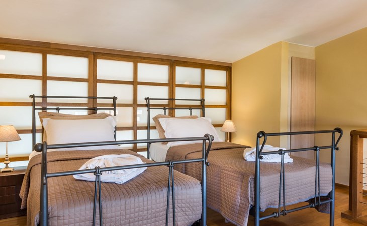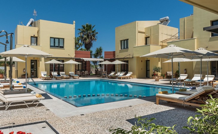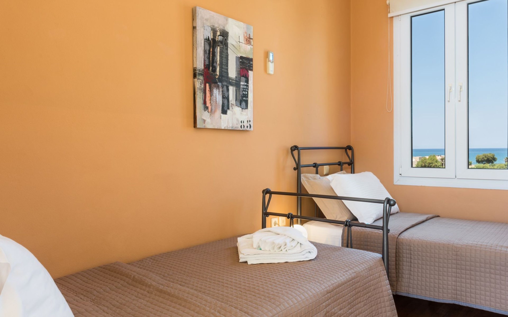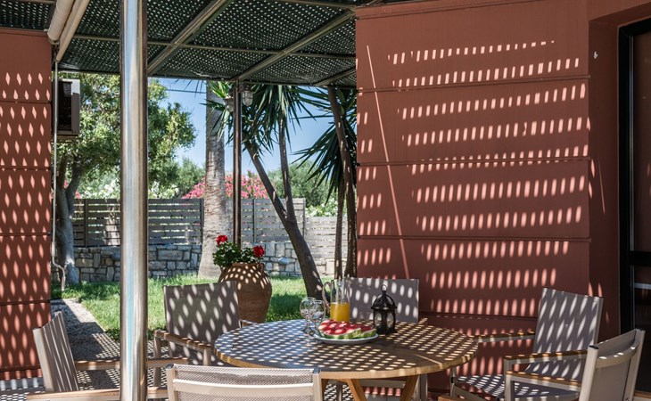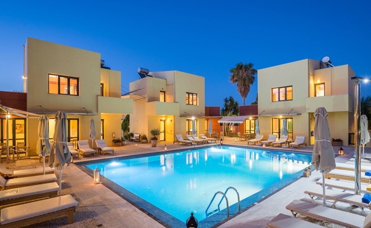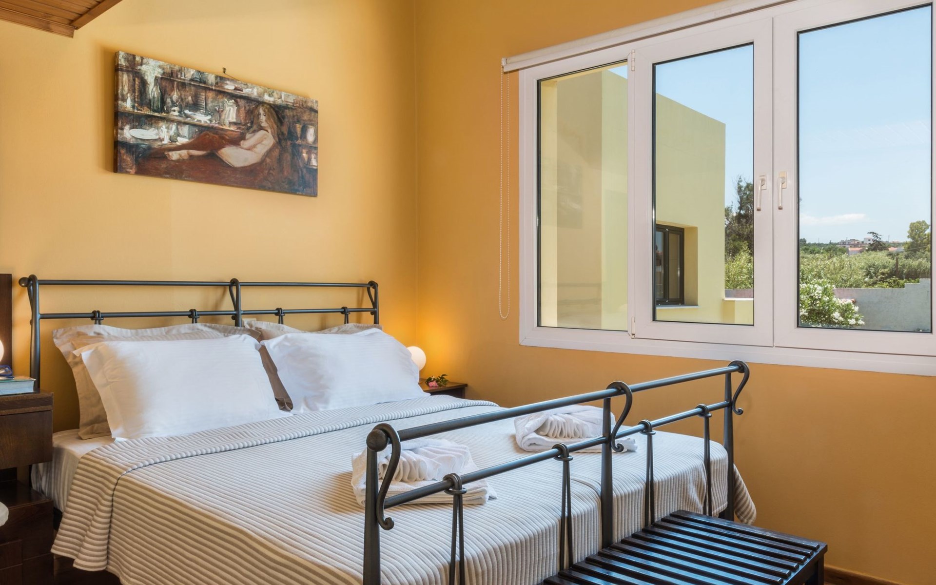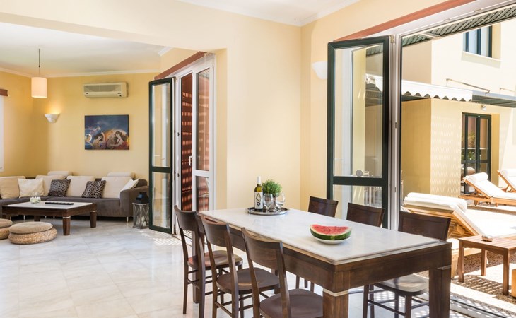 3 Villas around a pool, in a villas complex of 4 villas .Daphnis Villas is located in the area of Pyrgos Psilonerou, Crete, after a 15-20 minutes driving, 15 km West of the city of Chania.In a 200m distance from the pebble-sandy beach, you can enjoy sunbathing which is fully organized with umbrellas, sun loungers, coffee, drinks and food are also available. The sea around the beach is well-known for its crystal clear water.You can use Daphnis Villas as a base for visiting major Cretan attractions.Easy access by car and public transport to the city and all the important parts of the county. You can also walk or bike on a beautiful path across the beach and if you wish you can walk on a hill full of olive trees near the villas. Distances:200m from the beach100m from a mini market, pharmacy, bus stop200m from a bakery1.5 km from Maleme where you can find a fully-organized beach, more tavernas, bar, shops, mini markets, ATM and Super Market.15 km from the city of Chania35 km from the Chania airport (CHQ)33 km from Falassarna57 km from Elafonisi30 km from Kissamos75 km from the city of Rethymno153 km from the city of HeraklionCommon outdoor pool 96 sqm, sun terrace, loungers, parasols Children's pool, jacuzzi Sauna (fee payable), hammam (fee payable). Bicycles, gym, table tennis. Garden, barbecue.Playground3 Villas around a pool, in a villas complex of 4 villas , close to beach (200m)Ideal for big families/group«Villa 1» ,«Villa 2» and«Villa 3» are three of the four villas at Daphnis Villas, will ensure that your stay in Crete will become, in itself, an unforgettable experience.Daphnis Villas consists of 4 villas, Chloe, Ioli, Fedra and Danae built around a 96 sq. m swimming pool, 200 m. from the beach, with a mountain and sea view. Each villa is suitable for 6 people and it is composed of 3 bedrooms and 2 fully-equipped bathrooms. The 3rd bedroom is located at the loft. The loft is directly accessed from the first floor with no door in between.There is a travel bed and highchair for small children in each villa, please reserve.Initially, Daphnis Villas was built in order to provide you a unique stay experience. Each villa is 110 sq. m. in size, divided into three floors.GROUND LEVELAs we are entering each villa -from the independent entrance at the ground level- we come across to a large, fully-equipped living room. The living room's floor is covered with the highest quality of marble tiles.Next to the living room, there is the dining area, with a lovely view to the swimming pool. At the fully-equipped kitchen, you can prepare any specialty you desire.On the ground floor, there is also a bathroom .Each Villa at its ground floor has its own space next to the swimming room with sun loungers, an umbrella, a coffee table and a 6-piece dining set.FIRST FLOORAs we are taking the marble staircase up to the first floor, we can see two bedrooms and a bathroom.The master bedroom has a queen size bed, a spacious closet, and a TV set.The other bedroom has two twin size beds, a closet, and a beautiful balcony view down to the swimming pool.The bathroom is marble lined with a large bathtub. All bathrooms feature complementary toiletries.On the first floor, there is a large veranda consisting of a 6-piece seating set. Basically, it is comprised of a second outdoor living room set, with a panoramic view of the sea and the Lefka Ori.SECOND FLOOROn the second level, there is a cozy loft which contains two twin size beds and a closet.The loft is directly accessed from the first floor with no door inbetween.The hardwood floor of every bedroom is made of the highest quality of oak wood.The Room Cleaning Service is provided twice a week and the bed linens/towels change twice per week as well.Also, each villa has its own individual parking space.The large centered swimming pool (96 sq.m) also consists of a Jacuzzi and a tot pool for children.The outdoor area of every villa offers a room for relaxation as well as for other activities.In the basement complex, there is a mini fitness center, which also has a sauna, steam bath shower (additional charges will apply) and a mini gym.At the complex Southern side, there is a beautiful 600 sq. m grass garden where we can find a children's playground and a table tennis.There is also a specially designed BBQ area with outdoor furniture.Amenities:FREE WIFIAvailable bikes ( 10 or more) upon requestA/C in all rooms2 Satellite TV setsCD player / RadioDVD playerSafe boxPrivate ParkingMini Gym (Shared)Jacuzzi (Shared / by the pool)Sauna (Shared / Additional charges will apply)Steam Bath (Shared / Additional charges will apply)Children's playground/table tennis (Shared)BBQ set (Shared)Fully-Equipped kitchenRefrigeratorStoveToasterCoffee-makerMicrowaveWater kettleDishwasherWashing machineIron device and Iron boardChild seatJunior bedLinens and towelsPersonal Care/ToiletriesHair dryerIndoor dining set, in front of the pool and the verandaRent-A-Car InformationPhone for outgoing calls (Additional charges will apply)Welcome Mineral Water and a bottle of wineFirst Aid KitNote:Τhe third bedroom in each villa, is located at the loft .The loft is directly accessed from the first floor with no door inbetween. 1045007