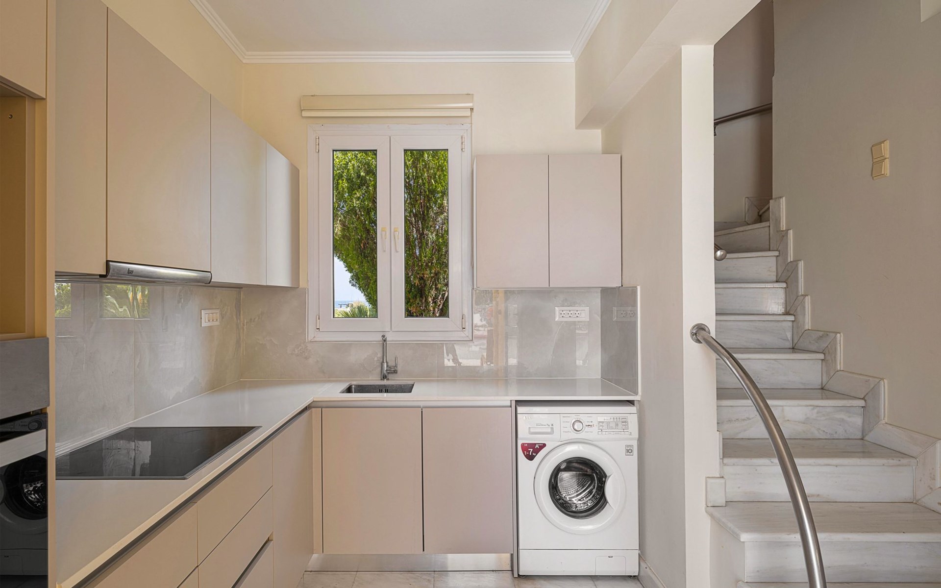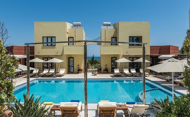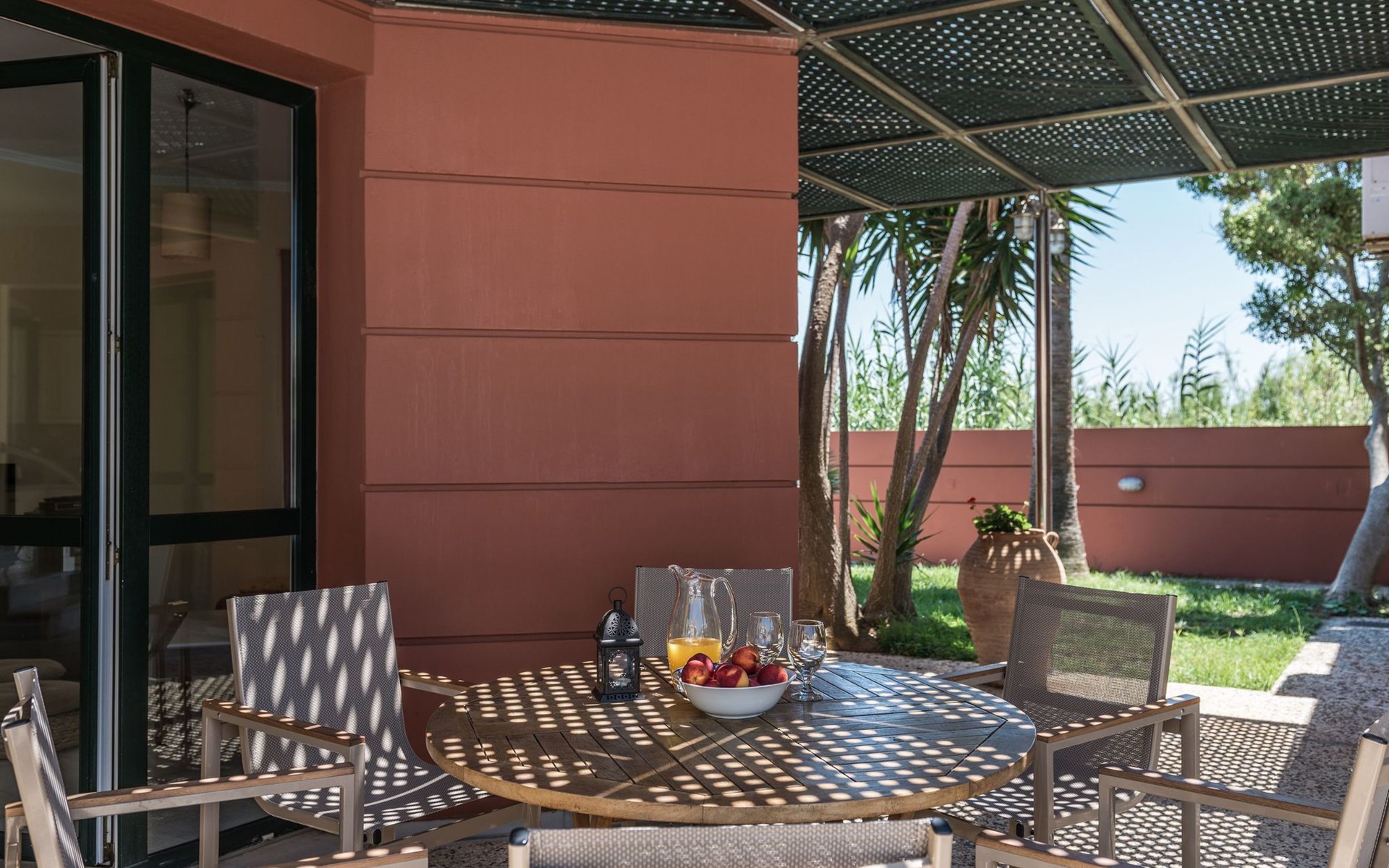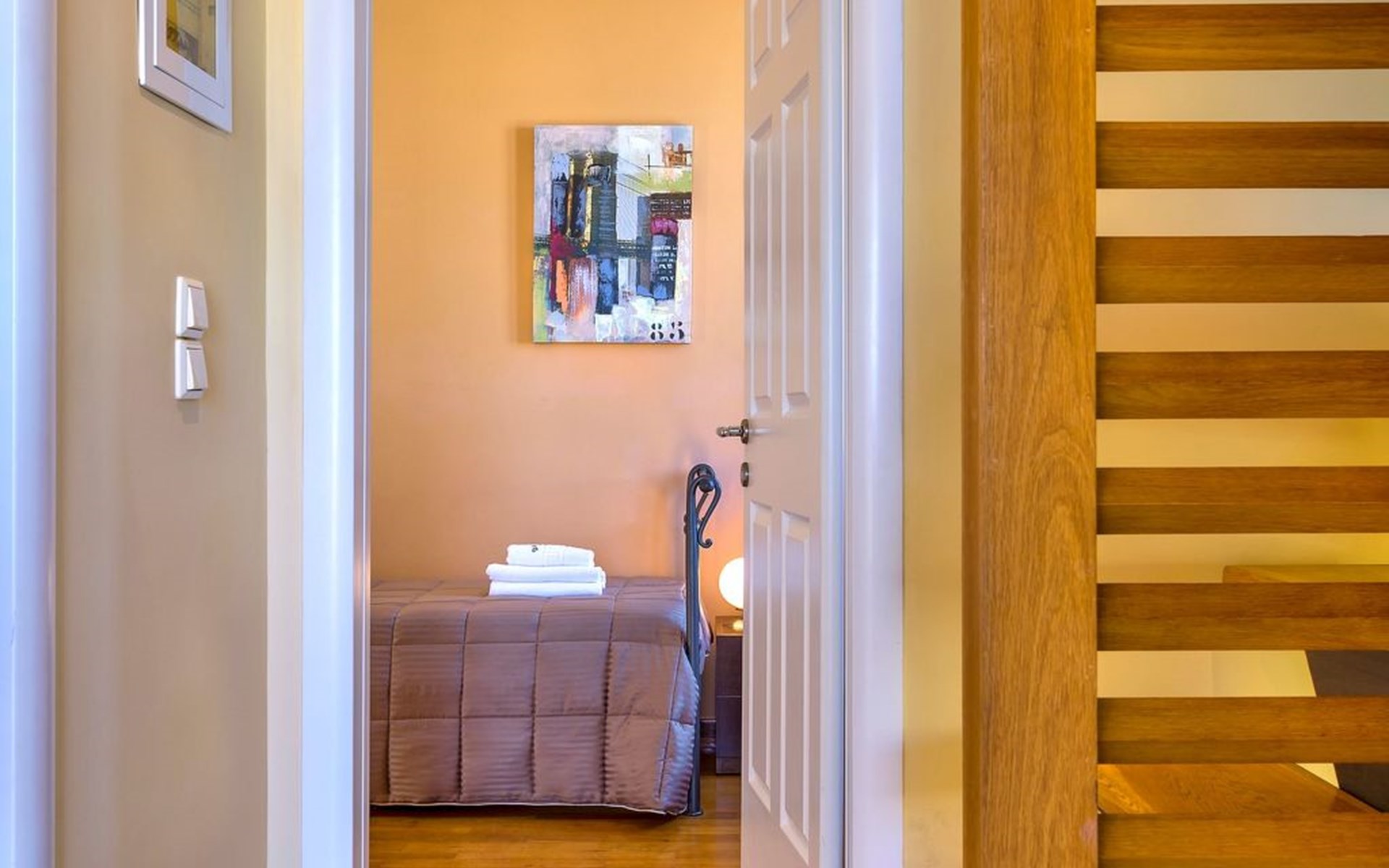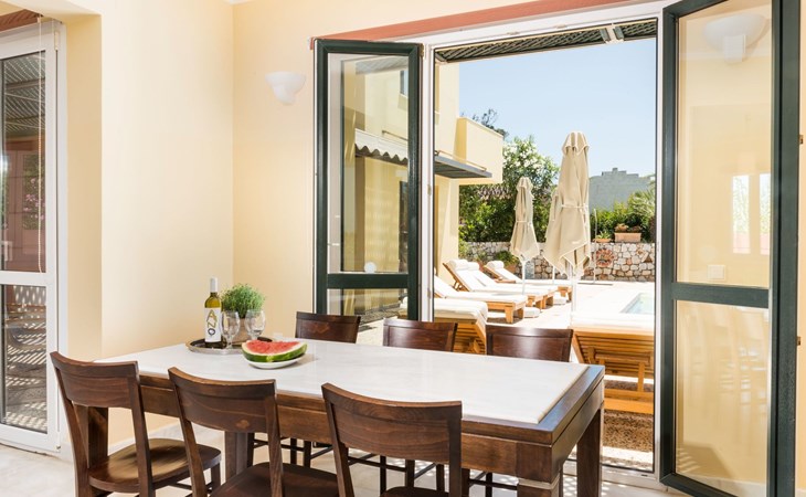 3 Villas around a pool, in a villas complex of 4 villas .Daphnis Villas is located in the area of Pyrgos Psilonerou, Crete, after a 15-20 minutes driving, 15 km West of the city of Chania.In a 200m distance from the pebble-sandy beach, you can enjoy sunbathing which is fully organized with umbrellas, sun loungers, coffee, drinks and food are also available. The sea around the beach is well-known for its crystal clear water.You can use Daphnis Villas as a base for visiting major Cretan attractions.Easy access by car and public transport to the city and all the important parts of the county. You can also walk or bike on a beautiful path across the beach and if you wish you can walk on a hill full of olive trees near the villas. Distances:200m from the beach100m from a mini market, pharmacy, bus stop200m from a bakery1.5 km from Maleme where you can find a fully-organized beach, more tavernas, bar, shops, mini markets, ATM and Super Market.15 km from the city of Chania35 km from the Chania airport (CHQ)33 km from Falassarna57 km from Elafonisi30 km from Kissamos75 km from the city of Rethymno153 km from the city of HeraklionCommon outdoor pool 96 sqm, sun terrace, loungers, parasols Children's pool, jacuzzi Sauna (fee payable), hammam (fee payable). Bicycles, gym, table tennis. Garden, barbecue.Playground3 Villas around a pool, in a villas complex of 4 villas , close to beach (200m)Ideal for big families/group«Villa 1» ,«Villa 2» and«Villa 3» are three of the four villas at Daphnis Villas, will ensure that your stay in Crete will become, in itself, an unforgettable experience.Daphnis Villas consists of 4 villas, Chloe, Ioli, Fedra and Danae built around a 96 sq. m swimming pool, 200 m. from the beach, with a mountain and sea view. Each villa is suitable for 6 people and it is composed of 3 bedrooms and 2 fully-equipped bathrooms. The 3rd bedroom is located at the loft. The loft is directly accessed from the first floor with no door in between.There is a travel bed and highchair for small children in each villa, please reserve.Initially, Daphnis Villas was built in order to provide you a unique stay experience. Each villa is 110 sq. m. in size, divided into three floors.GROUND LEVELAs we are entering each villa -from the independent entrance at the ground level- we come across to a large, fully-equipped living room. The living room's floor is covered with the highest quality of marble tiles.Next to the living room, there is the dining area, with a lovely view to the swimming pool. At the fully-equipped kitchen, you can prepare any specialty you desire.On the ground floor, there is also a bathroom .Each Villa at its ground floor has its own space next to the swimming room with sun loungers, an umbrella, a coffee table and a 6-piece dining set.FIRST FLOORAs we are taking the marble staircase up to the first floor, we can see two bedrooms and a bathroom.The master bedroom has a queen size bed, a spacious closet, and a TV set.The other bedroom has two twin size beds, a closet, and a beautiful balcony view down to the swimming pool.The bathroom is marble lined with a large bathtub. All bathrooms feature complementary toiletries.On the first floor, there is a large veranda consisting of a 6-piece seating set. Basically, it is comprised of a second outdoor living room set, with a panoramic view of the sea and the Lefka Ori.SECOND FLOOROn the second level, there is a cozy loft which contains two twin size beds and a closet.The loft is directly accessed from the first floor with no door inbetween.The hardwood floor of every bedroom is made of the highest quality of oak wood.The Room Cleaning Service is provided twice a week and the bed linens/towels change twice per week as well.Also, each villa has its own individual parking space.The large centered swimming pool (96 sq.m) also consists of a Jacuzzi and a tot pool for children.The outdoor area of every villa offers a room for relaxation as well as for other activities.In the basement complex, there is a mini fitness center, which also has a sauna, steam bath shower (additional charges will apply) and a mini gym.At the complex Southern side, there is a beautiful 600 sq. m grass garden where we can find a children's playground and a table tennis.There is also a specially designed BBQ area with outdoor furniture.Amenities:FREE WIFIAvailable bikes ( 10 or more) upon requestA/C in all rooms2 Satellite TV setsCD player / RadioDVD playerSafe boxPrivate ParkingMini Gym (Shared)Jacuzzi (Shared / by the pool)Sauna (Shared / Additional charges will apply)Steam Bath (Shared / Additional charges will apply)Children's playground/table tennis (Shared)BBQ set (Shared)Fully-Equipped kitchenRefrigeratorStoveToasterCoffee-makerMicrowaveWater kettleDishwasherWashing machineIron device and Iron boardChild seatJunior bedLinens and towelsPersonal Care/ToiletriesHair dryerIndoor dining set, in front of the pool and the verandaRent-A-Car InformationPhone for outgoing calls (Additional charges will apply)Welcome Mineral Water and a bottle of wineFirst Aid KitNote:Τhe third bedroom in each villa, is located at the loft .The loft is directly accessed from the first floor with no door inbetween. 1045007