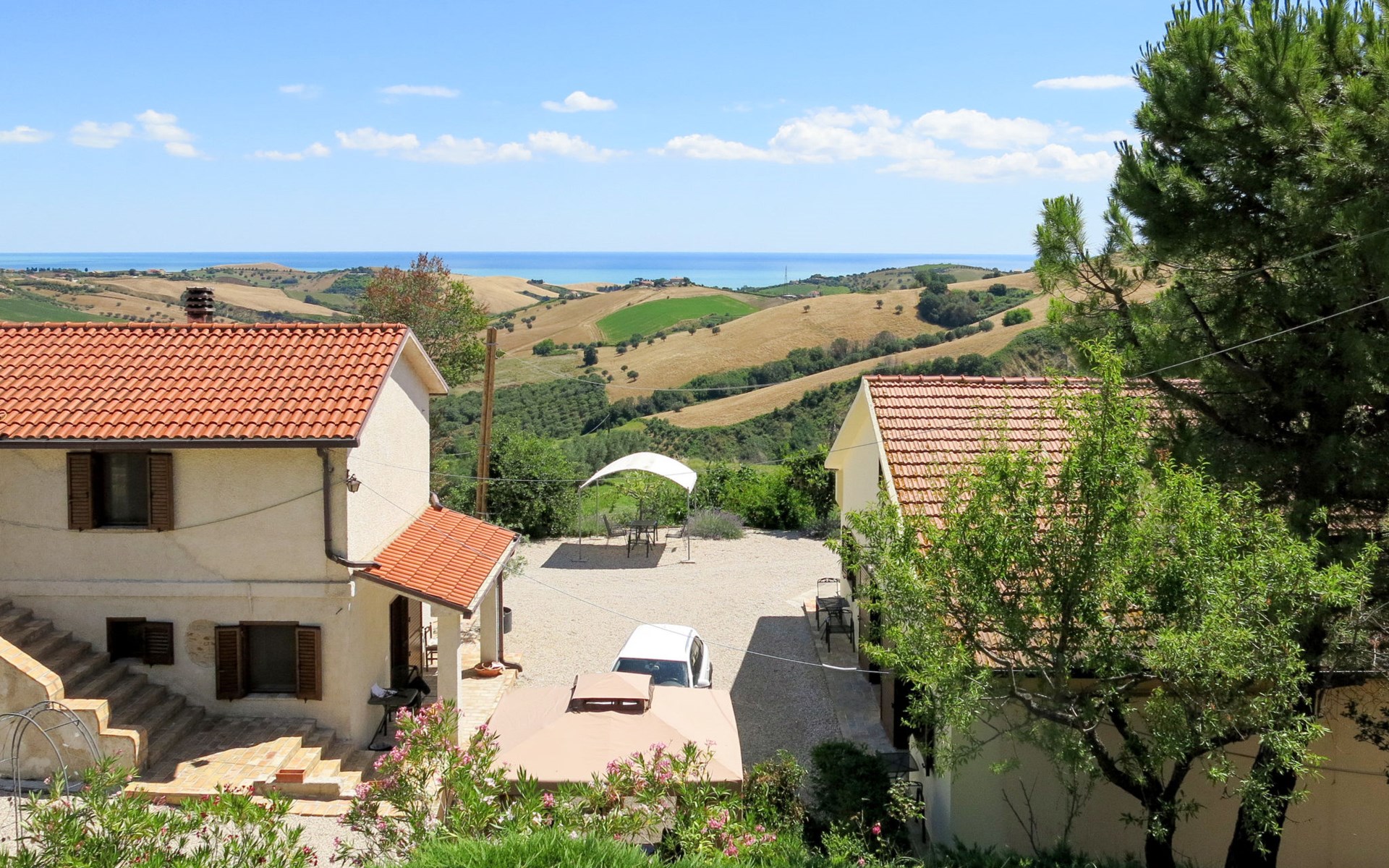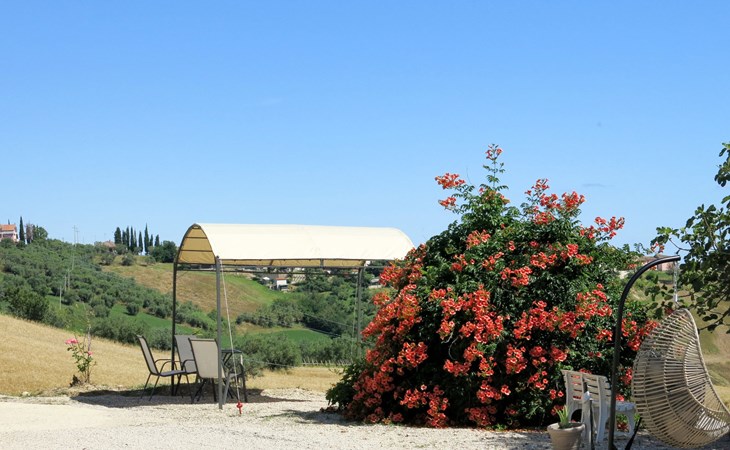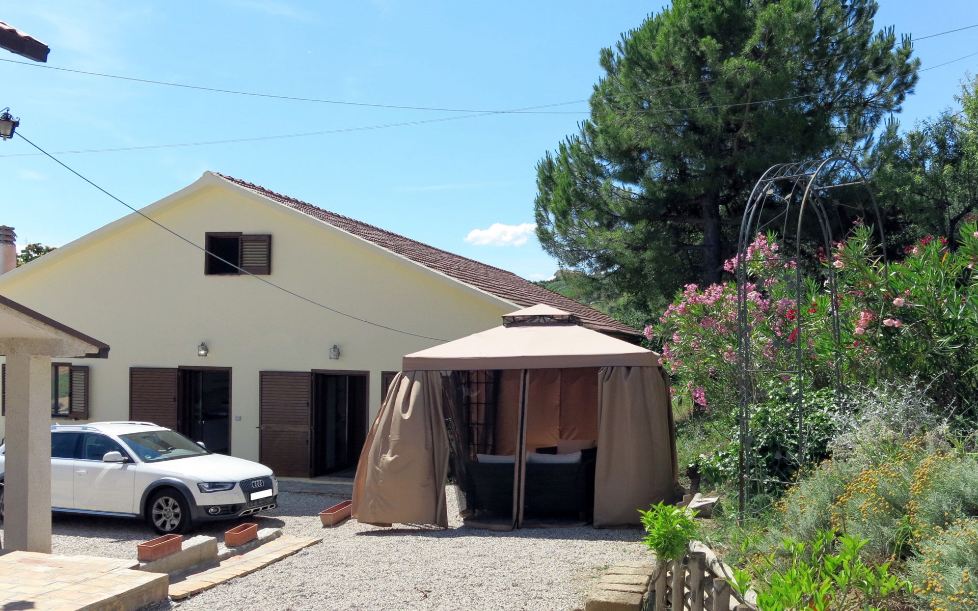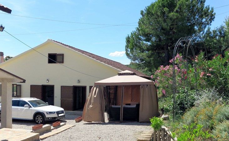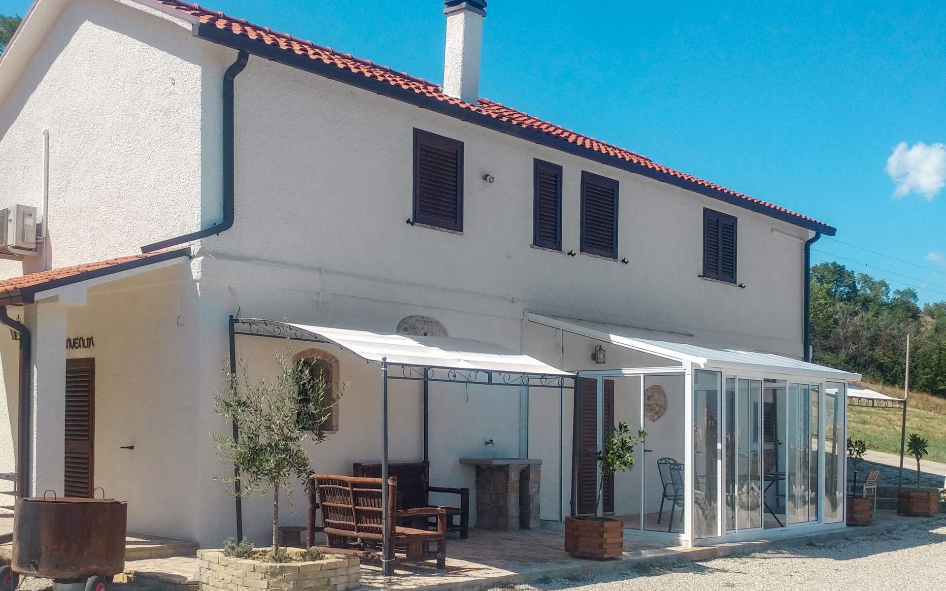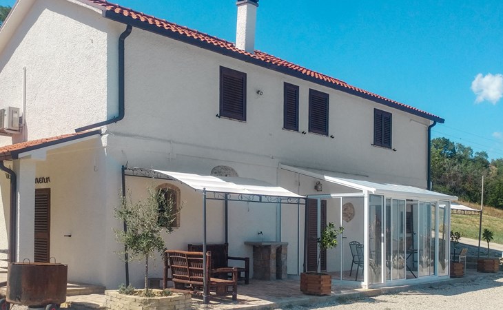 Zeer mooi, rustieke, comfortabel landhuis "Serrani", gerenoveerd in 2018, omgeven door weiden en velden. 2 huizen in de woning. 4 appartementen in de woning. 8 km van het centrum van Roseto degli Abruzzi, 13 km van het centrum van Giulianova, 17 km van het centrum van Pineto, geïsoleerde, zonnige ligging tegen een helling, 6 km van zee, te midden van groen. Voor medegebruik: wild terrein 5 ha, mooie tuin op verschillende niveaus, 5.000 m2 (niet omheind) met planten en bomen, boomgaard, ligweide, openluchtzwembad (verhoogd) (10 x 5 m, 130 cm diepte, seizoensgebonden beschikbaarheid: 01.Jun. - 28.Sep.). Patio, prieel, prieel, tuinmeubelen, barbecue. In het complex: hot tub (extra). Wasmachine (voor medegebruik). 100 m lange rommelige toegangsweg tot aan het huis. Trappenweg naar het huis. Parkeerplaats op het terrein. Winkel 1 km, supermarkt 8 km, bushalte 500 m, treinstation "Roseto degli Abruzzi" 8 km, zandstrand 6 km. Lokale verkoop van streekproducten. Vergelijkbare accommodaties kunnen worden geboekt.