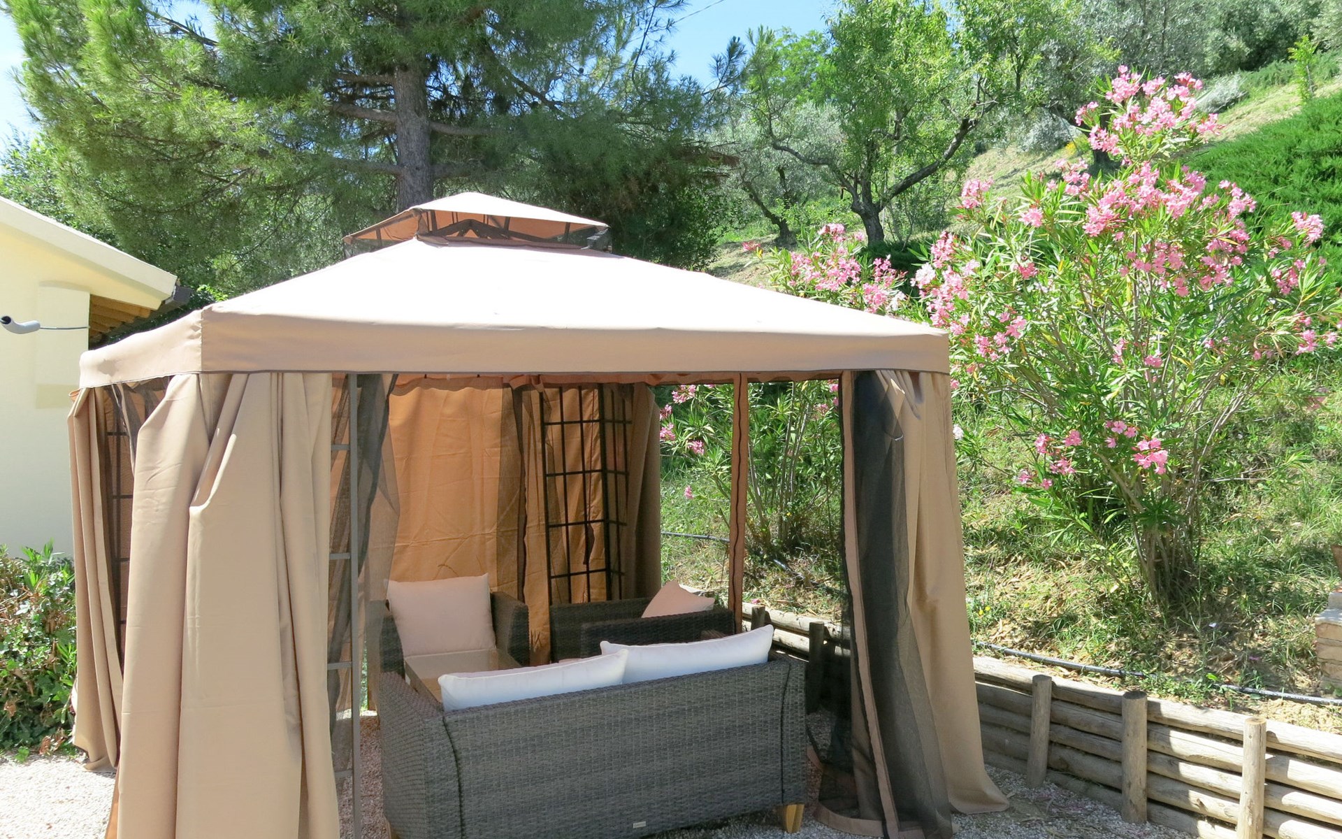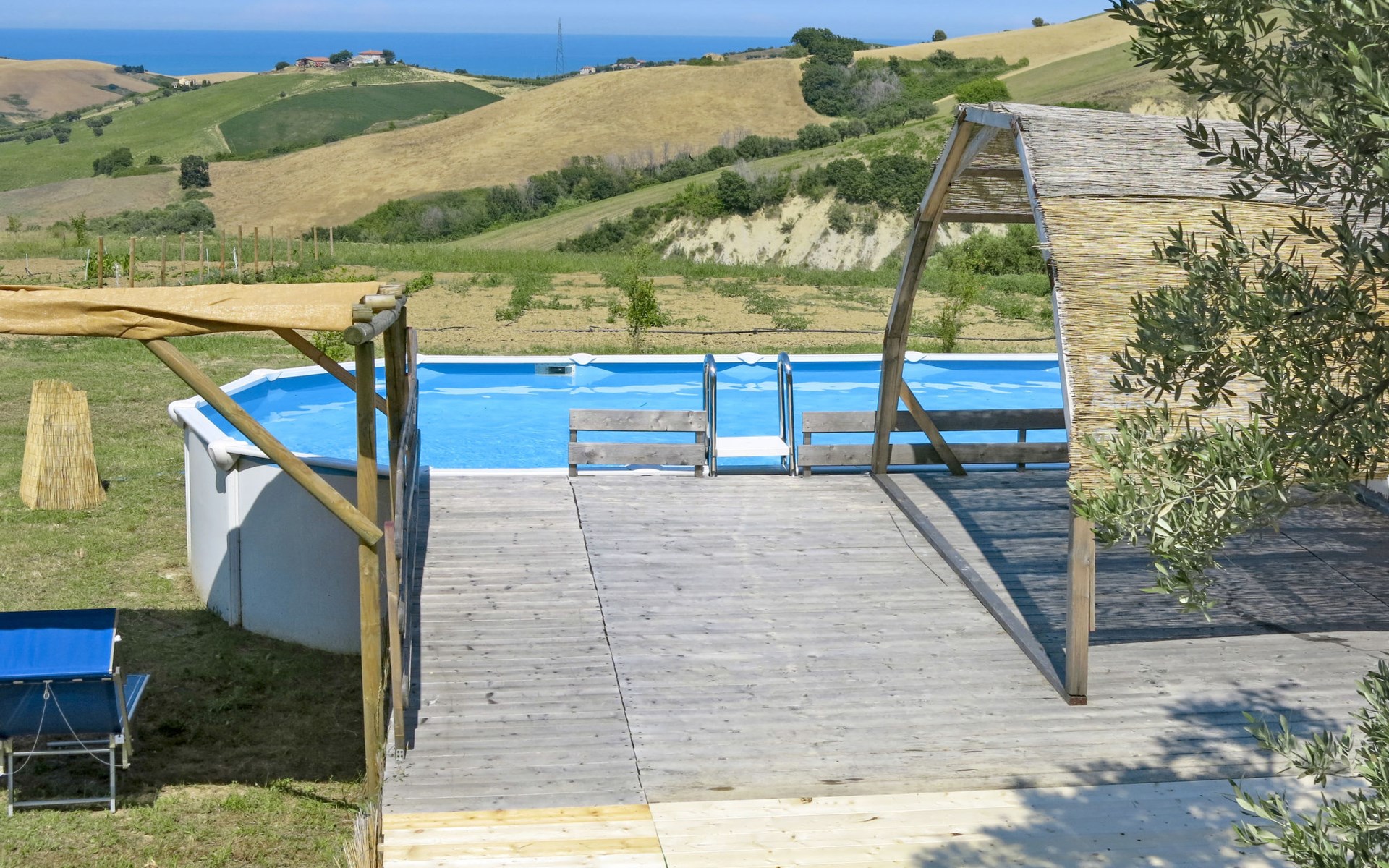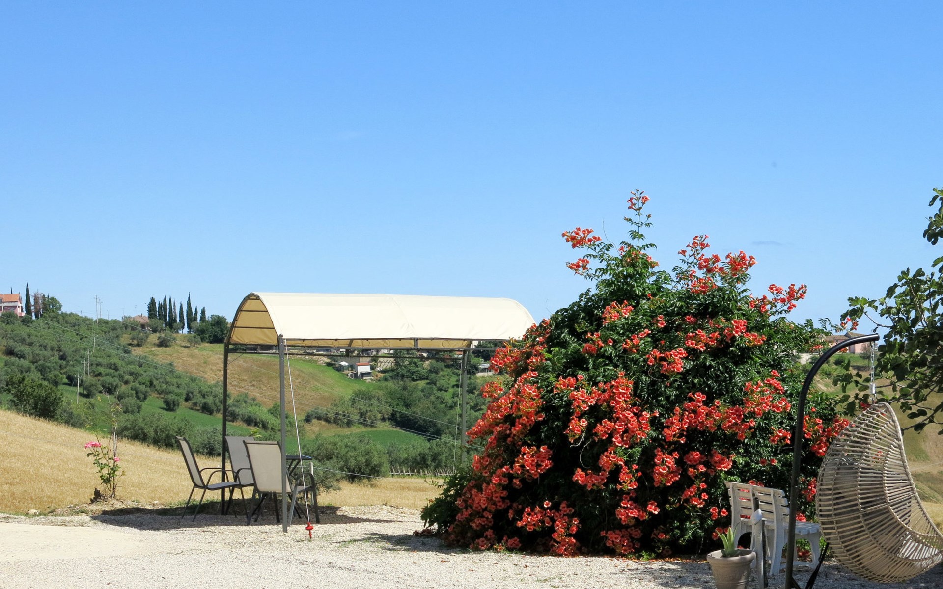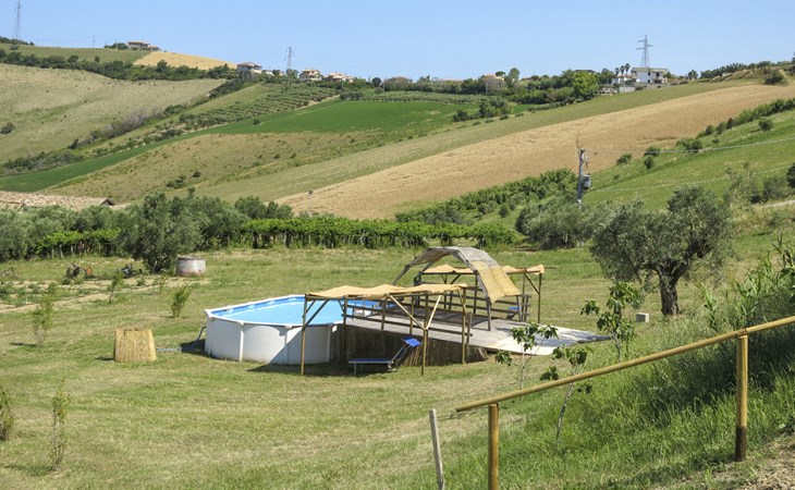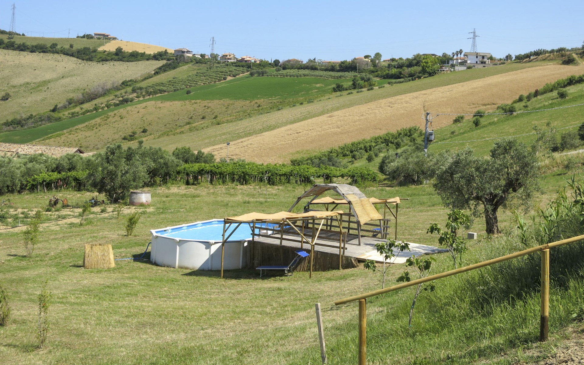 Zeer mooi, rustieke, comfortabel landhuis "Serrani", gerenoveerd in 2018, omgeven door weiden en velden. 2 huizen in de woning. 4 appartementen in de woning. 8 km van het centrum van Roseto degli Abruzzi, 13 km van het centrum van Giulianova, 17 km van het centrum van Pineto, geïsoleerde, zonnige ligging tegen een helling, 6 km van zee, te midden van groen. Voor medegebruik: wild terrein 5 ha, mooie tuin op verschillende niveaus, 5.000 m2 (niet omheind) met planten en bomen, boomgaard, ligweide, openluchtzwembad (verhoogd) (10 x 5 m, 130 cm diepte, seizoensgebonden beschikbaarheid: 01.Jun. - 28.Sep.). Patio, prieel, prieel, tuinmeubelen, barbecue. In het complex: hot tub (extra). Wasmachine (voor medegebruik). 100 m lange rommelige toegangsweg tot aan het huis. Trappenweg naar het huis. Parkeerplaats op het terrein. Winkel 1 km, supermarkt 8 km, bushalte 500 m, treinstation "Roseto degli Abruzzi" 8 km, zandstrand 6 km. Lokale verkoop van streekproducten. Vergelijkbare accommodaties kunnen worden geboekt.
