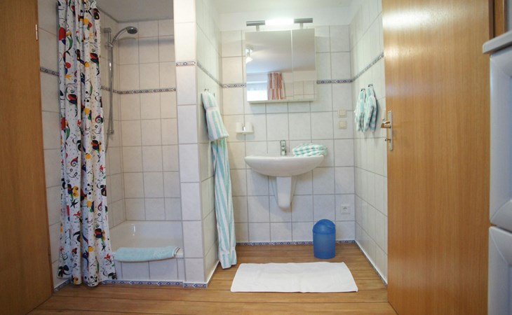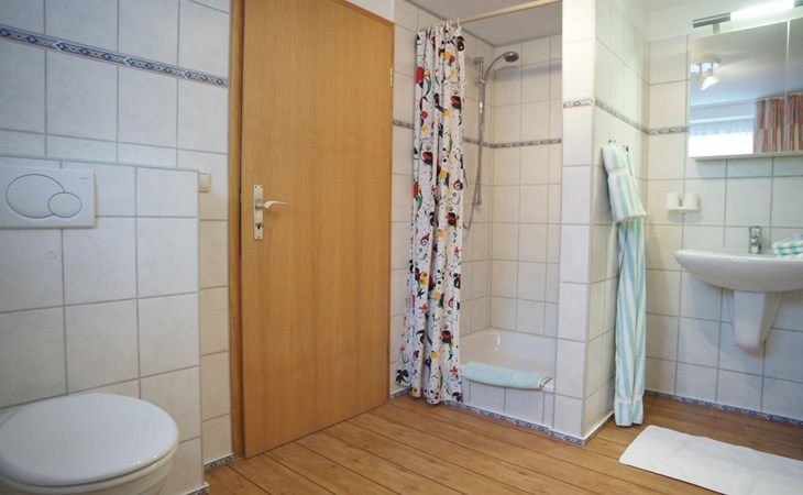 De grote badkamer is voorzien van een douche.