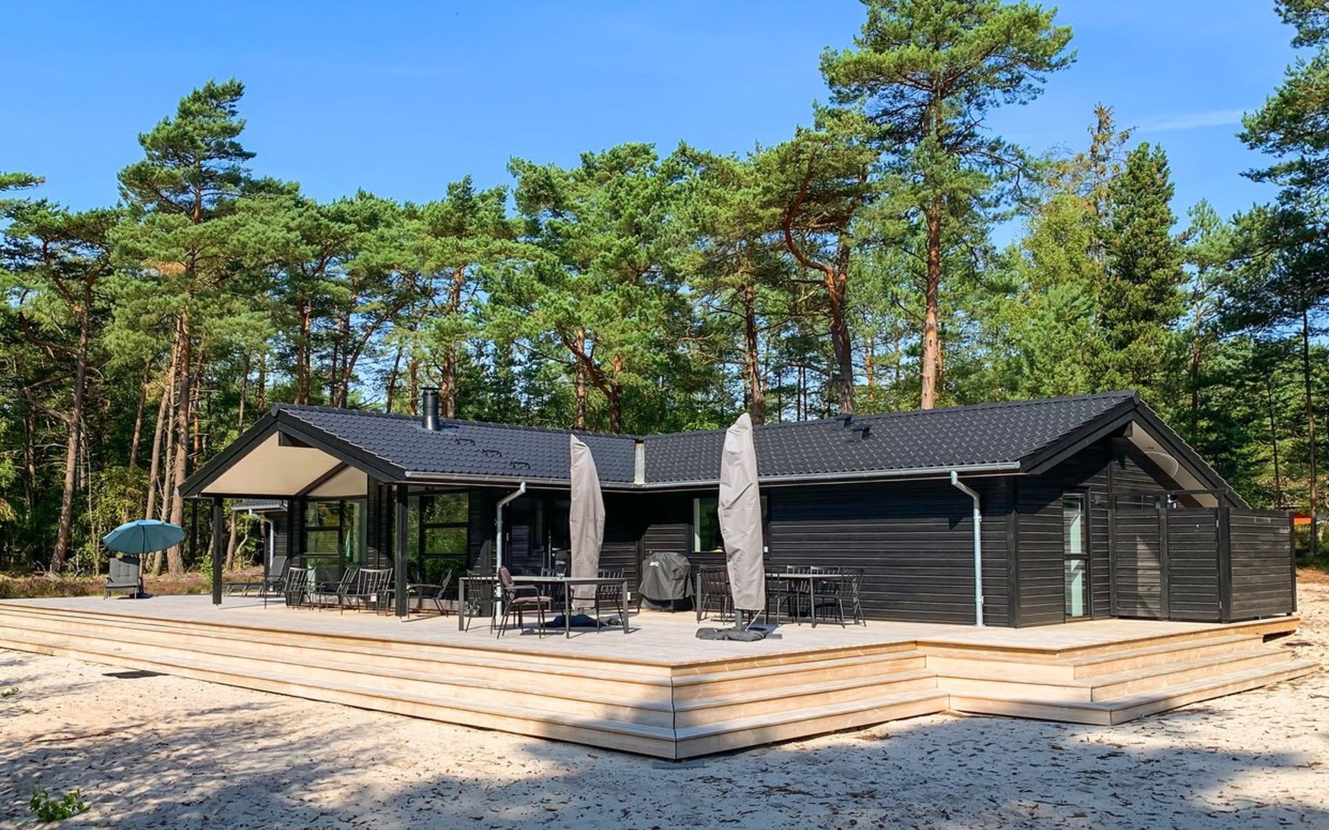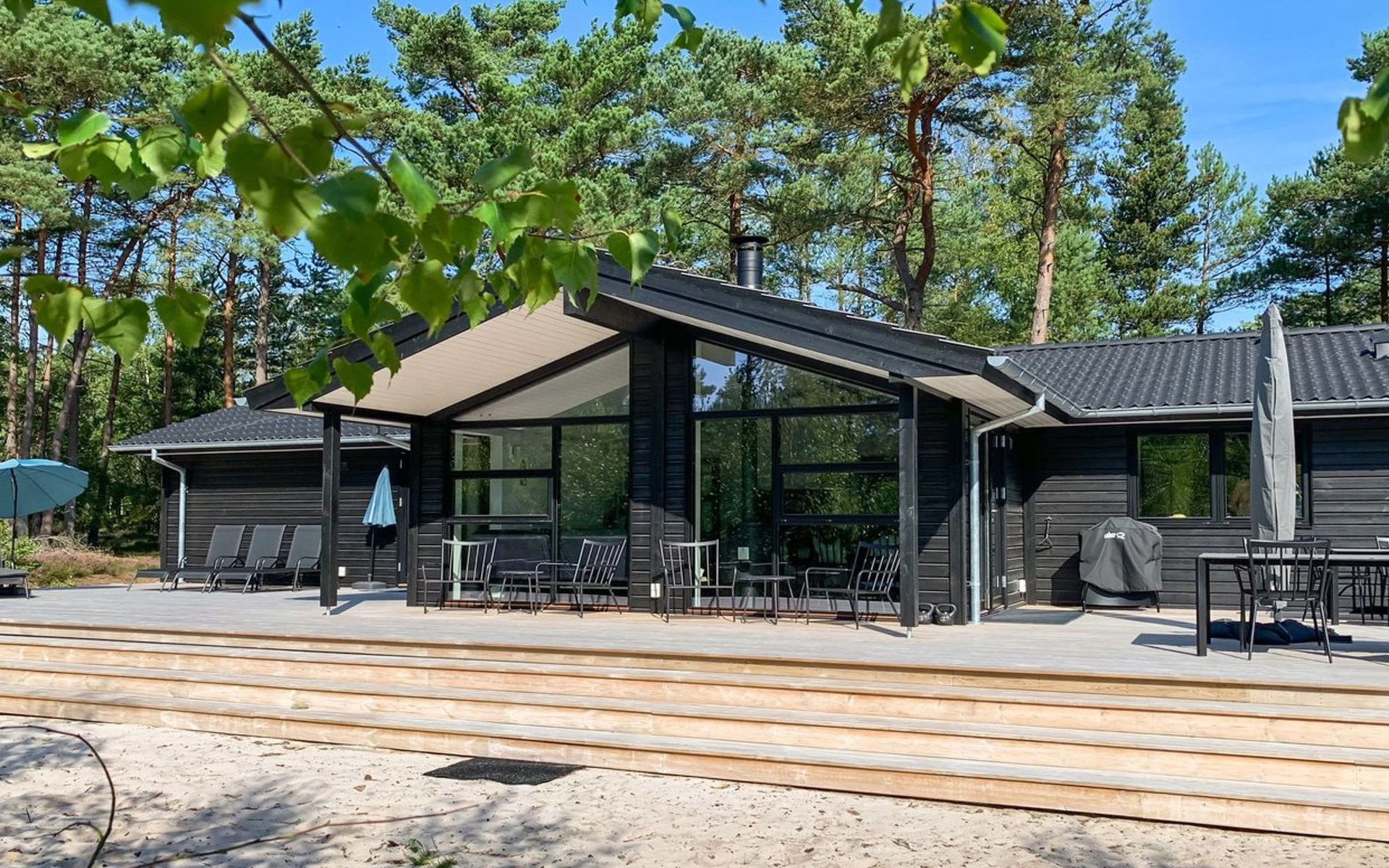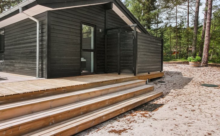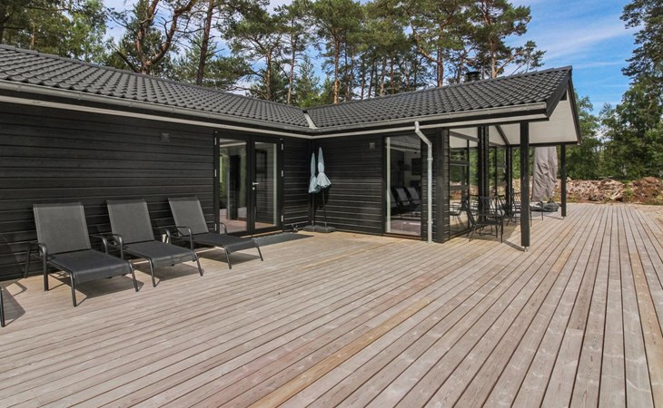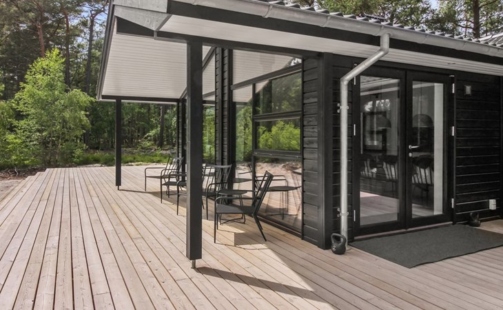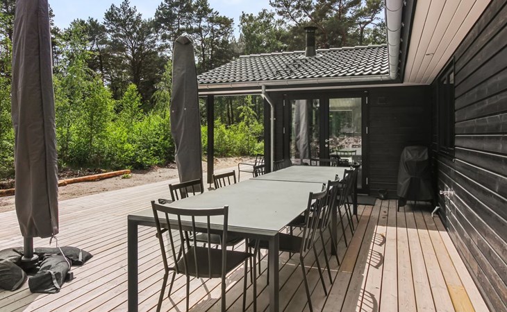 Eengezinswoning, bouwjaar 2018. 800 m van zee. Voor alleengebruik: wild terrein 3.780 m2. Buitendouche, terras (87 m2), barbecue. In het huis: sauna, wasmachine, droger. Parkeerplaats bij het huis. Levensmiddelenwinkel 3 km. Golfterrein 3.5 km. De eigenaar accepteert geen jeugdgroepen.