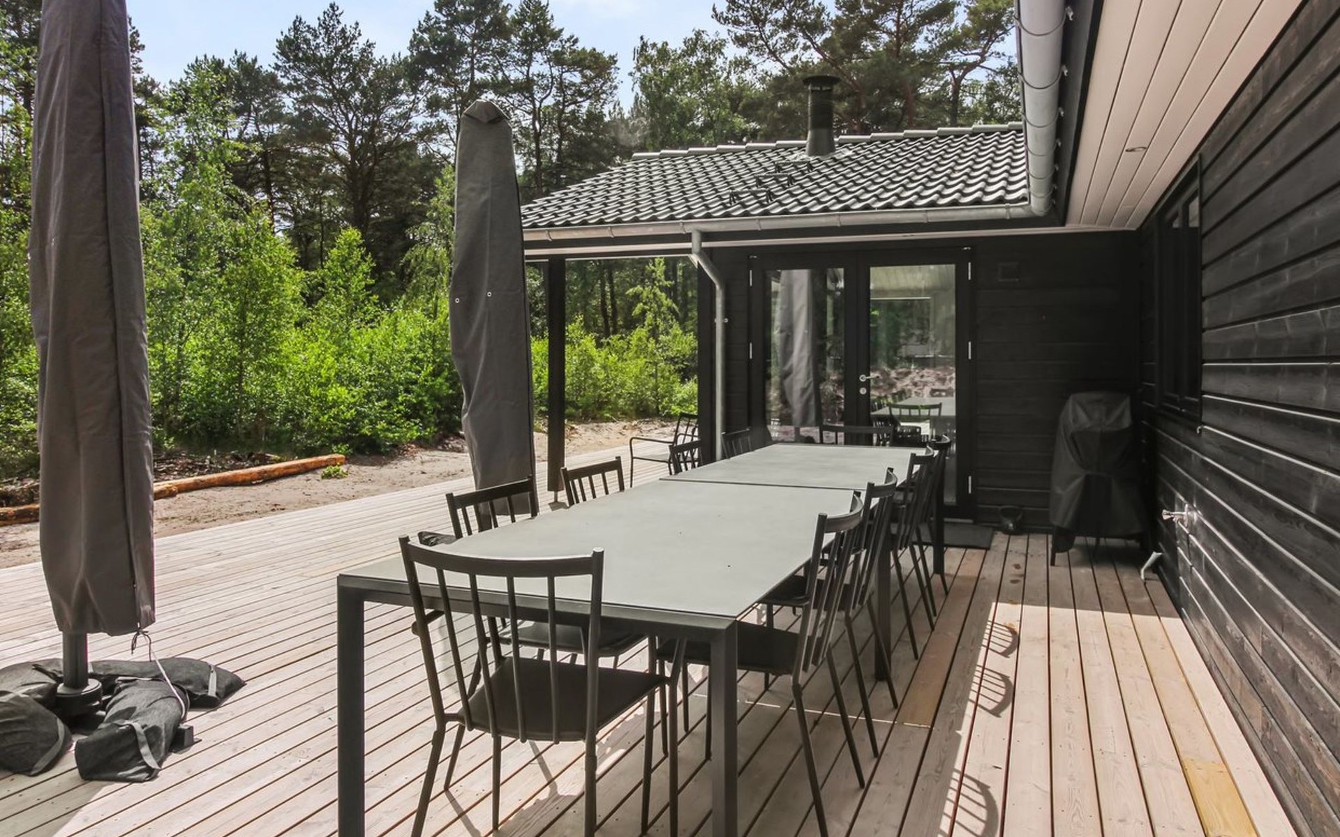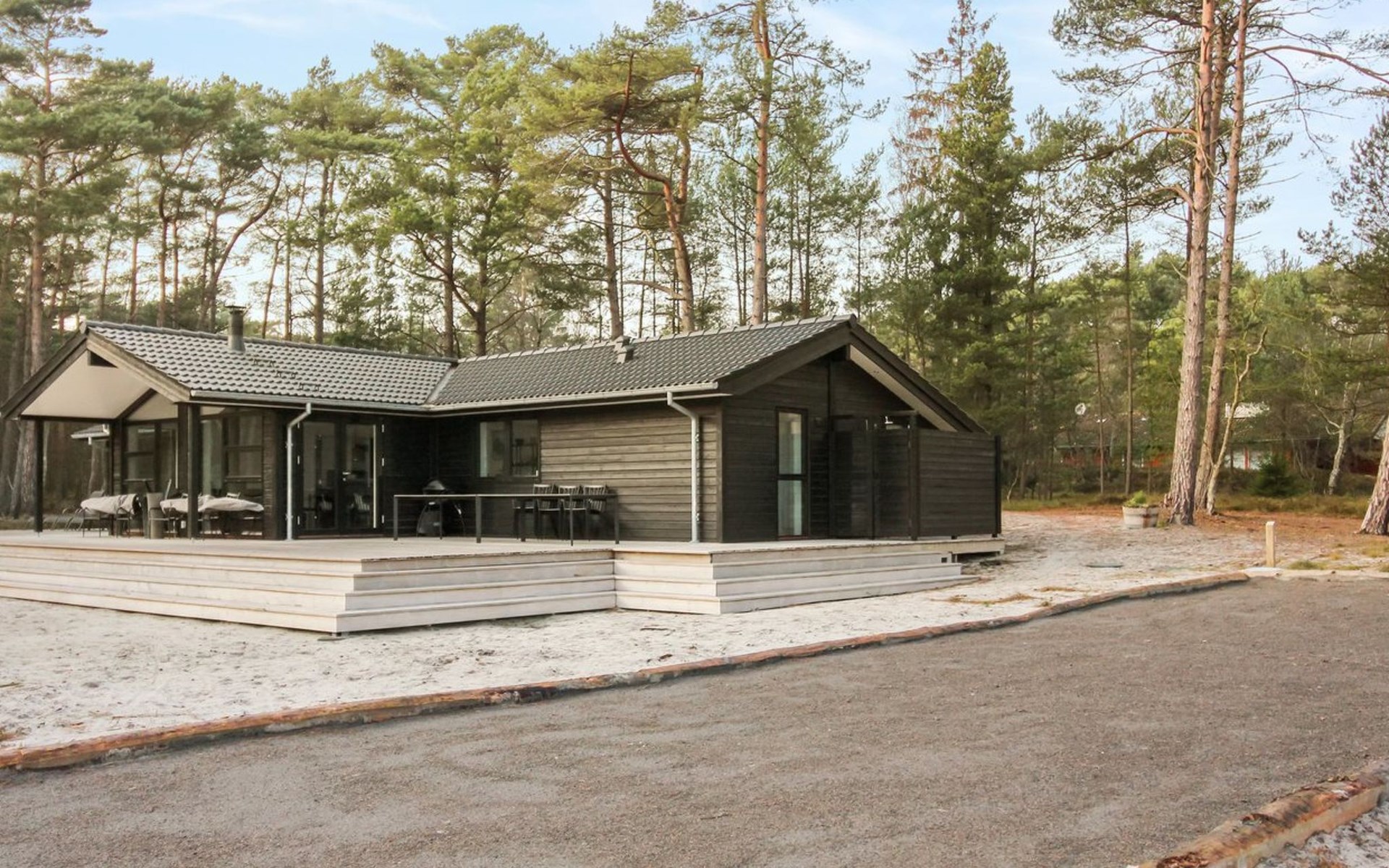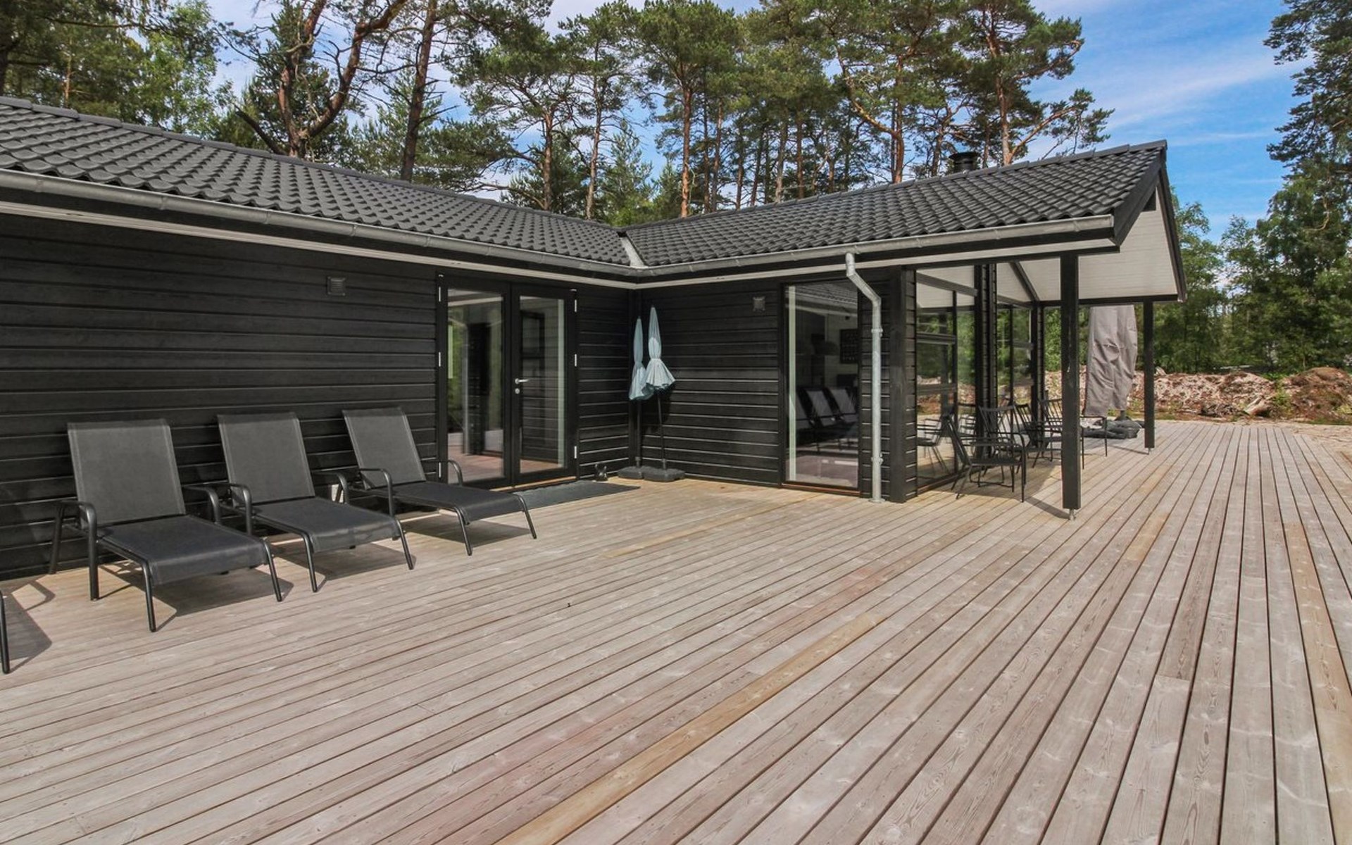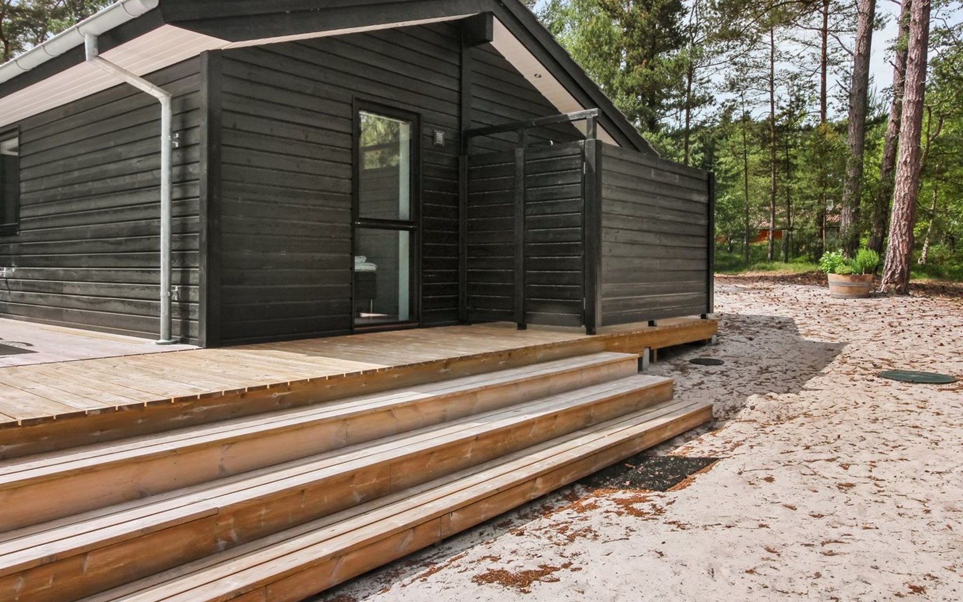 Eengezinswoning, bouwjaar 2018. 800 m van zee. Voor alleengebruik: wild terrein 3.780 m2. Buitendouche, terras (87 m2), barbecue. In het huis: sauna, wasmachine, droger. Parkeerplaats bij het huis. Levensmiddelenwinkel 3 km. Golfterrein 3.5 km. De eigenaar accepteert geen jeugdgroepen.