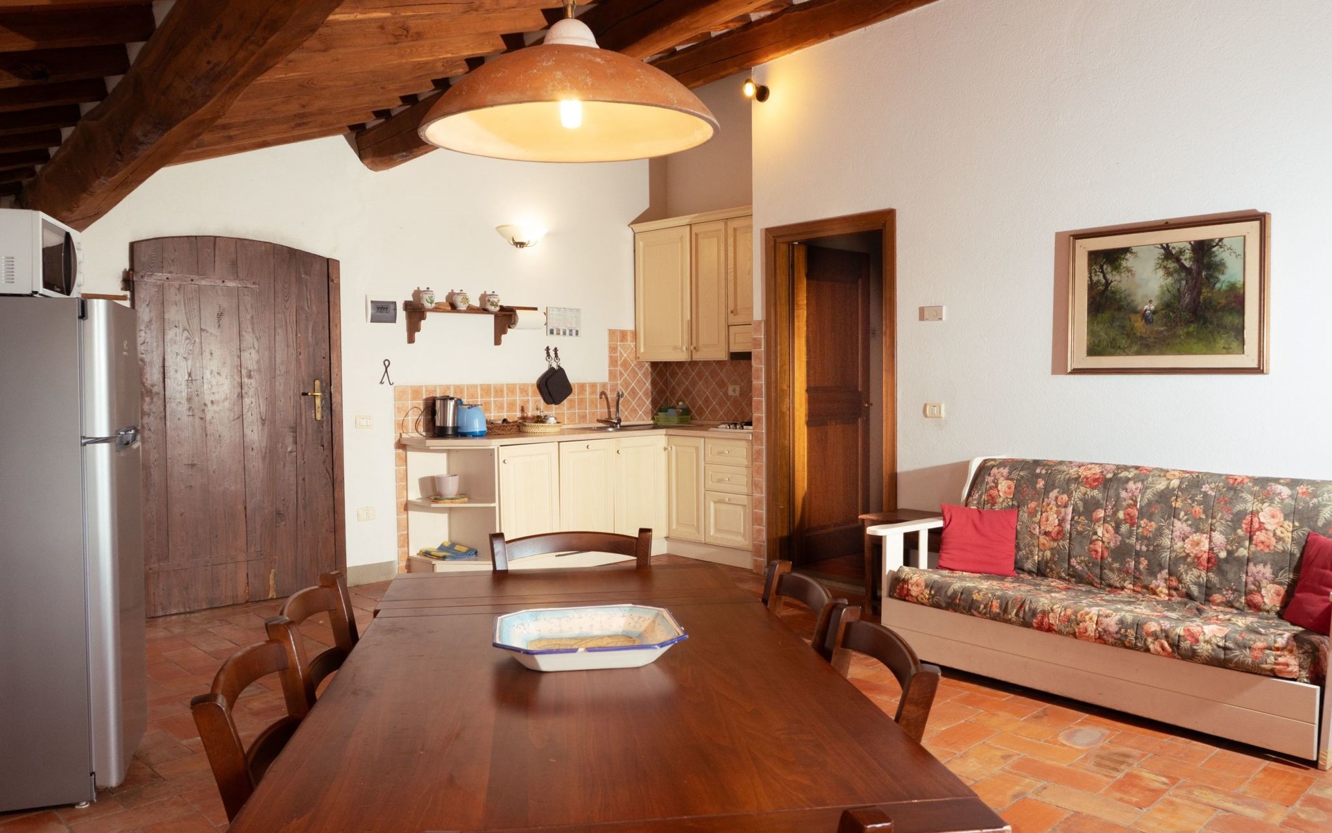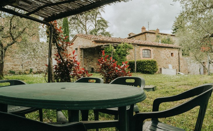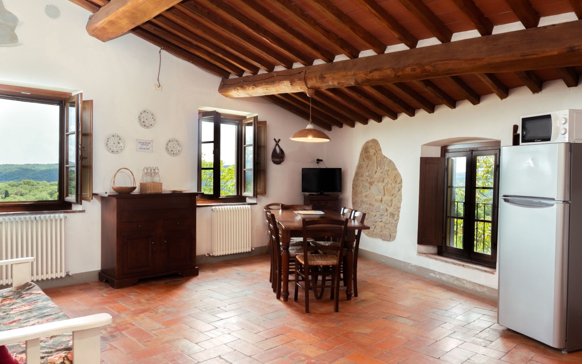 First floor flat, 75 m², with beautiful views from the windows2 bedrooms with single beds that can be joined and space for an extra bed2 bathrooms with shower and bidet, towels and toiletries providedLarge living room with sofa bed for two, dining table for 8, armchairs, satellite TV, wall safe and well-equipped kitchenette with microwave/grill, dishwasher, fridge and freezerPrivate gazebo for outdoor dining and relaxationFast and reliable internet connection, indoor and outdoor, included.On top of a hill in the heart of Tuscany, every road leads to something extraordinary: Siena is 30 minutes west, Cortona 45 minutes east, Florence an hour north.When the city crowds have tired you out, you can return here, 500 m (1,600 ft) above sea level, to a small, out-of-time medieval hamlet of no more than a dozen centenarians, where the cool breeze and golden light make the Tuscan sunshine perfect and authentic Dolce Vita awaits.Borgo Rapale is located in the heart of Chianti, where vineyards and family-run wine cellars open their doors for exclusive tastings. Right next to Borgo Rapale, in the countryside that produces the best Florentine steak, more than ten restaurants are within a 10-minute drive, serving authentic, non-touristy flavours handed down from generation to generation. The recently renovated natural hot springs of Rapolano, with beauty treatments and thermal pools, are only 20 minutes away.Culture, food and tranquillity: this is Borgo Rapale in a nutshell.The price includes: taxes (tourist tax excluded), cots, final cleaning, weekly change of bed, bathroom and kitchen linen.Free use of Wi-Fi, barbecue (including firewood), electricity, gas (excluding heating), swimming pool, covered parking, satellite TV and wall safe. IT051005B5S5HUG8OM