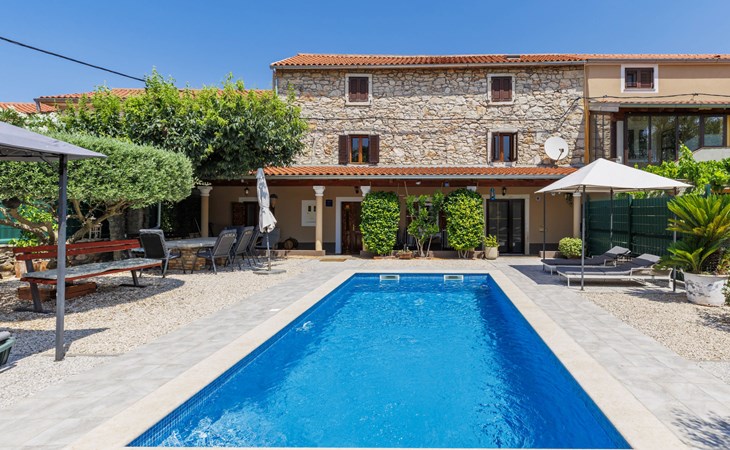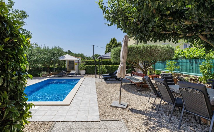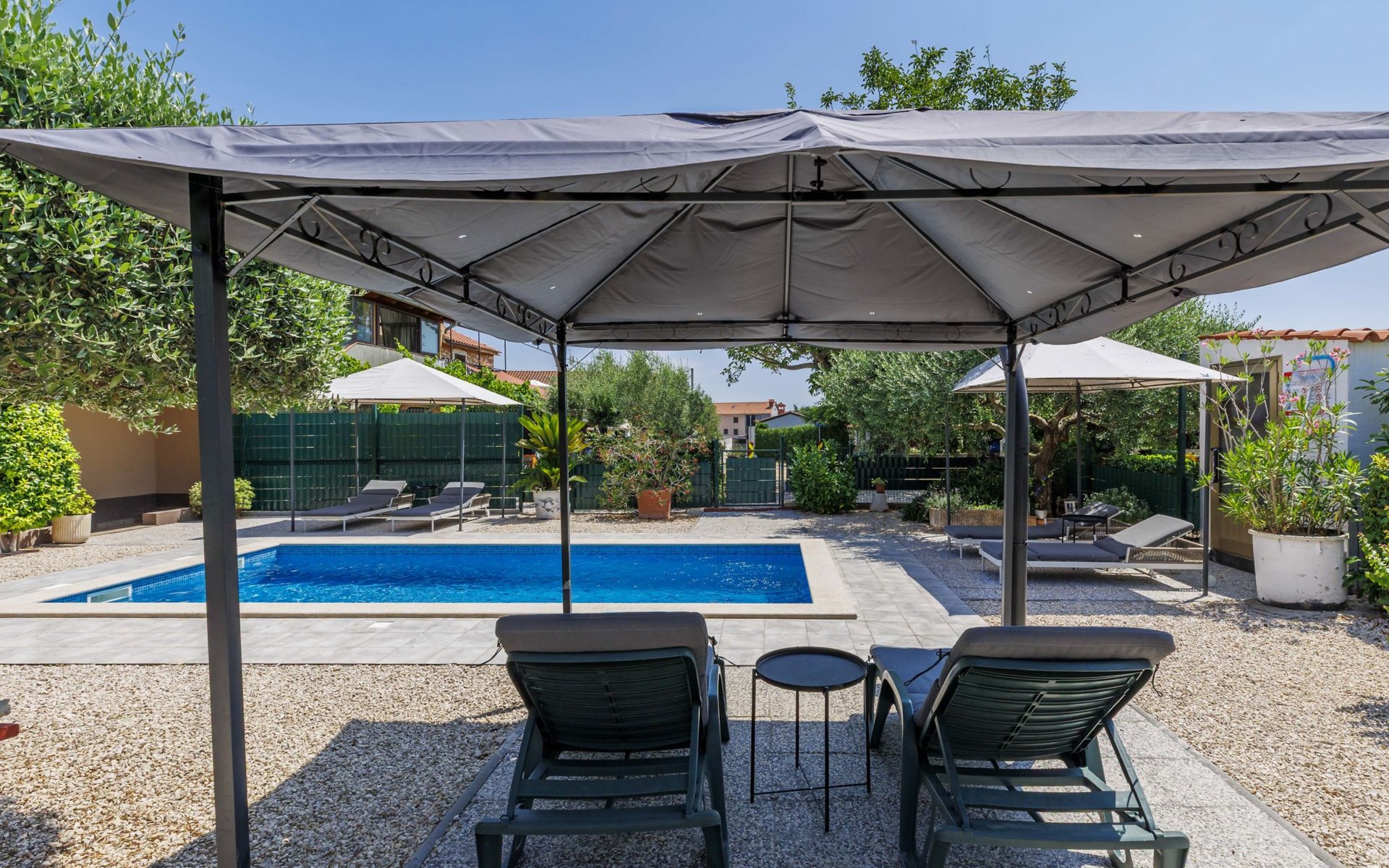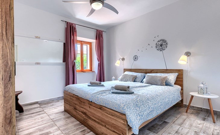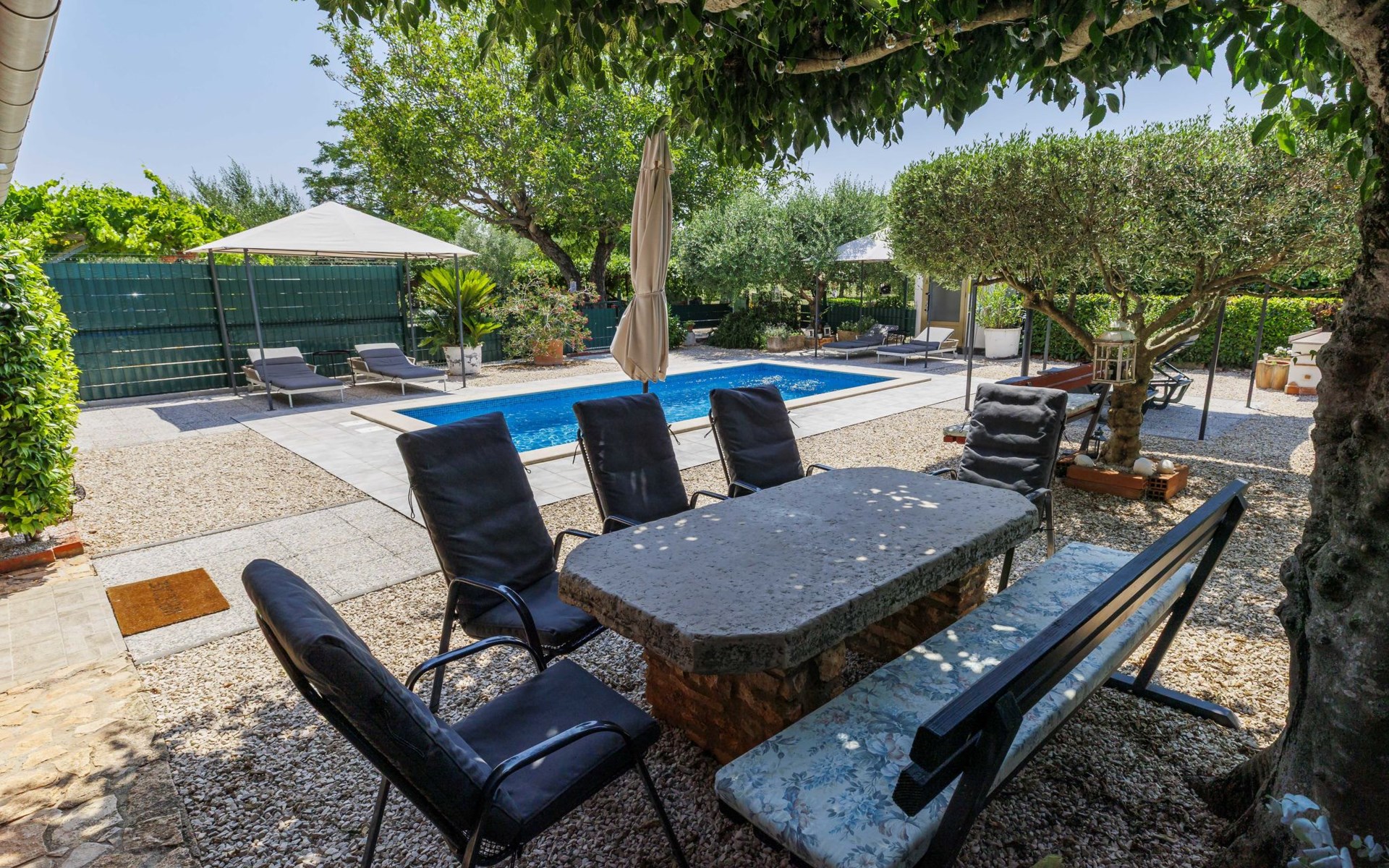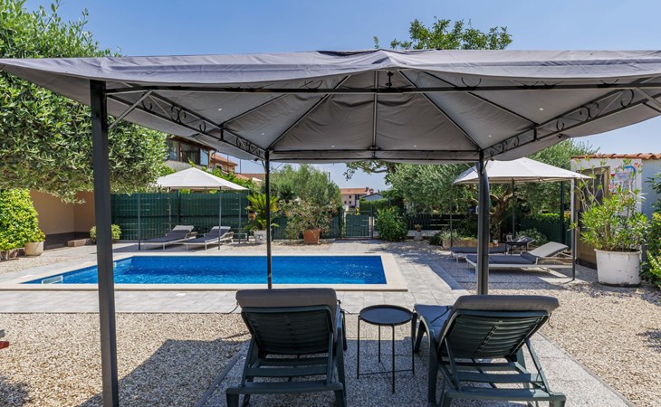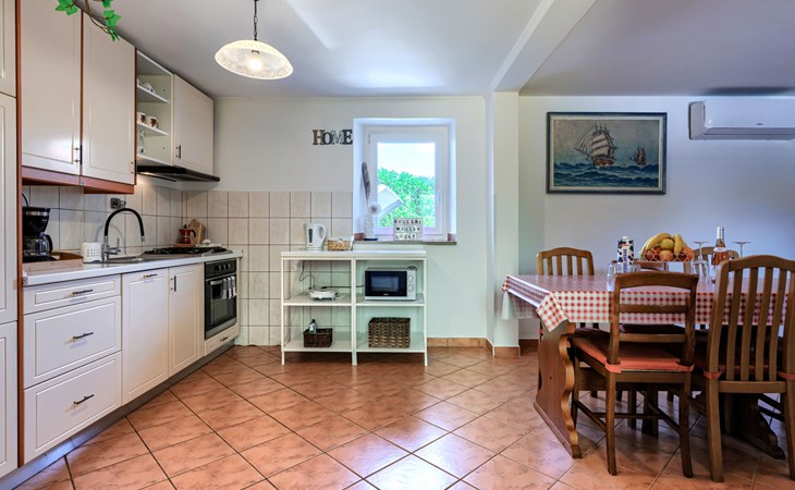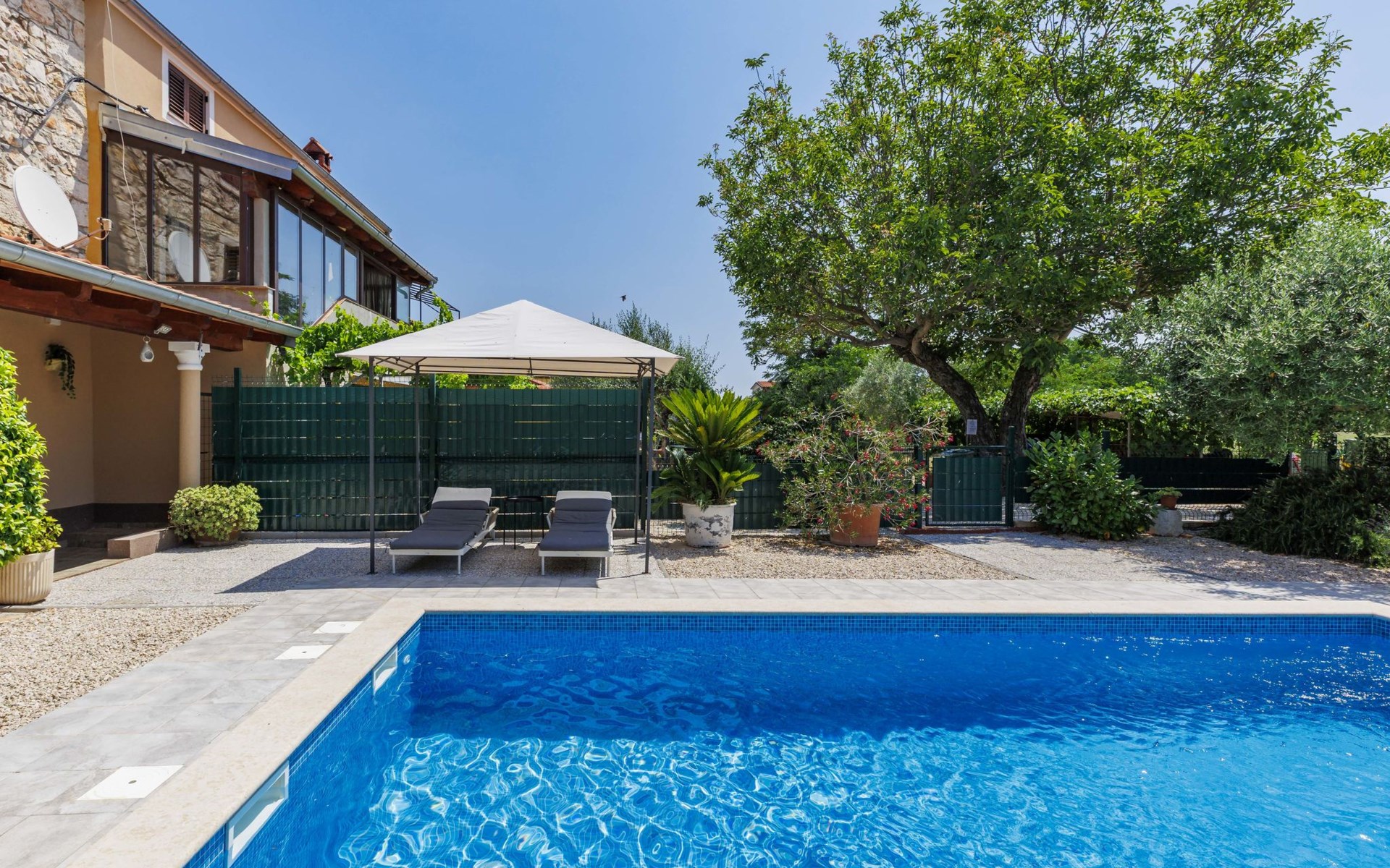 Brtonigla: Mooi twee onder één kap woning "Villa Lucky", van 2 verdiepingen, gerenoveerd in 2020. In het gehucht Lukoni, 3 km van het centrum van Brtonigla, 7 km van het centrum van Buje, 7 km van het centrum van Novigrad, rustige ligging, 4 km van zee, 4 km van het strand. Voor alleengebruik: terrein 400 m2 (omheind), openluchtzwembad hoekig (7 x 3 m, 26 m2, 145 cm diepte, seizoensgebonden beschikbaarheid: 01.Mei. - 30.Okt.) met trap. Buitendouche, terras, tuinmeubelen, onderhoud zwembad door de eigenaar/tuinman. In het huis: internetaansluiting, wasmachine. Parkeerplaats (voor 2 auto's) op het terrein. Winkel 3 km, supermarkt 7 km, restaurant 3 km, café 3 km, bushalte 3.3 km, kiezelstrand 4 km, stenenstrand 4 km, rotsstrand 4 km, betonnen strand 4 km. Geschikt voor families. De eigenaar accepteert geen jeugdgroepen. Dieren in de buurt.