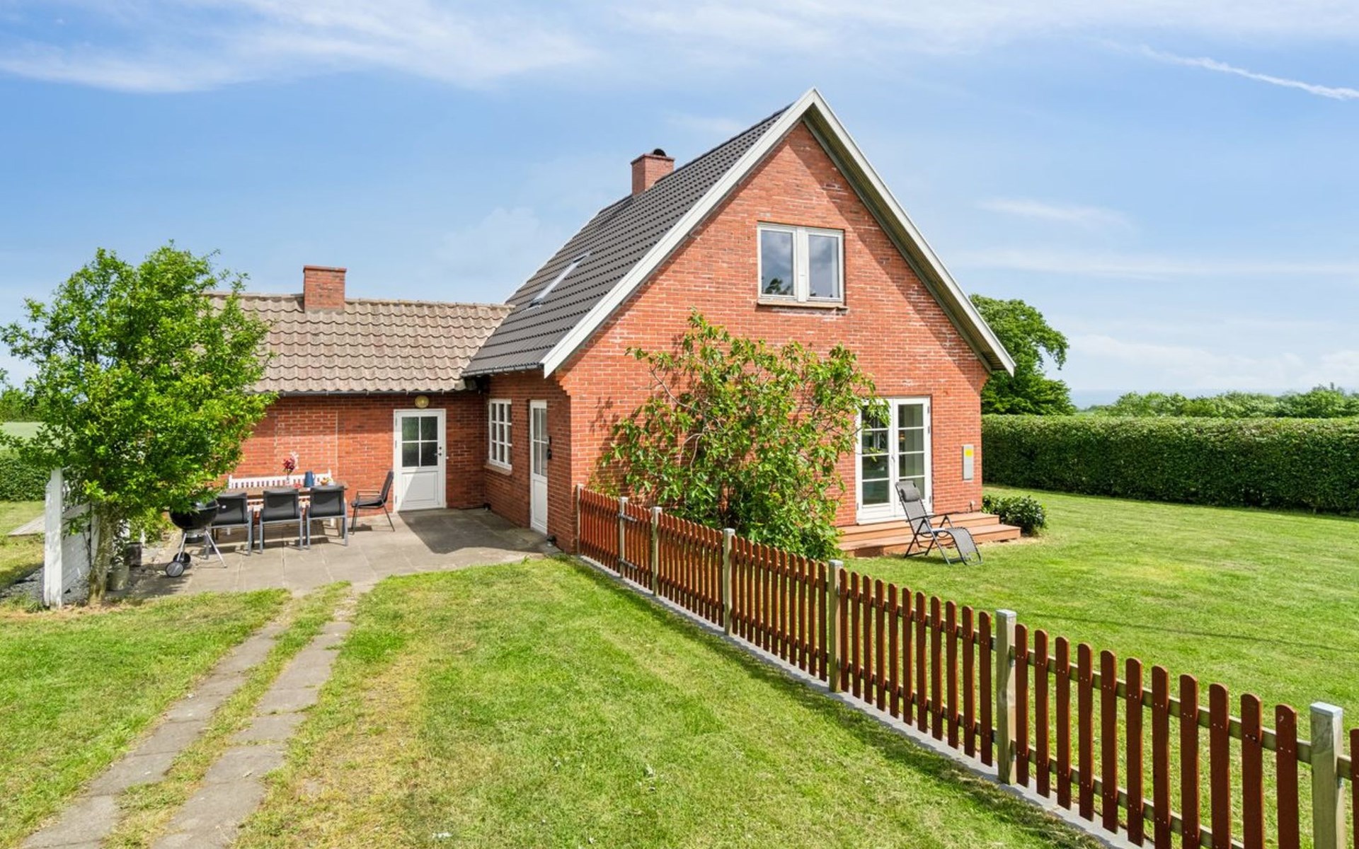 Huis, bouwjaar 1957. 1 km van zee. Voor alleengebruik: terrein 1.000 m2, verzorgde tuin. Barbecue. In het huis: wasmachine. Parkeerplaats bij het huis. Levensmiddelenwinkel 5 km. Golfterrein 500 m. De eigenaar accepteert geen jeugdgroepen.