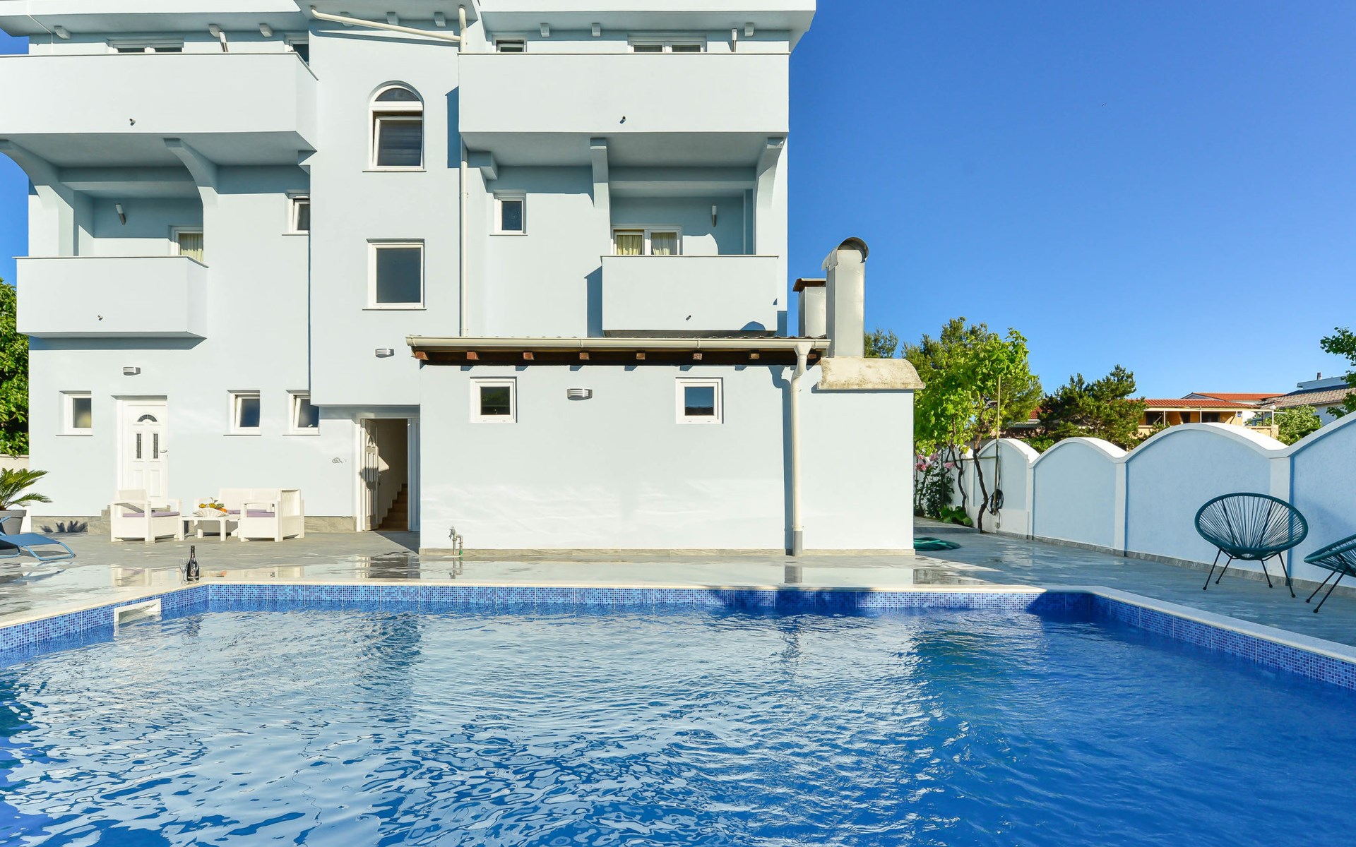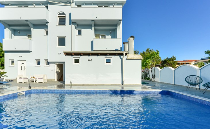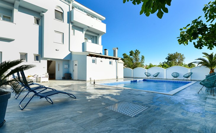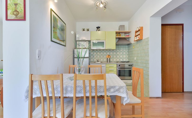Appartementencomplex "Jadran". 6 km van het centrum van Nin, 300 m van het centrum van Sabunike, 20 km van het centrum van Zadar, 180 m van zee, 180 m van het strand. Voor medegebruik: terrein 600 m2 met gazon, openluchtzwembad hoekig (35 m2, 150 cm diepte, seizoensgebonden beschikbaarheid: 01.Mei. - 02.Okt.) met trap. Buitendouche, barbecue. In het huis: internetaansluiting. Parkeerplaats op het terrein. Winkel 300 m, bushalte 750 m, zandstrand 180 m. De eigenaar woont in hetzelfde huis. Vliegveld 35 km van het huis.
