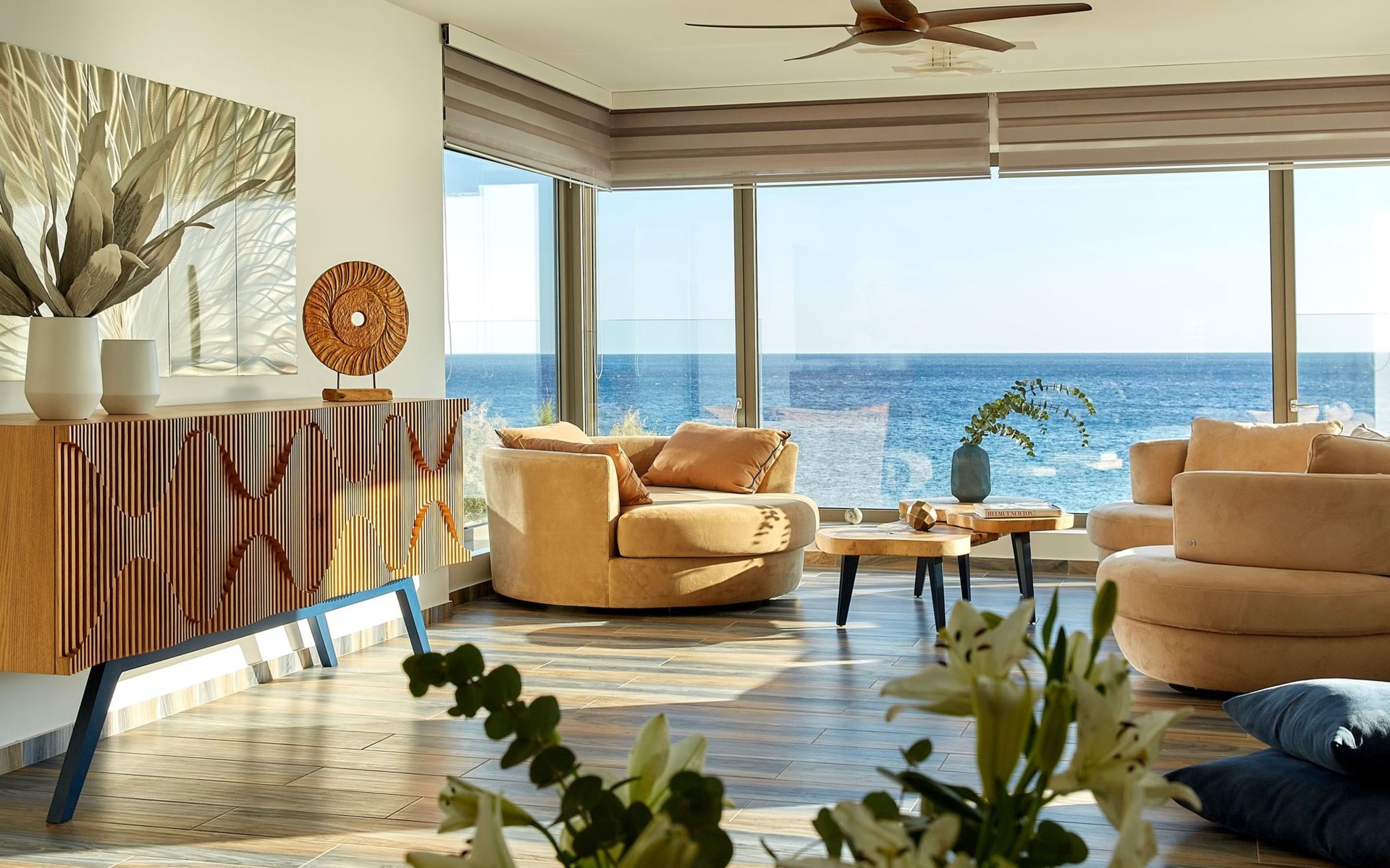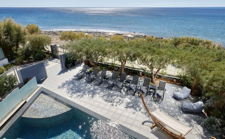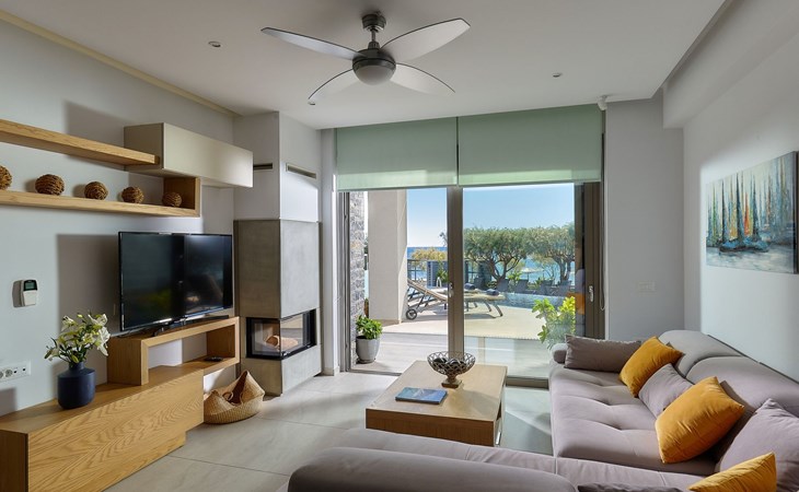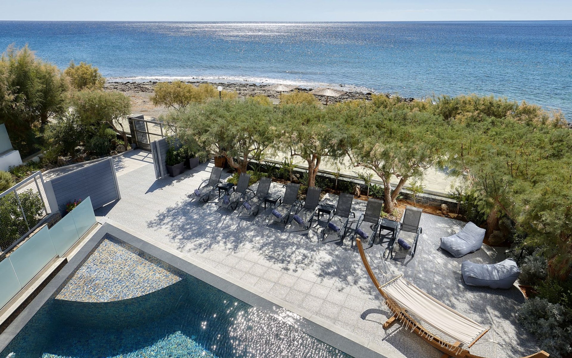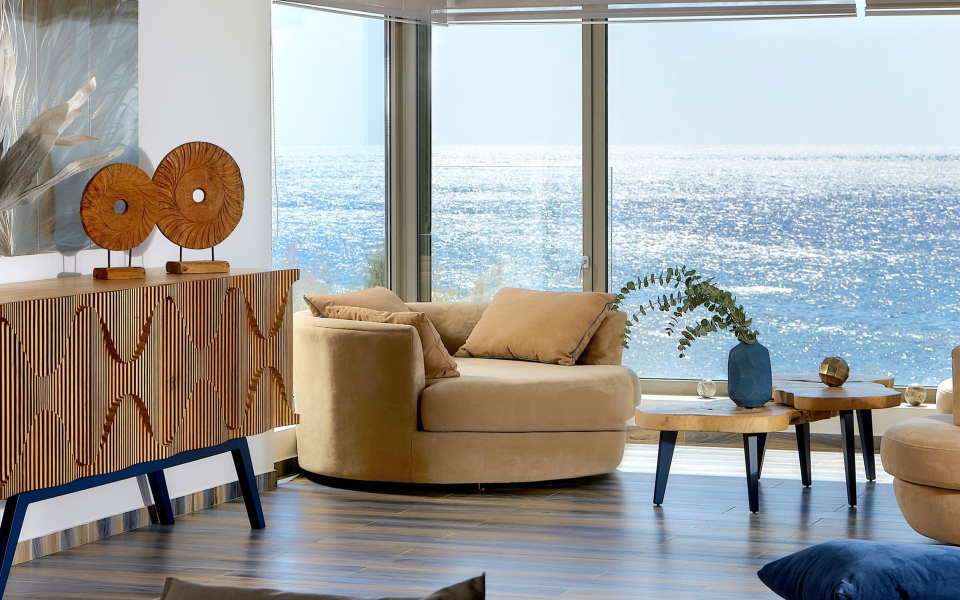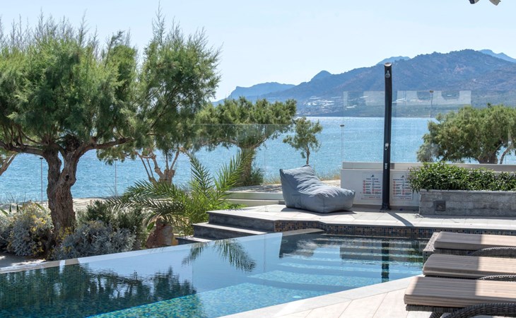 Modern & luxurious, this 10-bedroom seafront luxury villa offers secluded serenity as if the rest of the world no longer exists. Breath-taking, panoramic views of sea, moon on water & sunset. Enjoy Infinity pool & adjoining spa (extra cost for heating) on ground floor, private hot tub on penthouse balcony, BBQ, bicycles. Large outdoor space offers group fun & dining. Less than 4 min walk to modern comforts & beach. Ideal for retreats and celebrations. Concierge services available.----------------Moonlight Villas ('Jupiter Moons' villa) overlook the crystal-clear, blue waters of the Mediterranean sea- a beautiful rocky horizon ideal for swimming, sunbathing, surfing, and other water sports. Set in Koutsourás, a quiet, agricultural village in South-Eastern Crete, this 10 bedroom Jupiter Moons villa is a .450 square meters brand new, private, waterfront estate that provides luxurious accommodation with spectacular views of the southern Crete landscape, moon and sunset. The property features an infinity pool (52 square meters) and adjoining whirlpool, from which guests can enjoy these stunning waterfront vistas. The pool is heatable at an extra cost - please ask.Decorated with modern art-contemporary lines blended with natural elements to reflect the vibrant character of the island. Combining wonderfully the Cretan architecture with modern elegance, this stylishly decorated ambiance exudes a feeling of warmth and privilege by offering a unique experience of ultimate relaxation. Located only a few minutes’ walk from a local pebble beach, bakery, and coffee shops, patisserie, super markets, bars, restaurants, and pharmacy, the villas combine romantic seclusion with proximity to modern comforts. Likewise, the property is located only a few km away from the tourist town of Makry Gialos (with a long sandy beach), as well as traditional Cretan mountain villages with numerous authentic tavernas and bars. The nearest airports are in Sitia (36 km) and Heraklion (114 km; private transportation can be arranged at a fee; ask us).The Jupiter moons villa sets the highest standards of luxury, beauty, elegance, ecological simplicity, and modern comforts. We will share our best-kept secrets about our hidden-treasure beaches, landscapes, hiking paths, culture, best restaurants, best shops and bicycle ride paths, as well as other attractions that may be of interest. Welcome to your seafront, romantic, luxury, and breathtaking home away from home! 1090812