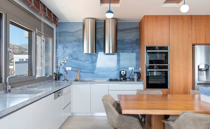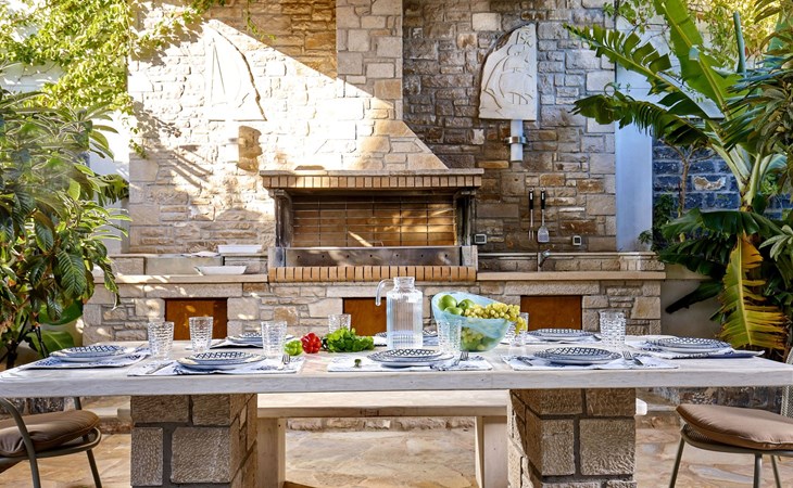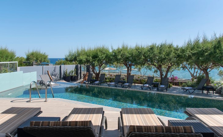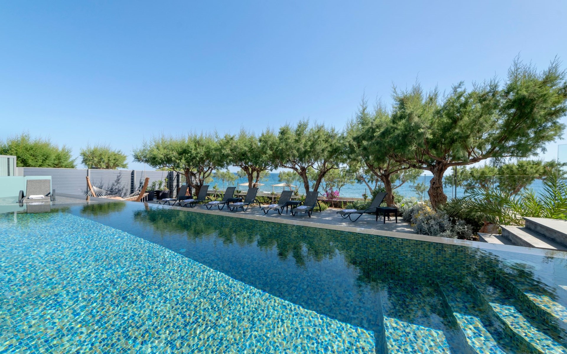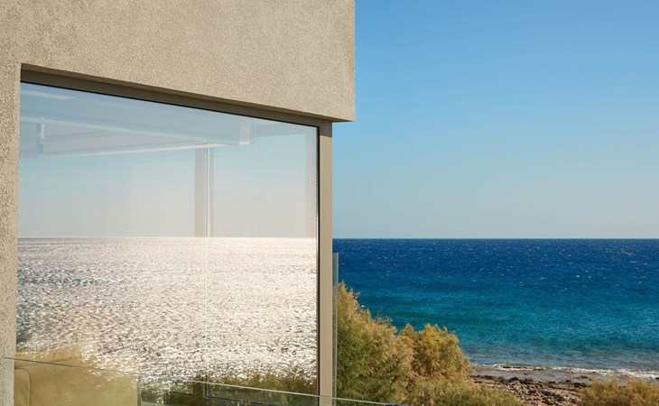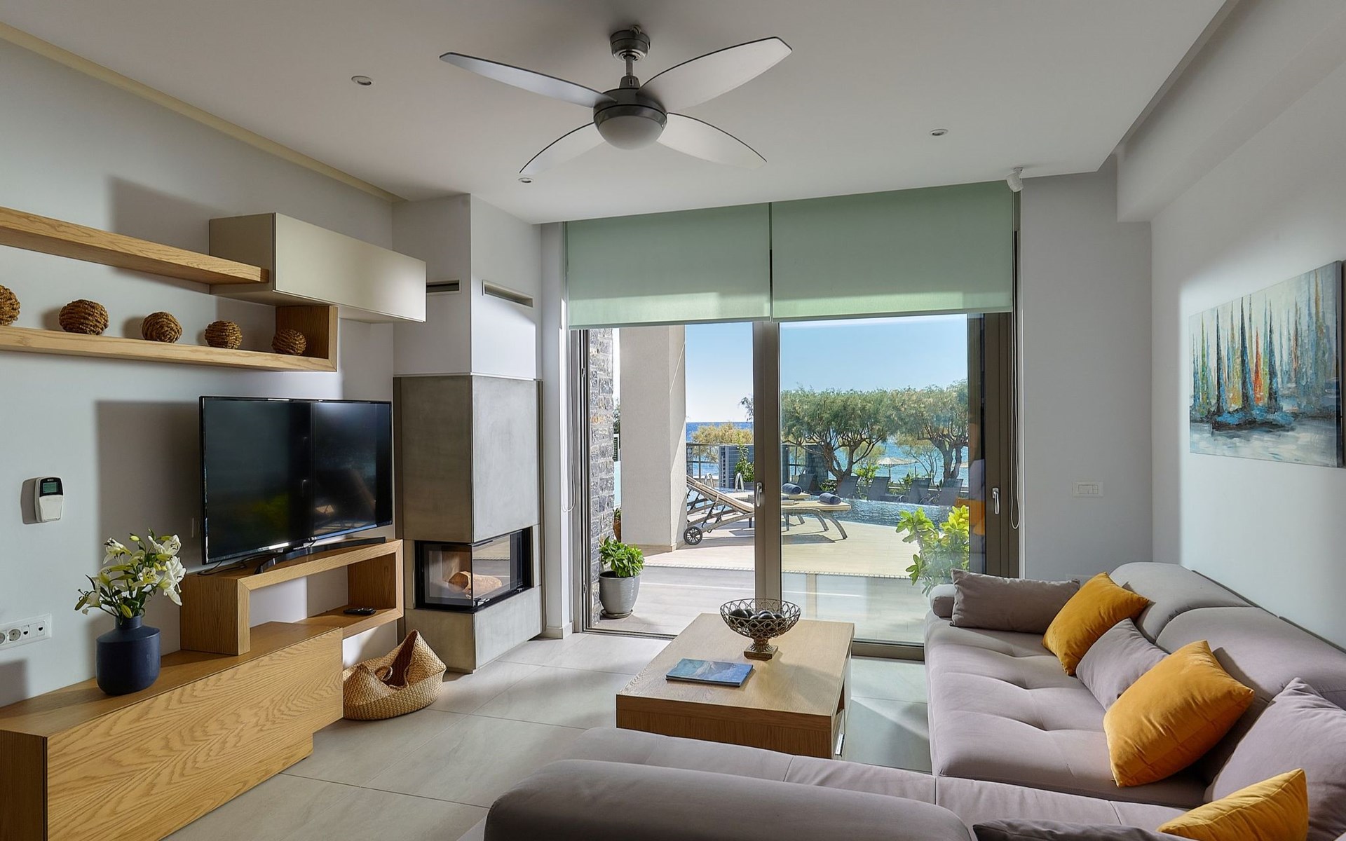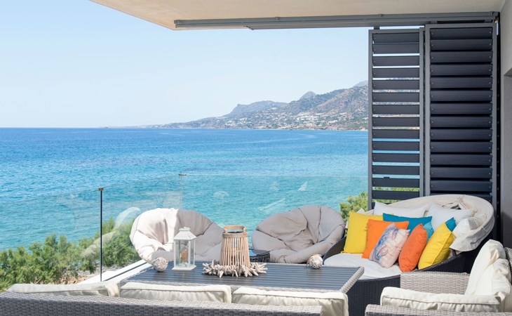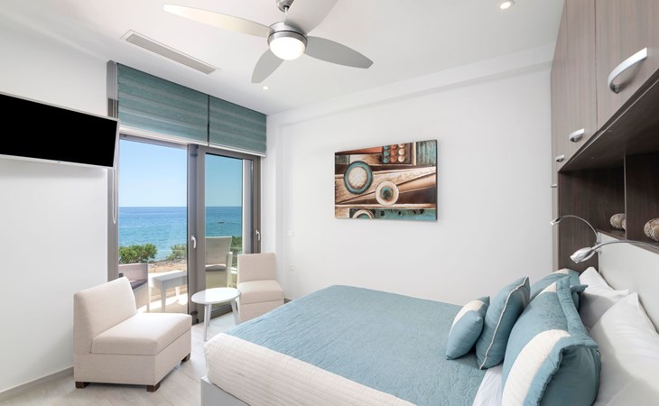 Modern & luxurious, this 10-bedroom seafront luxury villa offers secluded serenity as if the rest of the world no longer exists. Breath-taking, panoramic views of sea, moon on water & sunset. Enjoy Infinity pool & adjoining spa (extra cost for heating) on ground floor, private hot tub on penthouse balcony, BBQ, bicycles. Large outdoor space offers group fun & dining. Less than 4 min walk to modern comforts & beach. Ideal for retreats and celebrations. Concierge services available.----------------Moonlight Villas ('Jupiter Moons' villa) overlook the crystal-clear, blue waters of the Mediterranean sea- a beautiful rocky horizon ideal for swimming, sunbathing, surfing, and other water sports. Set in Koutsourás, a quiet, agricultural village in South-Eastern Crete, this 10 bedroom Jupiter Moons villa is a .450 square meters brand new, private, waterfront estate that provides luxurious accommodation with spectacular views of the southern Crete landscape, moon and sunset. The property features an infinity pool (52 square meters) and adjoining whirlpool, from which guests can enjoy these stunning waterfront vistas. The pool is heatable at an extra cost - please ask.Decorated with modern art-contemporary lines blended with natural elements to reflect the vibrant character of the island. Combining wonderfully the Cretan architecture with modern elegance, this stylishly decorated ambiance exudes a feeling of warmth and privilege by offering a unique experience of ultimate relaxation. Located only a few minutes’ walk from a local pebble beach, bakery, and coffee shops, patisserie, super markets, bars, restaurants, and pharmacy, the villas combine romantic seclusion with proximity to modern comforts. Likewise, the property is located only a few km away from the tourist town of Makry Gialos (with a long sandy beach), as well as traditional Cretan mountain villages with numerous authentic tavernas and bars. The nearest airports are in Sitia (36 km) and Heraklion (114 km; private transportation can be arranged at a fee; ask us).The Jupiter moons villa sets the highest standards of luxury, beauty, elegance, ecological simplicity, and modern comforts. We will share our best-kept secrets about our hidden-treasure beaches, landscapes, hiking paths, culture, best restaurants, best shops and bicycle ride paths, as well as other attractions that may be of interest. Welcome to your seafront, romantic, luxury, and breathtaking home away from home! 1090812