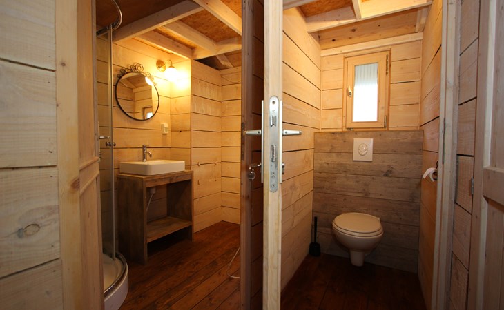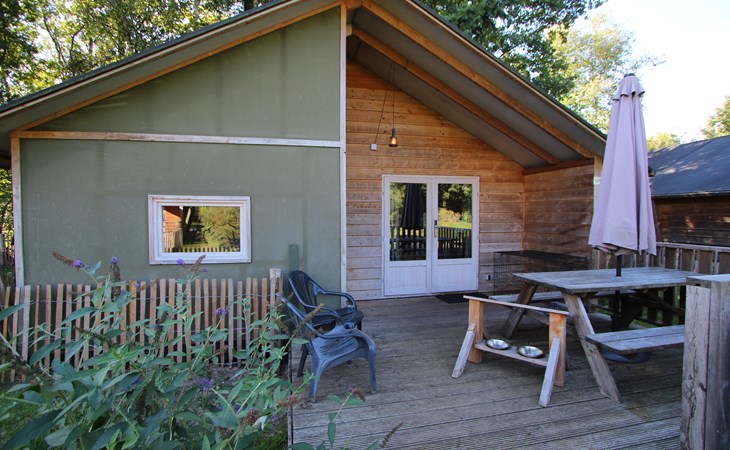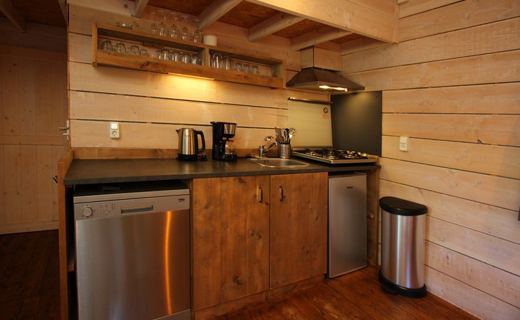 Dog Lodge 6 is een knusse glampingtent met alles wat je nodig hebt voor je luxe kampeervakantie in de natuur. De vrijstaande tent is geschikt voor 6 personen, kan betreden via een klein opstapje en het bestaat uit een begane grond en een slaapvide voor 2 personen. In de woonkamer van de tent bevindt zich een zithoek met televisie, een eethoek en een keuken met voorzieningen als een filter koffiezetapparaat, magnetron en gasstel. Naast de genoemde slaapvide zijn er nog 2 slaapkamers beneden en alle slaapkamers hebben 2 eenpersoonsbedden. De badkamer heeft een toilet, wastafel en douche. Verder heeft de tent een terras en tuinmeubilair. Je kunt gratis verbinding maken met de Wi-Fi.