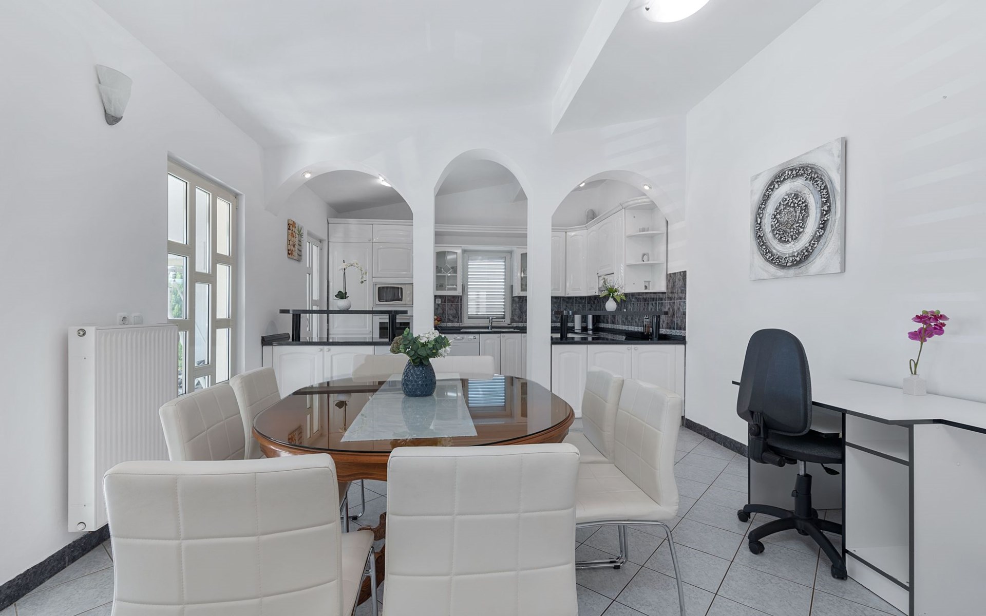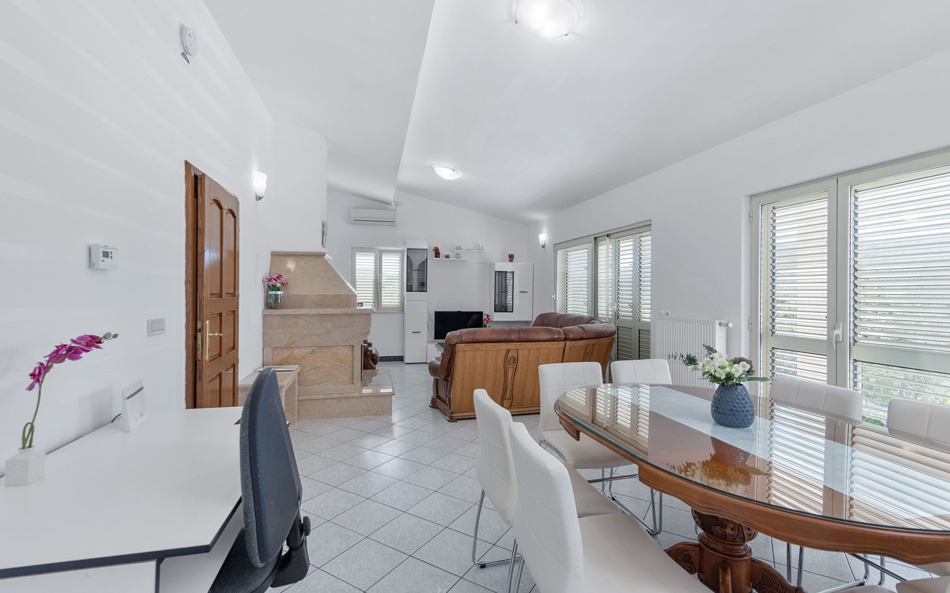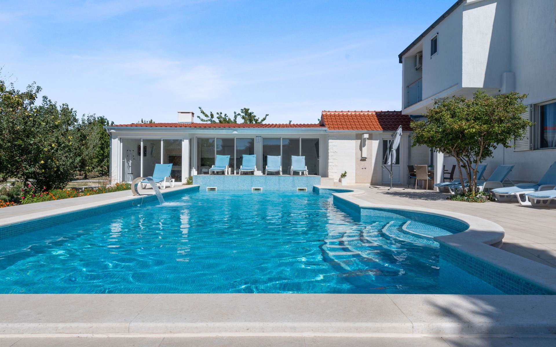 Discover the perfect getaway for a group adventure or family retreat in Neoric, Dalmatia, where this magnificent detached holiday house welcomes up to 10 guests for an unforgettable experience. Nestled in a serene setting, this property combines comfort with all the modern conveniences needed for a stress-free stay. Imagine stepping into a world where every detail is crafted for your comfort and where the amenities cater to all ages and interests.Inside, the property is well-equipped to ensure a comfortable and convenient stay. With air conditioning available throughout, guests can relax in a cool and pleasant environment regardless of the outdoor temperature. The house boasts ample space for everyone with five bedrooms and four bathrooms, ensuring privacy and comfort. The living areas are complemented by a smart TV and a games console, perfect for entertainment after a day of exploring. The inclusion of a washing machine and clothes dryer for sole use adds to the convenience, making it ideal for longer stays.Stepping outside, the property's exterior is just as impressive as its interior. The garden, reserved for the exclusive use of guests, offers a private oasis of tranquility and enjoyment. It features a playground that promises endless fun for younger visitors, while the terrace and balcony provide perfect spots for relaxation and socializing. Those who love the outdoors will appreciate the covered bicycle parking and the charging station for E-cars, ensuring that exploring the stunning surroundings is both easy and eco-friendly.Located in the captivating region of Dalmatia, the house sits in proximity to a grocery store just 800m away, making it convenient to stock up on provisions. The surrounding area is a treasure trove of natural beauty, with mountains providing a spectacular backdrop and numerous opportunities for outdoor activities and exploration. Whether you're looking to immerse yourself in nature, discover the local culture, or simply unwind in a beautiful setting, this location has something special to offer everyone.In summary, this Neoric holiday house is a haven for those seeking a blend of adventure, relaxation, and comfort. With its well-appointed facilities, including renewable energy solutions like solar power, and its idyllic location, it offers an eco-friendly and enjoyable base from which to explore the delights of Dalmatia. Whether you're coming together with family or friends, this property promises a stay filled with cherished memories and rejuvenating experiences. 3578655