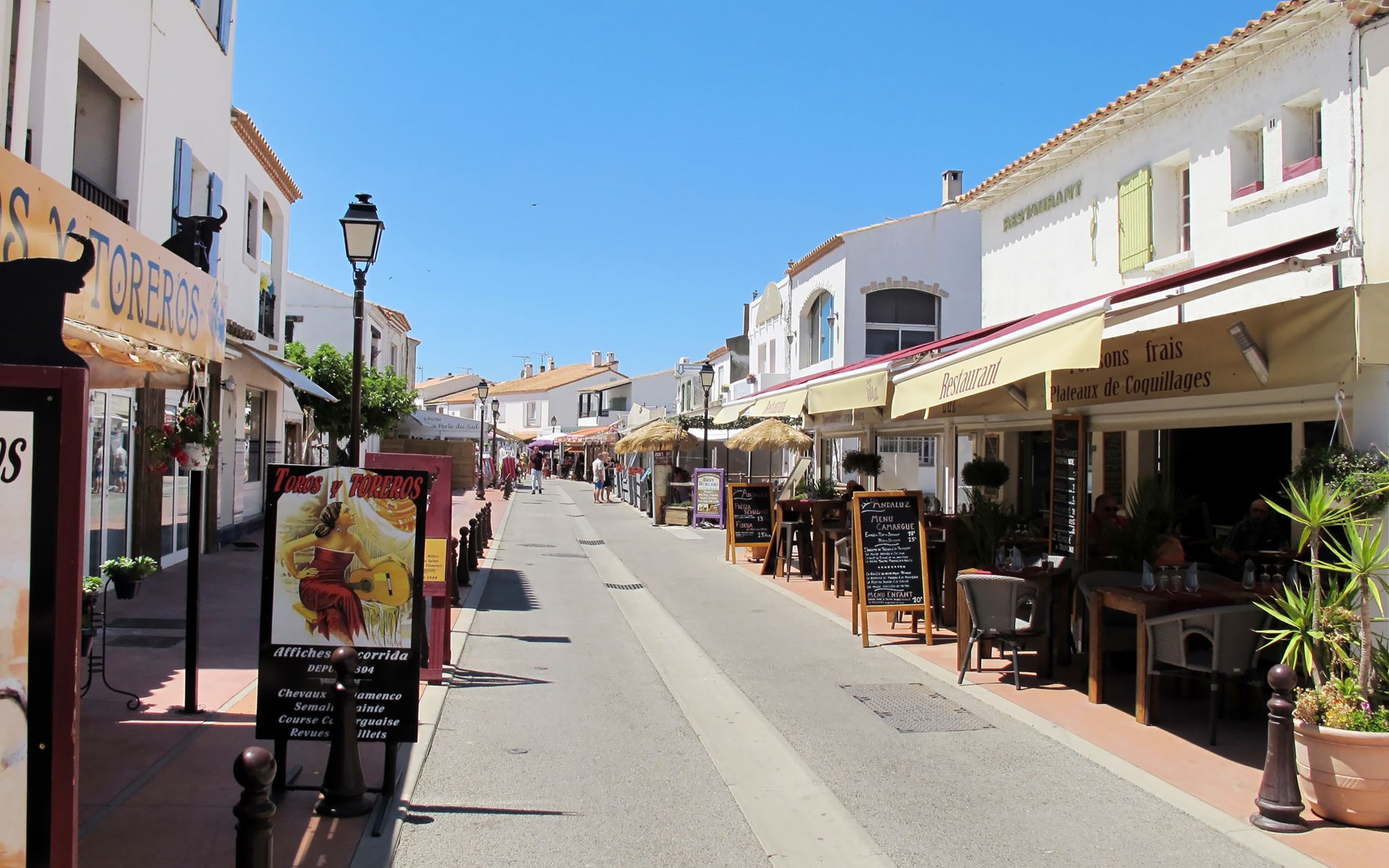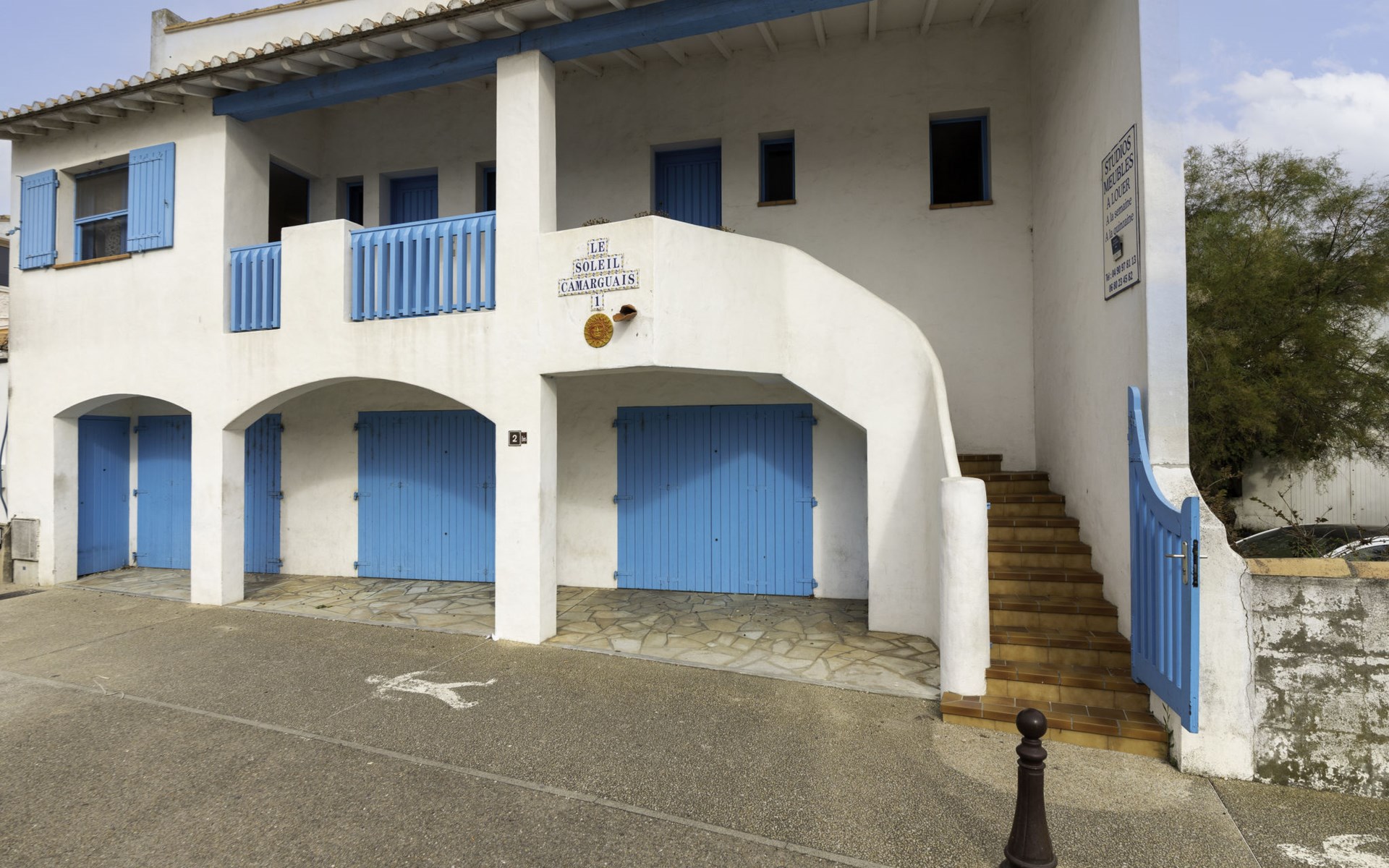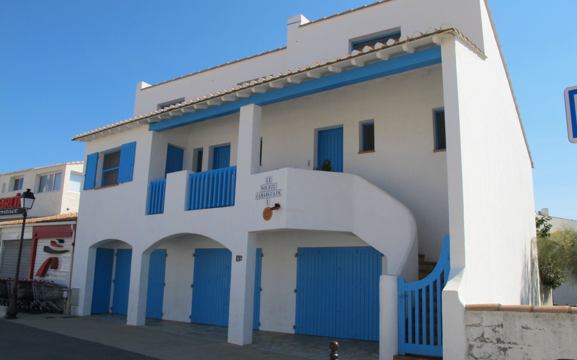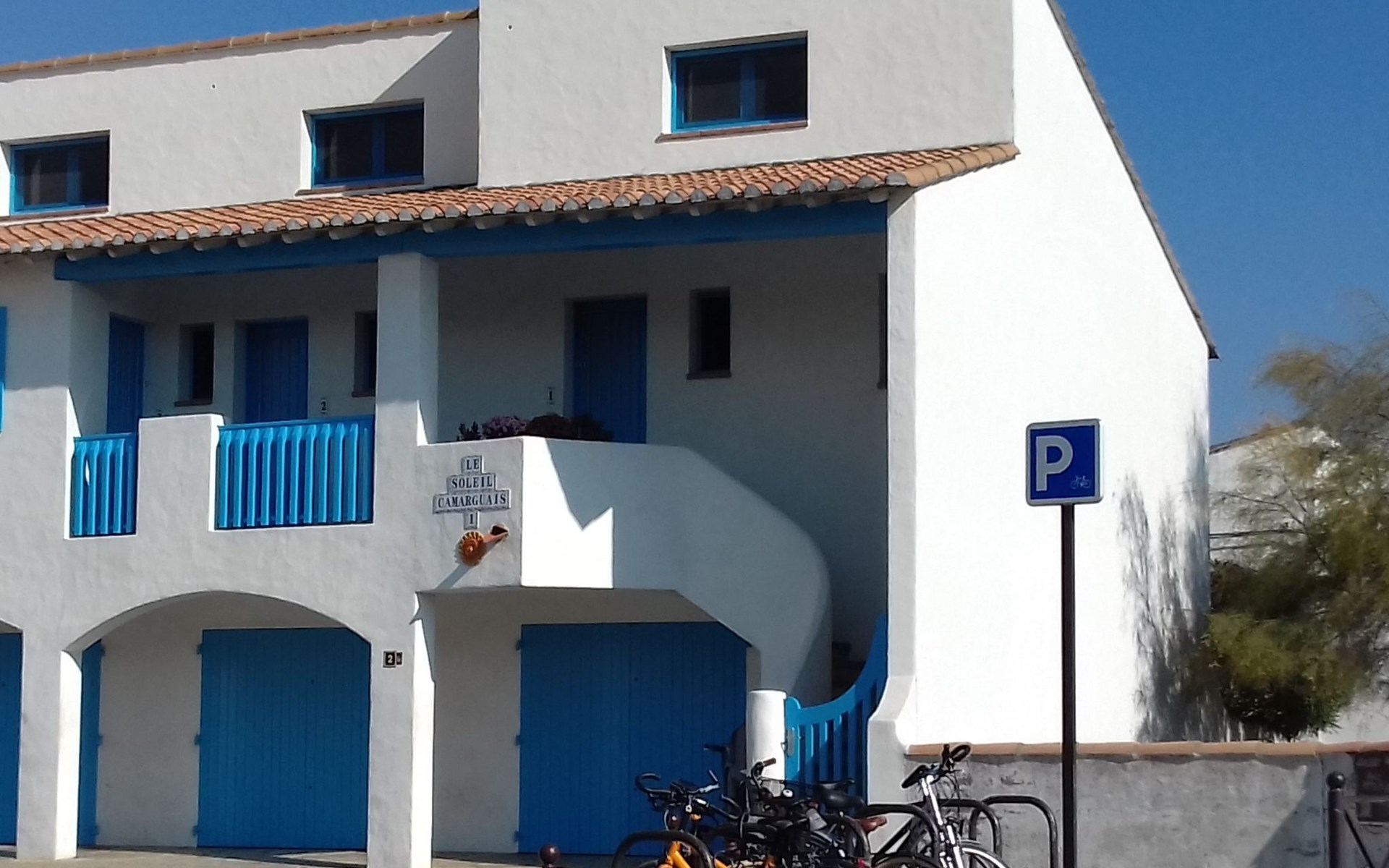 450 m van het centrum van Les Saintes-Maries-de-la-Mer, 30 km van het centrum van Aigues-Mortes, 40 km van het centrum van Arles, 400 m van zee. Openbare parkeerplaatsen 300 m. Supermarkt 50 m, bushalte "Les Massoucles" 350 m, zandstrand 400 m. Attracties in de buurt: Pèlerinage de Mai, Fete de la Saladelle, Arles, Aigues-Mortes, Courses Camarguaises, Balades à cheval, bateaux, calèche. Wandelgebied Animations et visite Parc Ornithologique. Op het grondstuk dierhouderij.