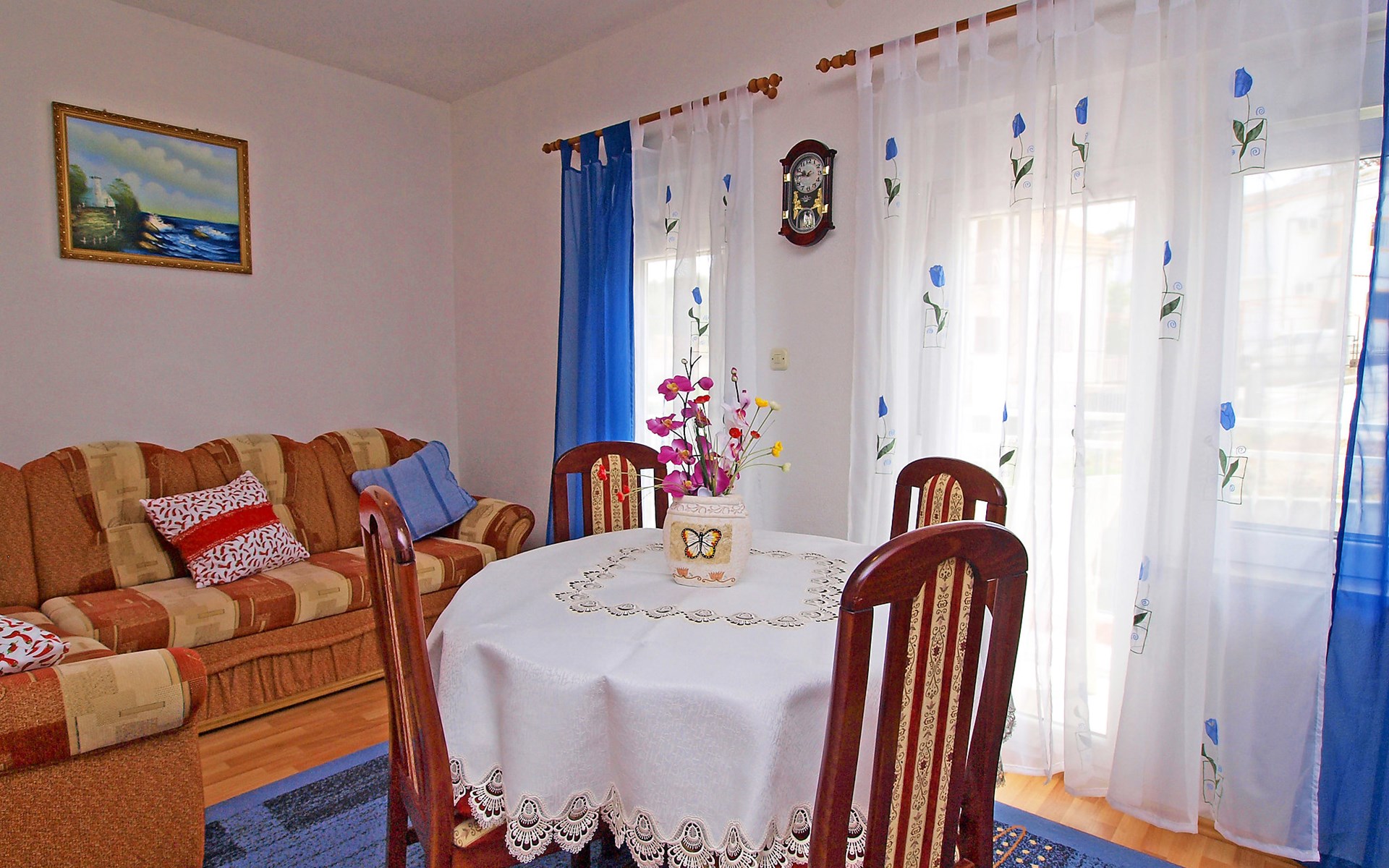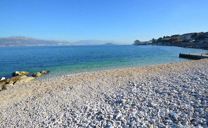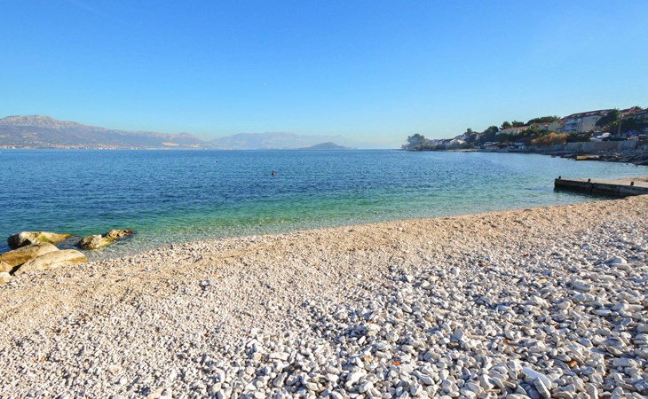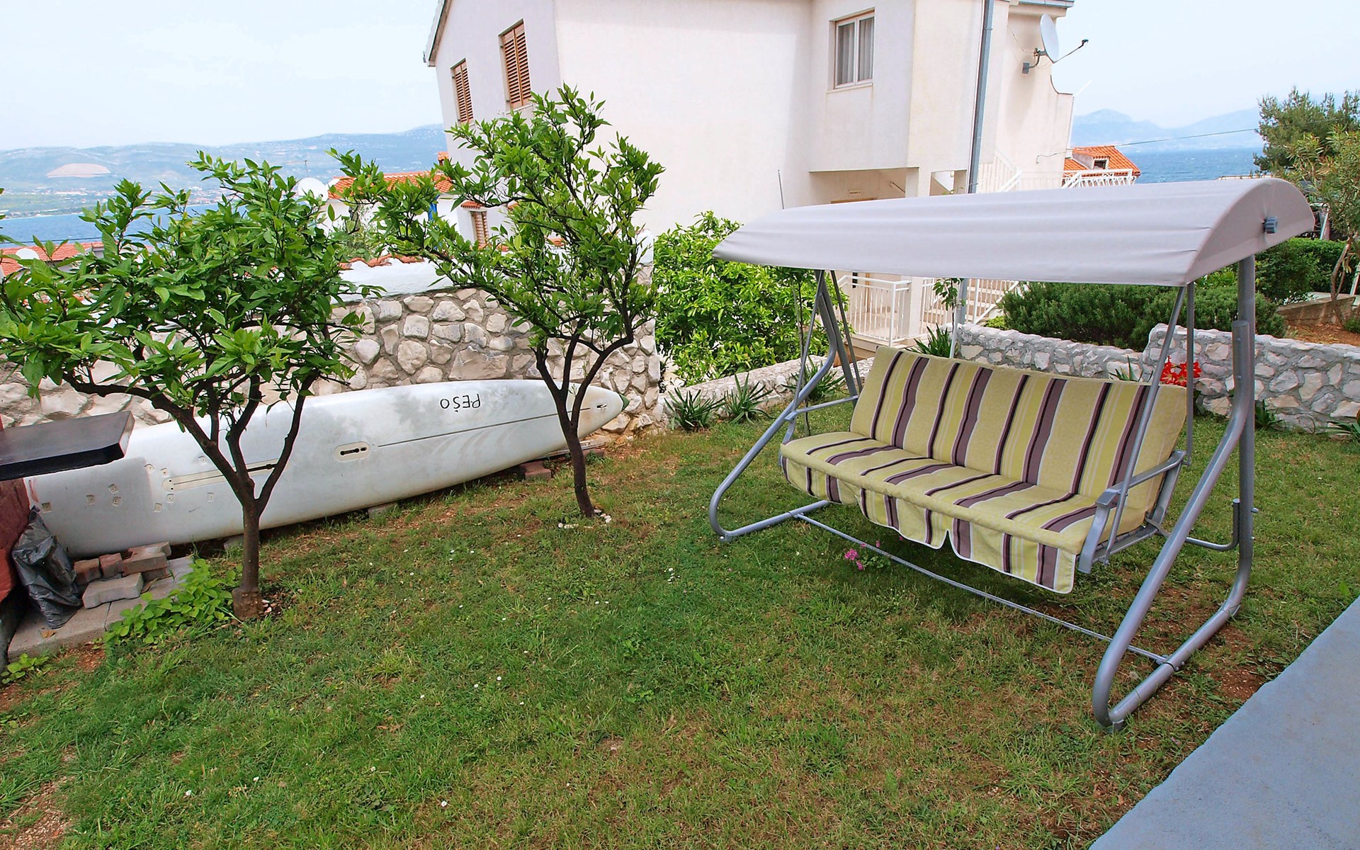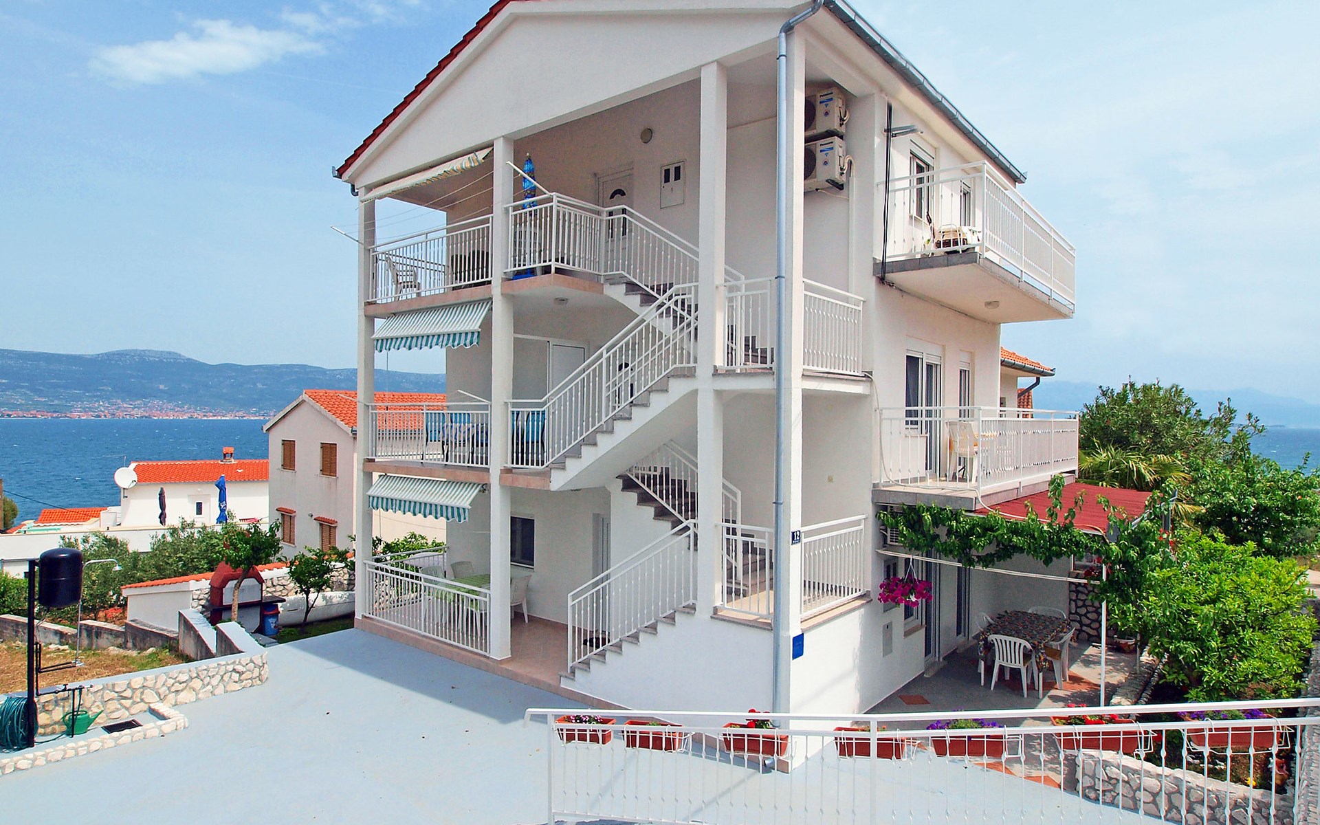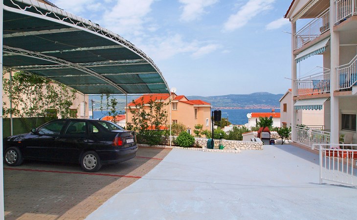 Slatine (Ciovo) 6 km van Trogir: Huis met 3 woningen "Sofija". Zonnige, verhoogde ligging, 100 m van zee, 100 m van het strand. Voor medegebruik: terrein 250 m2, tuin. Barbecue. In het huis: internetaansluiting. Overdekte parkeerplaats bij het huis op het terrein. Winkel 550 m, restaurant 350 m, bushalte 120 m, stenenstrand, rotsstrand 100 m.