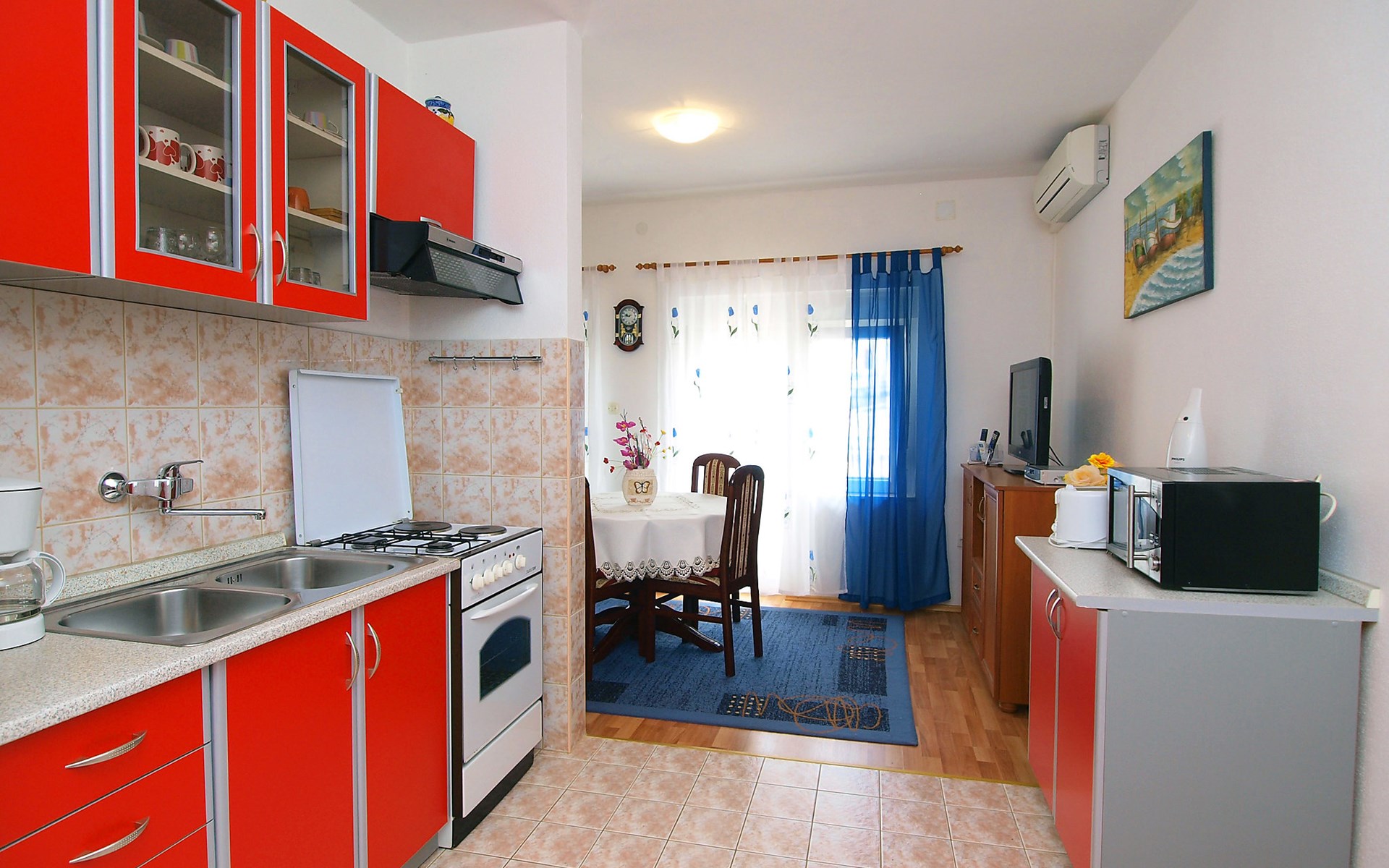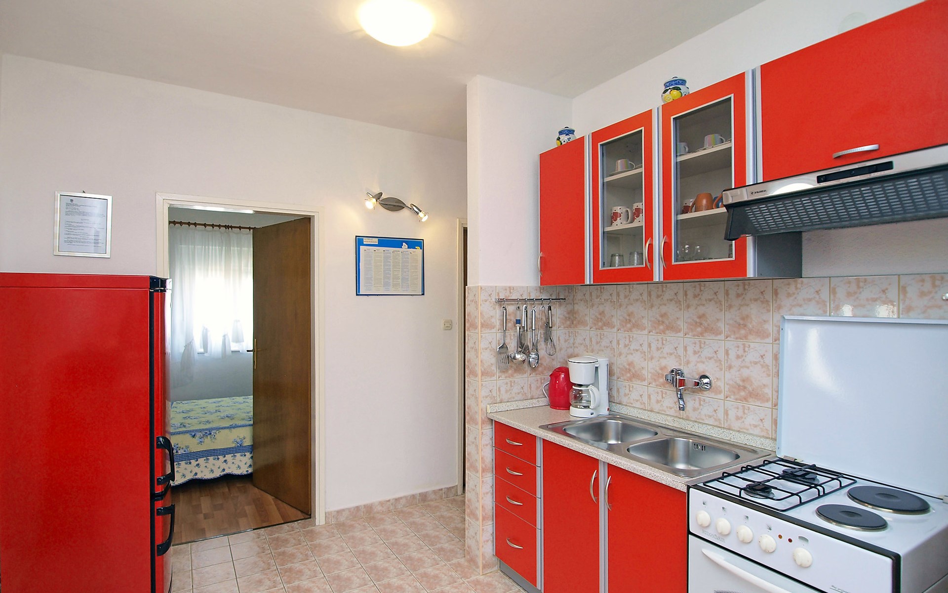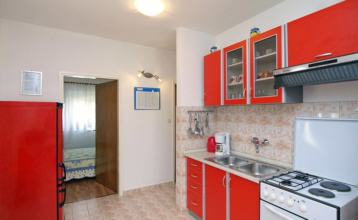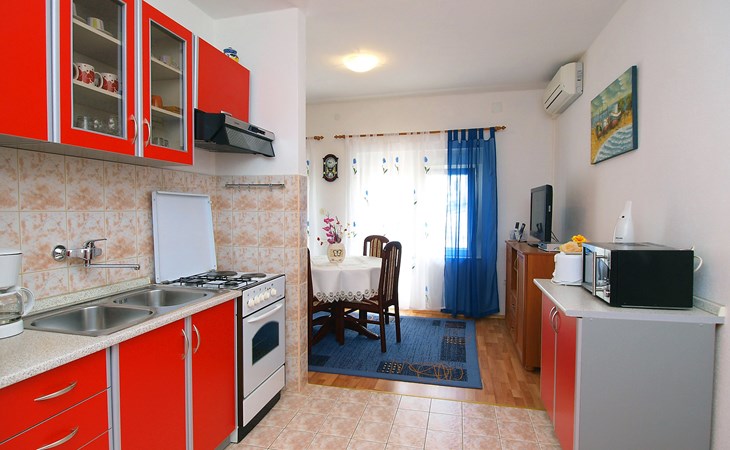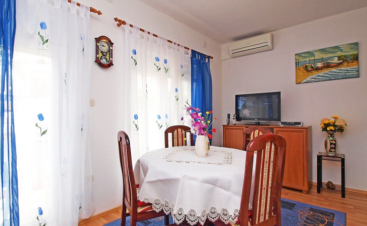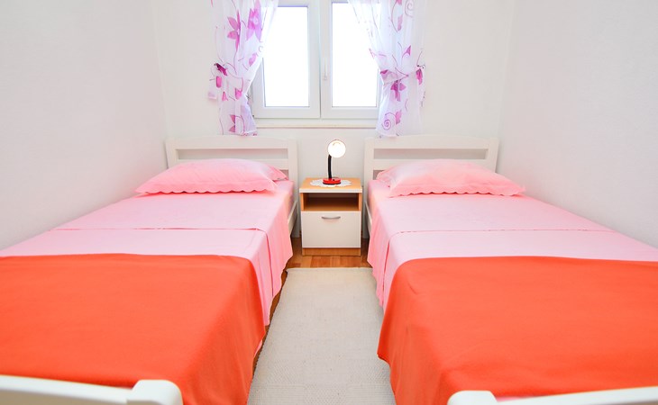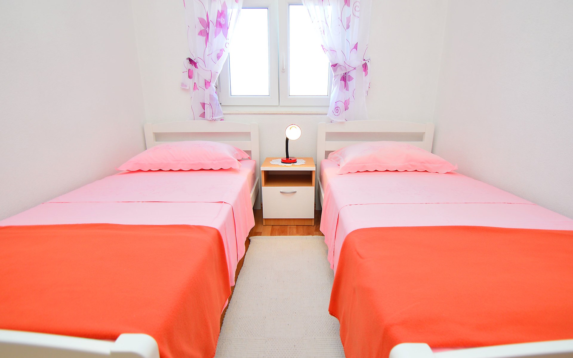 Slatine (Ciovo) 6 km van Trogir: Huis met 3 woningen "Sofija". Zonnige, verhoogde ligging, 100 m van zee, 100 m van het strand. Voor medegebruik: terrein 250 m2, tuin. Barbecue. In het huis: internetaansluiting. Overdekte parkeerplaats bij het huis op het terrein. Winkel 550 m, restaurant 350 m, bushalte 120 m, stenenstrand, rotsstrand 100 m.